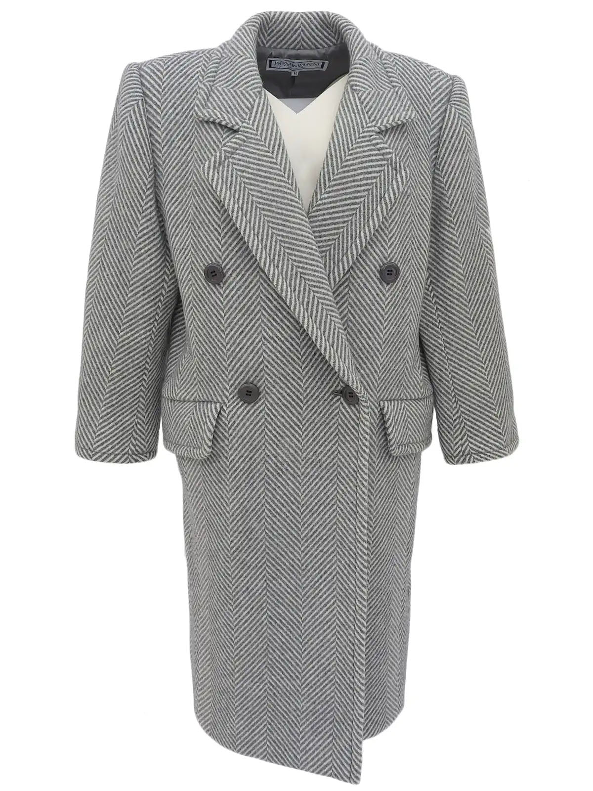 ヘリンボーンパターンダブルブレストロングコート グレー/ホワイト