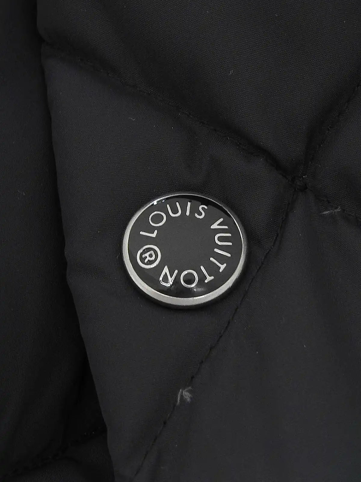 ナイロンレザーコンビロゴボタン2wayダウンジャケット ブラック