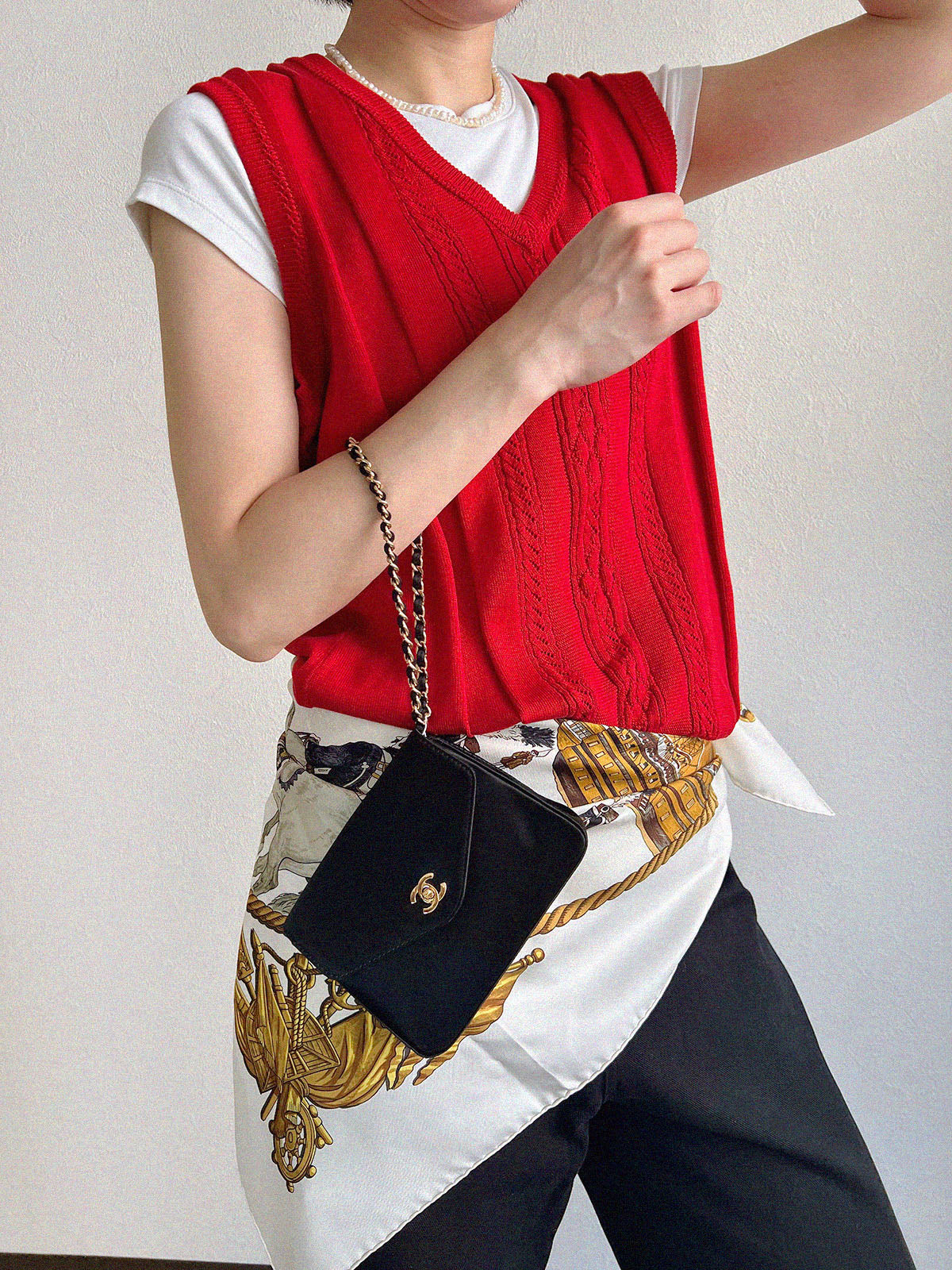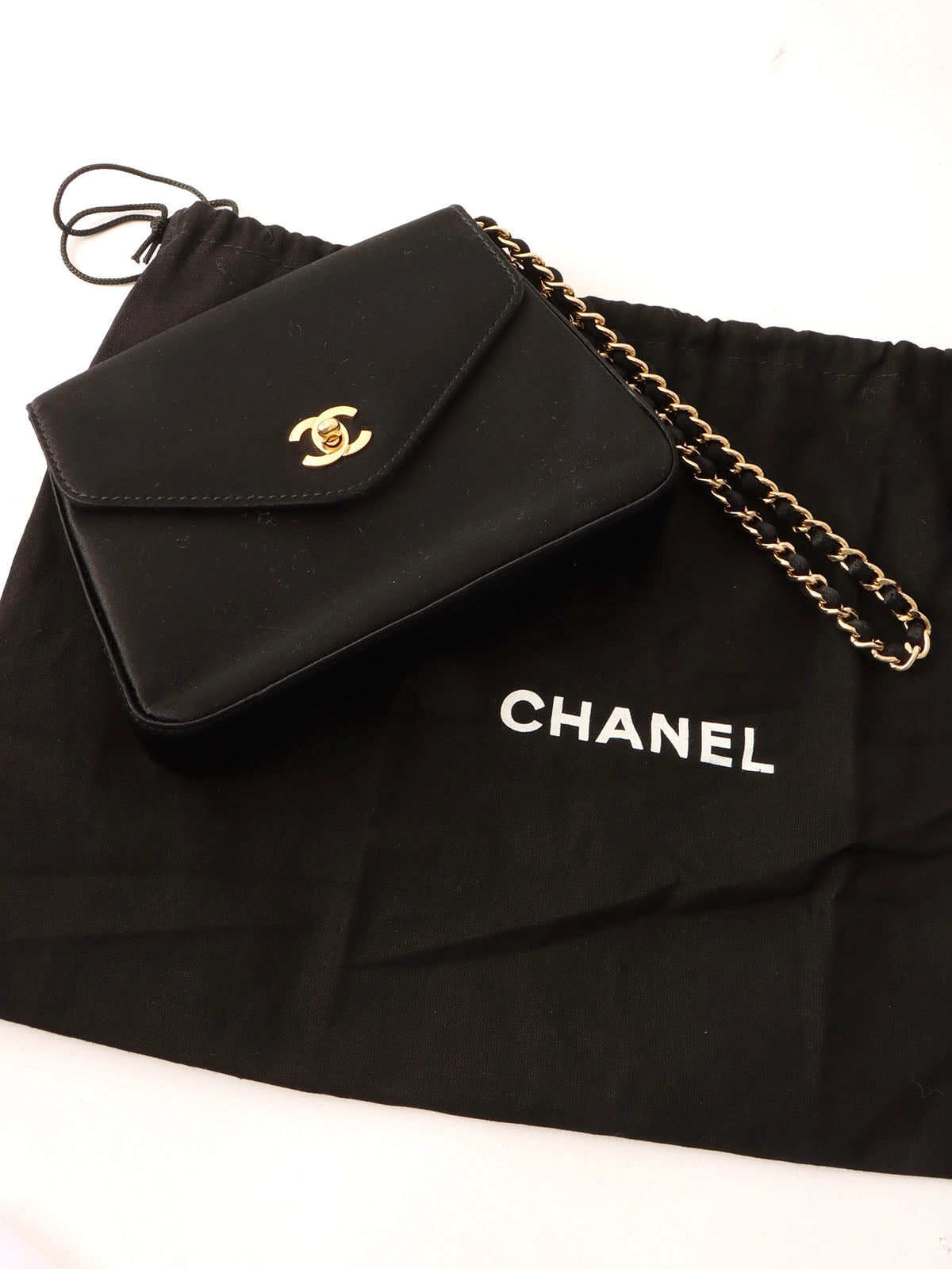 2000年頃製 サテンCCターンロックチェーンバッグミニ ブラック