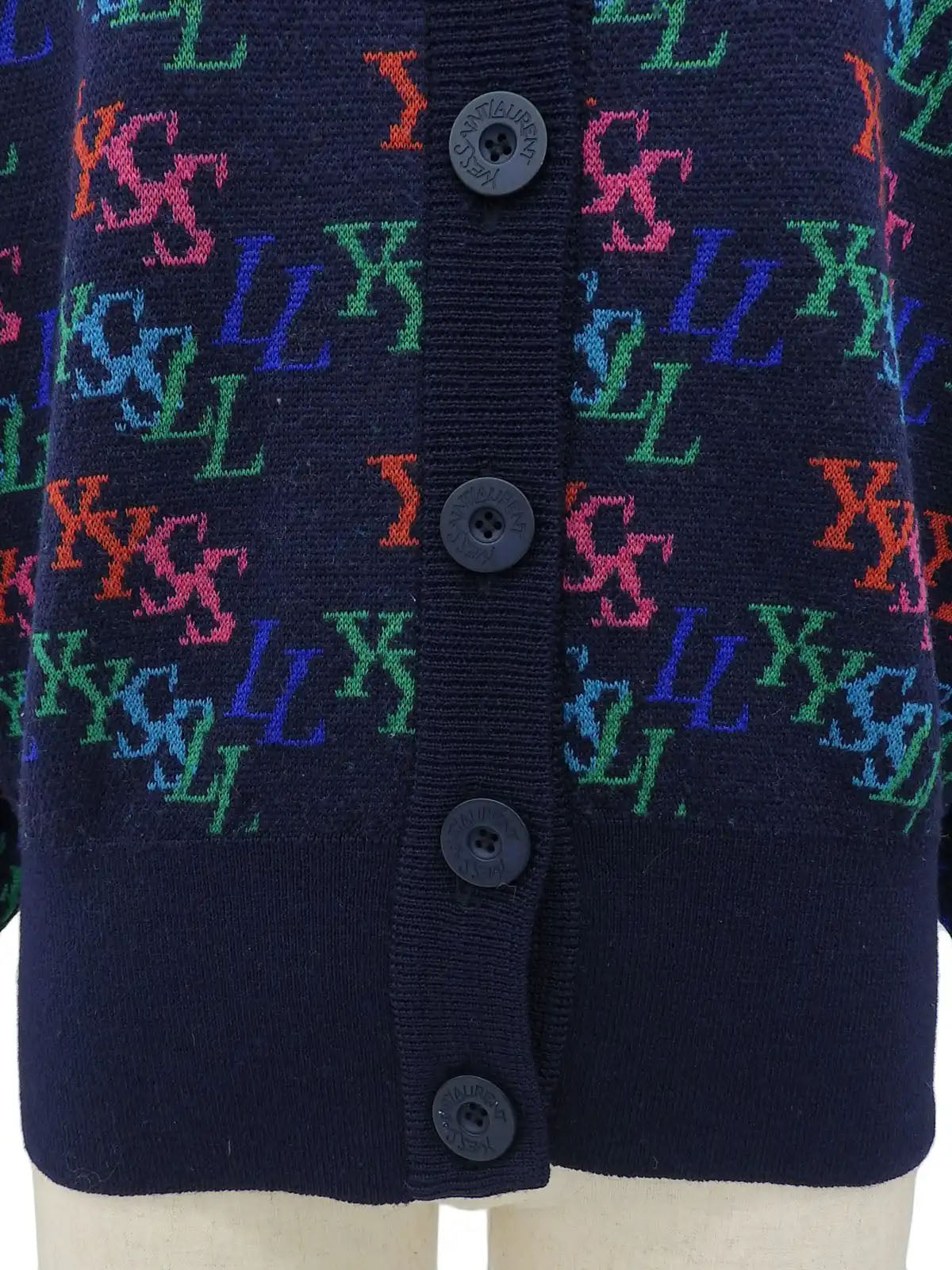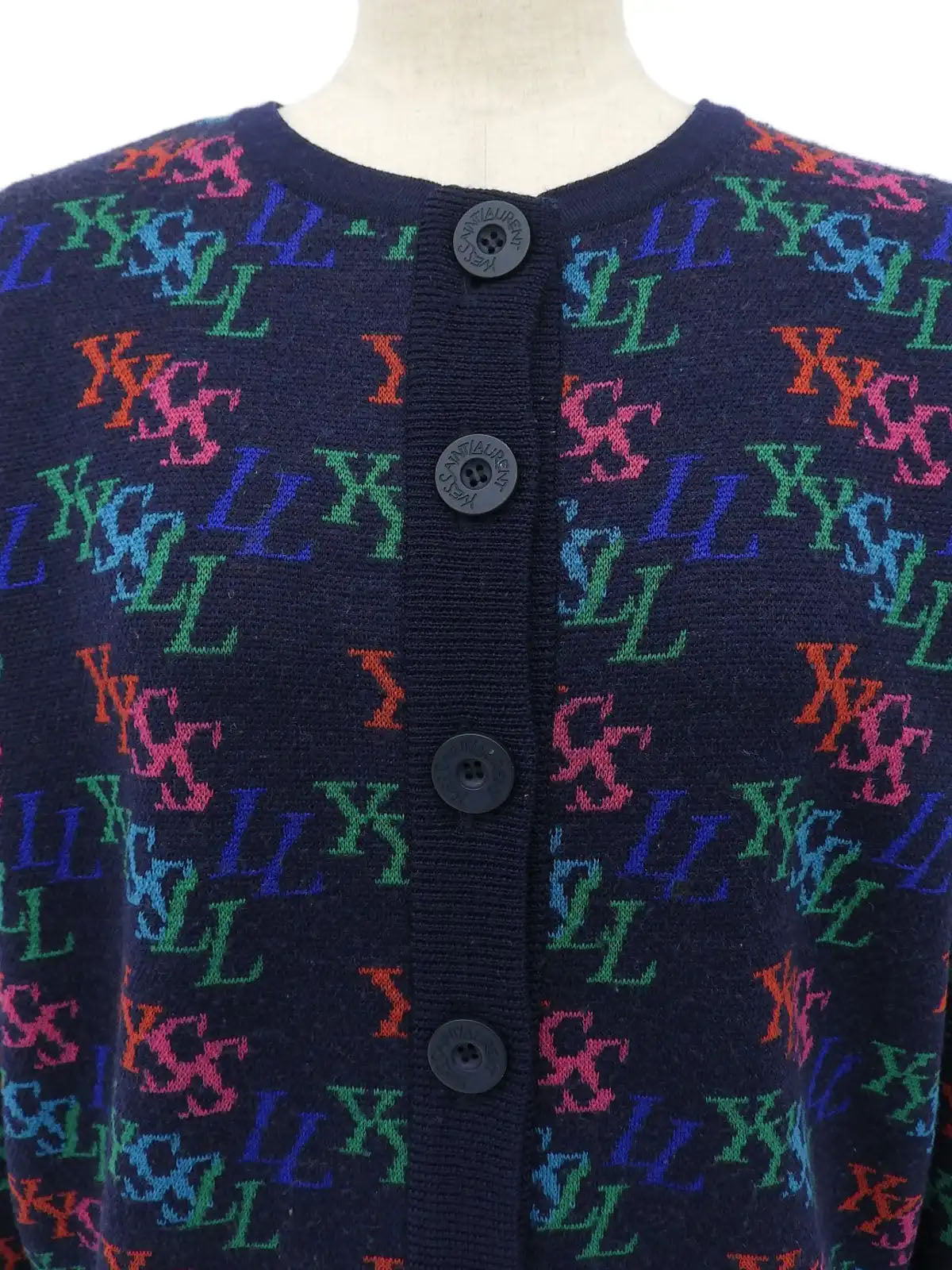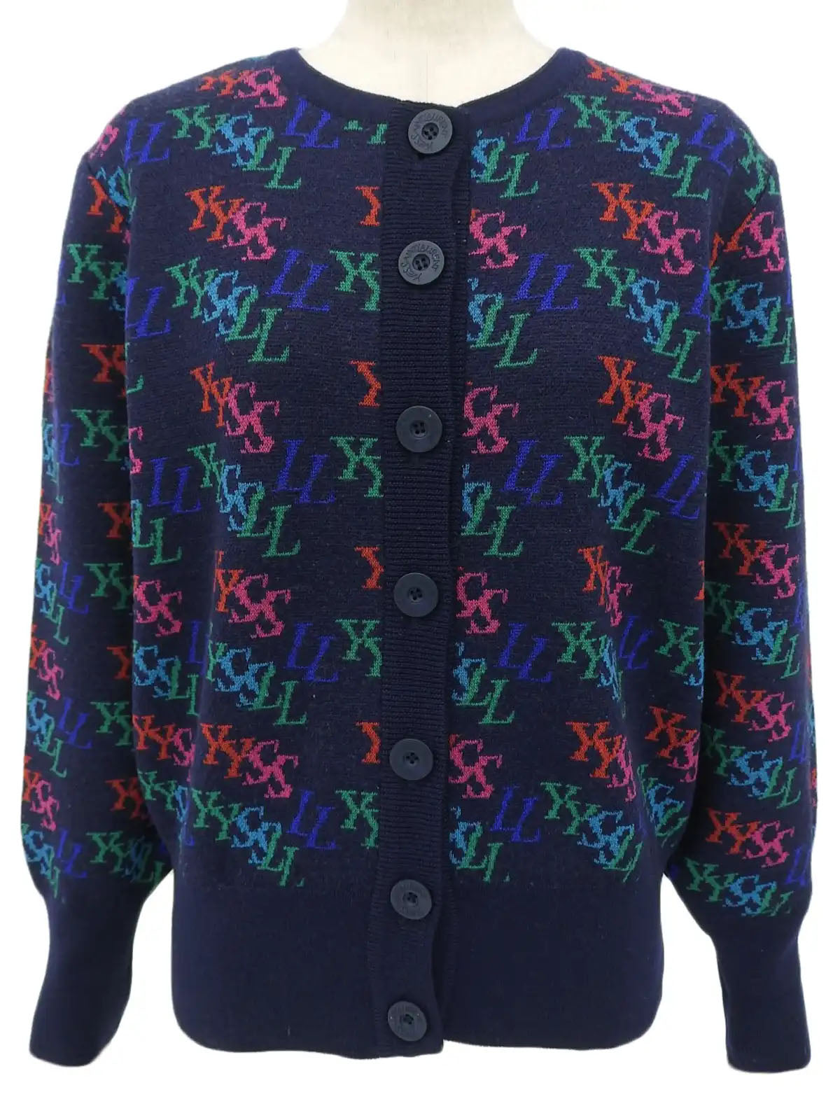 ロゴパターンカーディガン ネイビー/マルチ