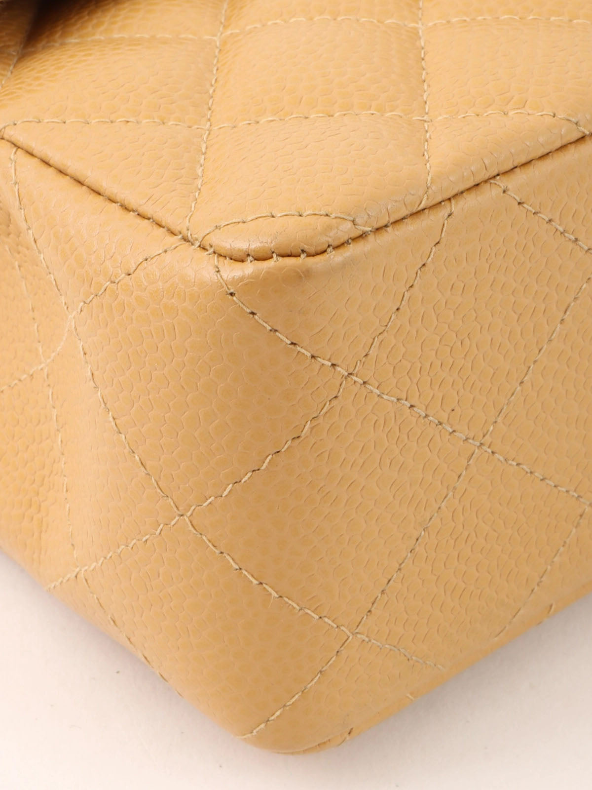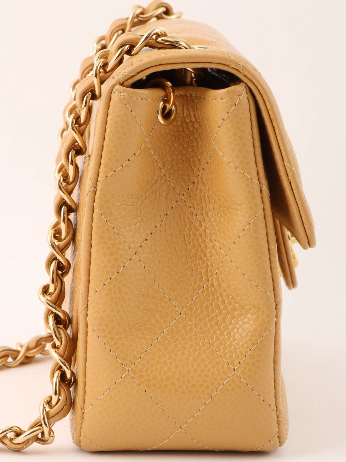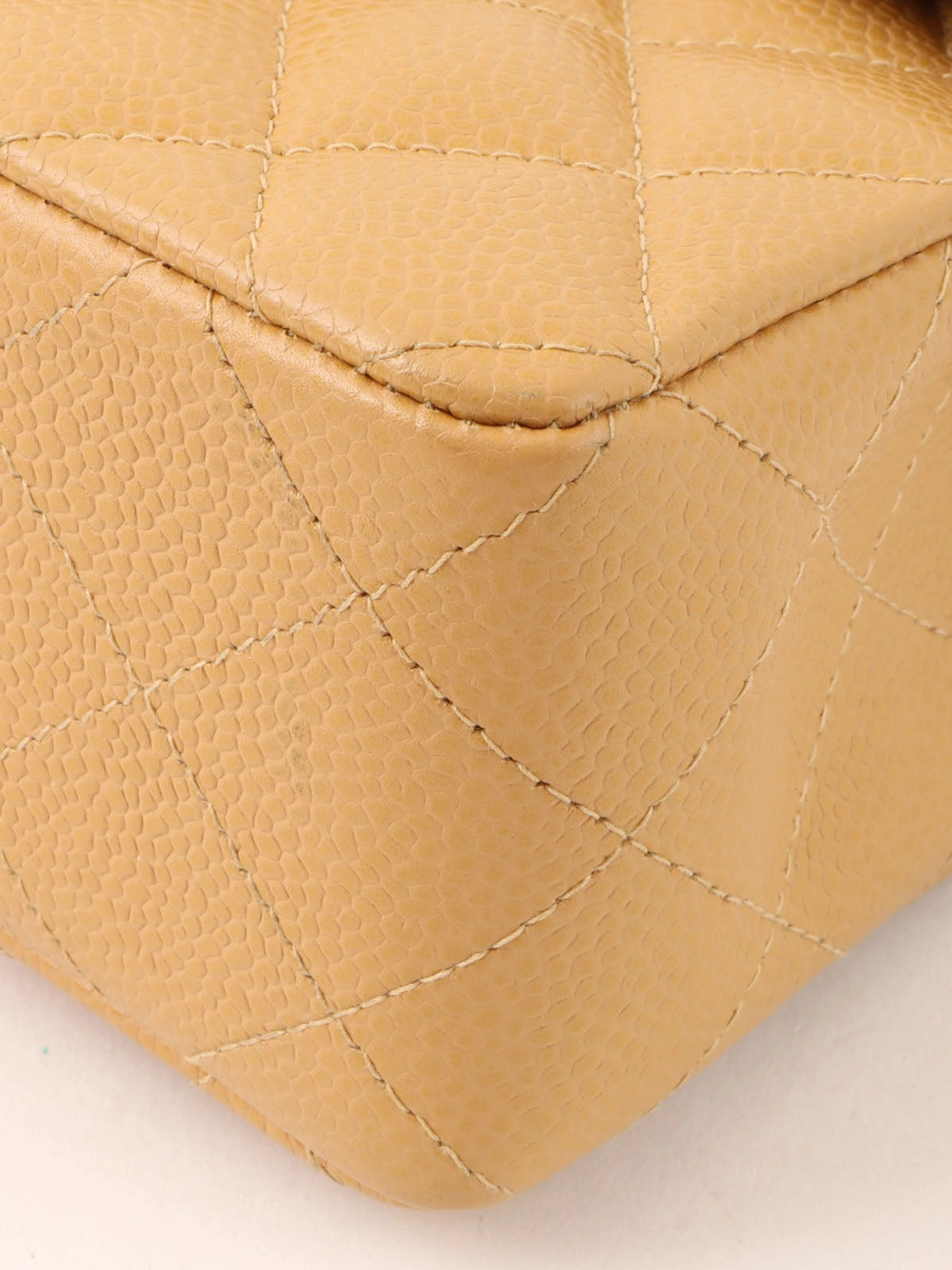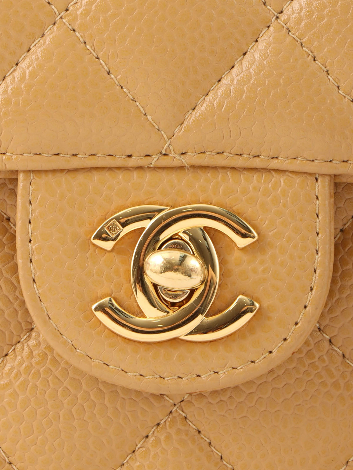 2004 Caviar Skin Classic Flap Chain Bag Mini Beige