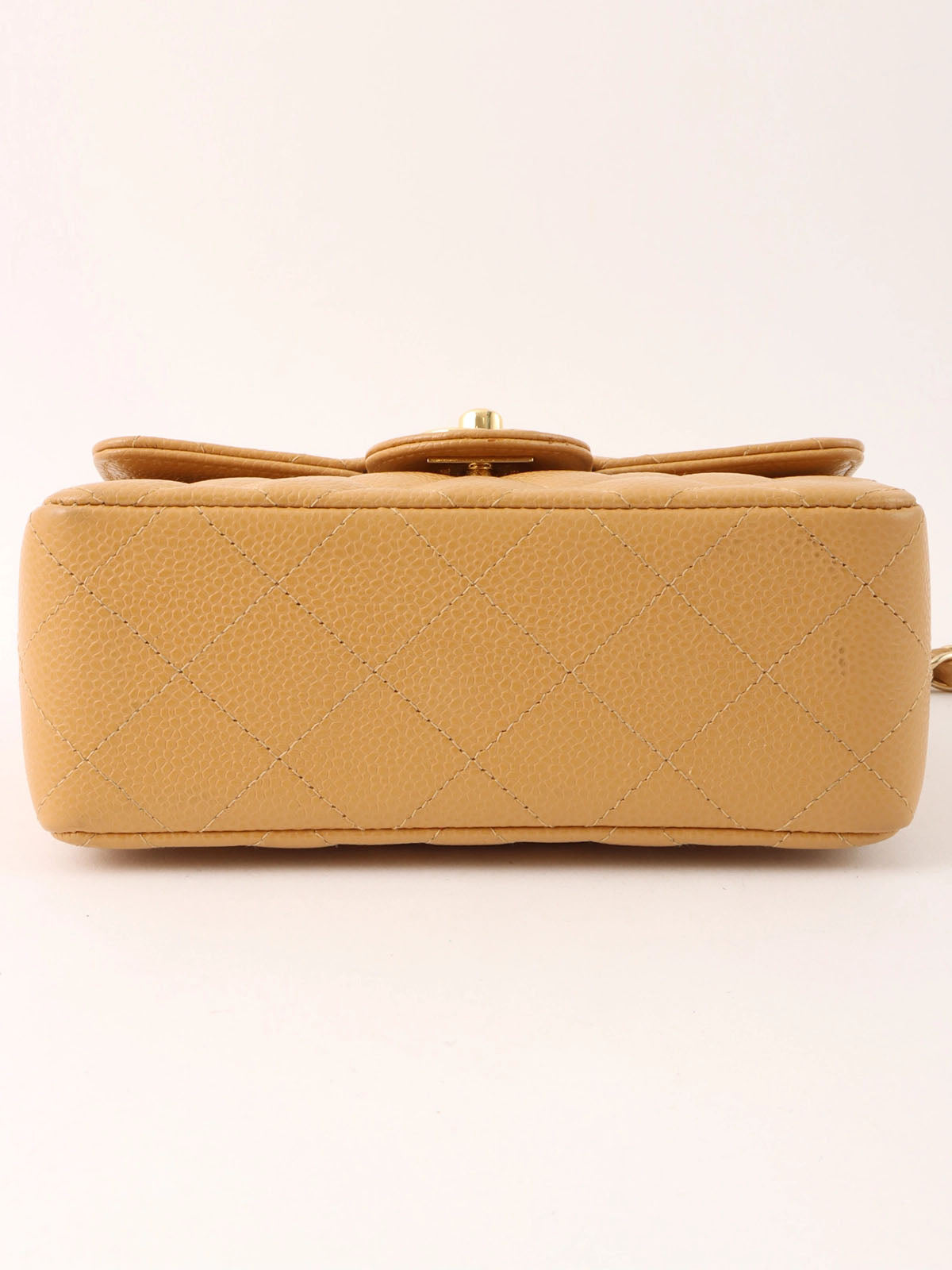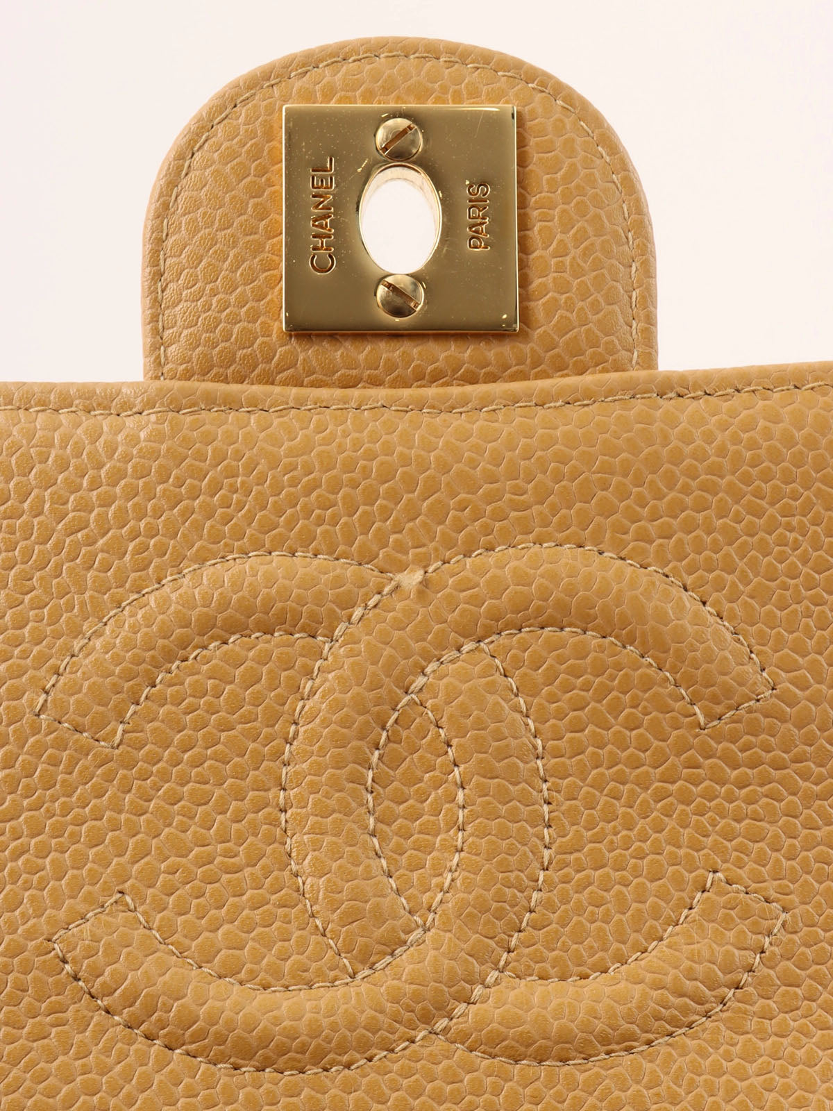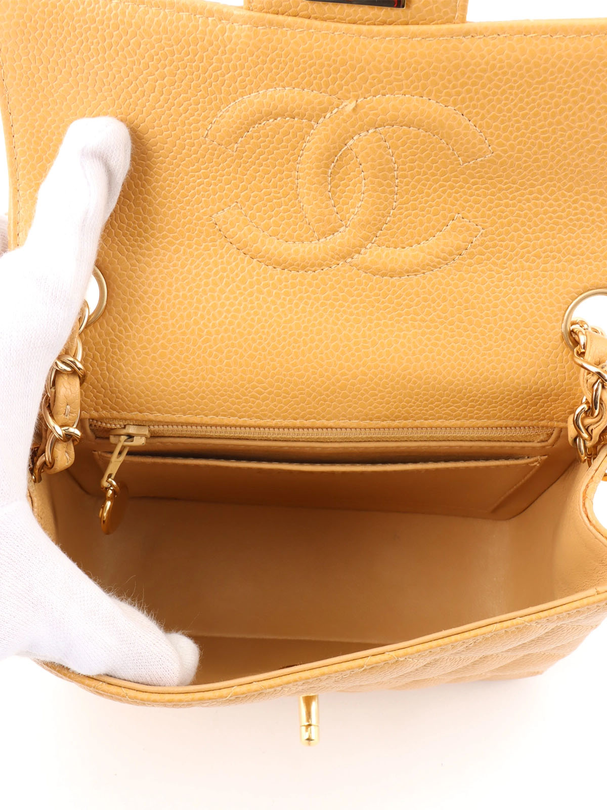 2004 Caviar Skin Classic Flap Chain Bag Mini Beige