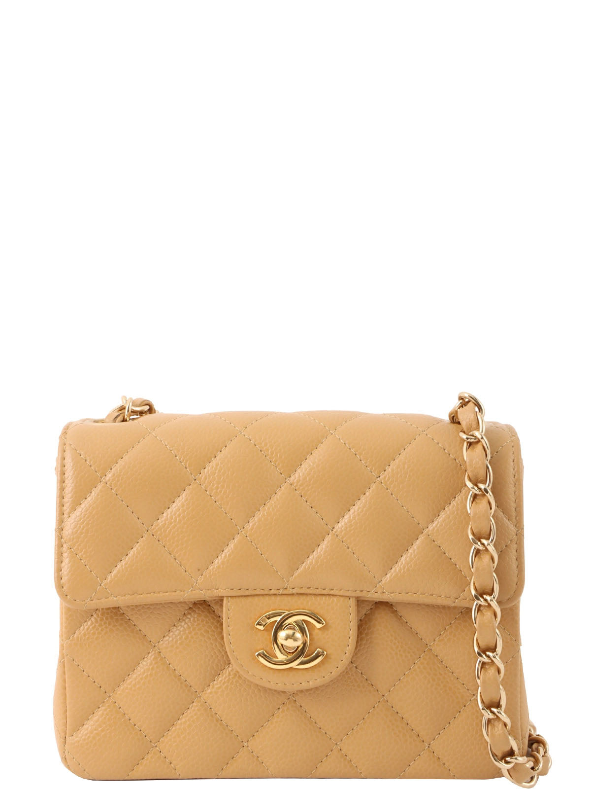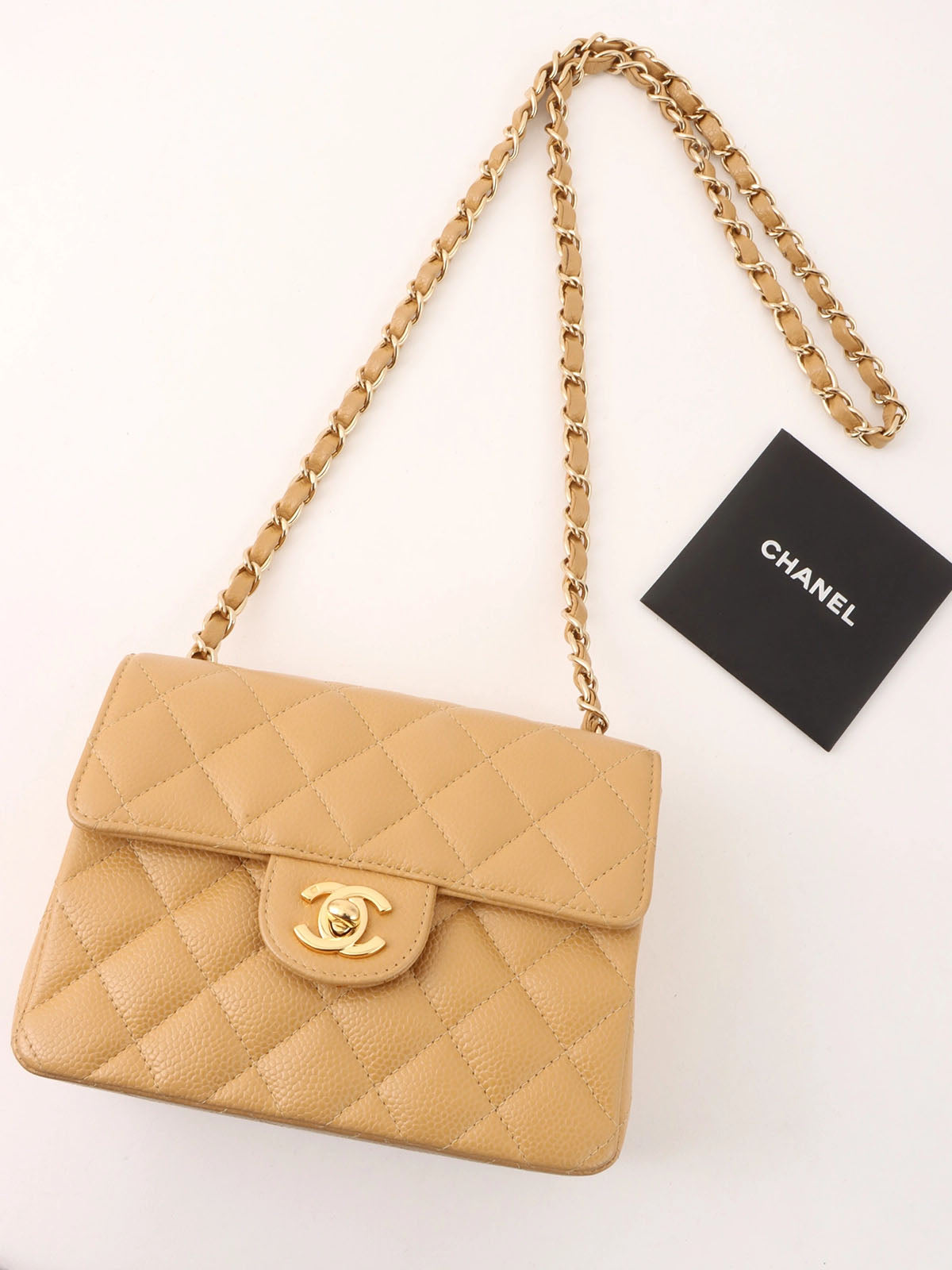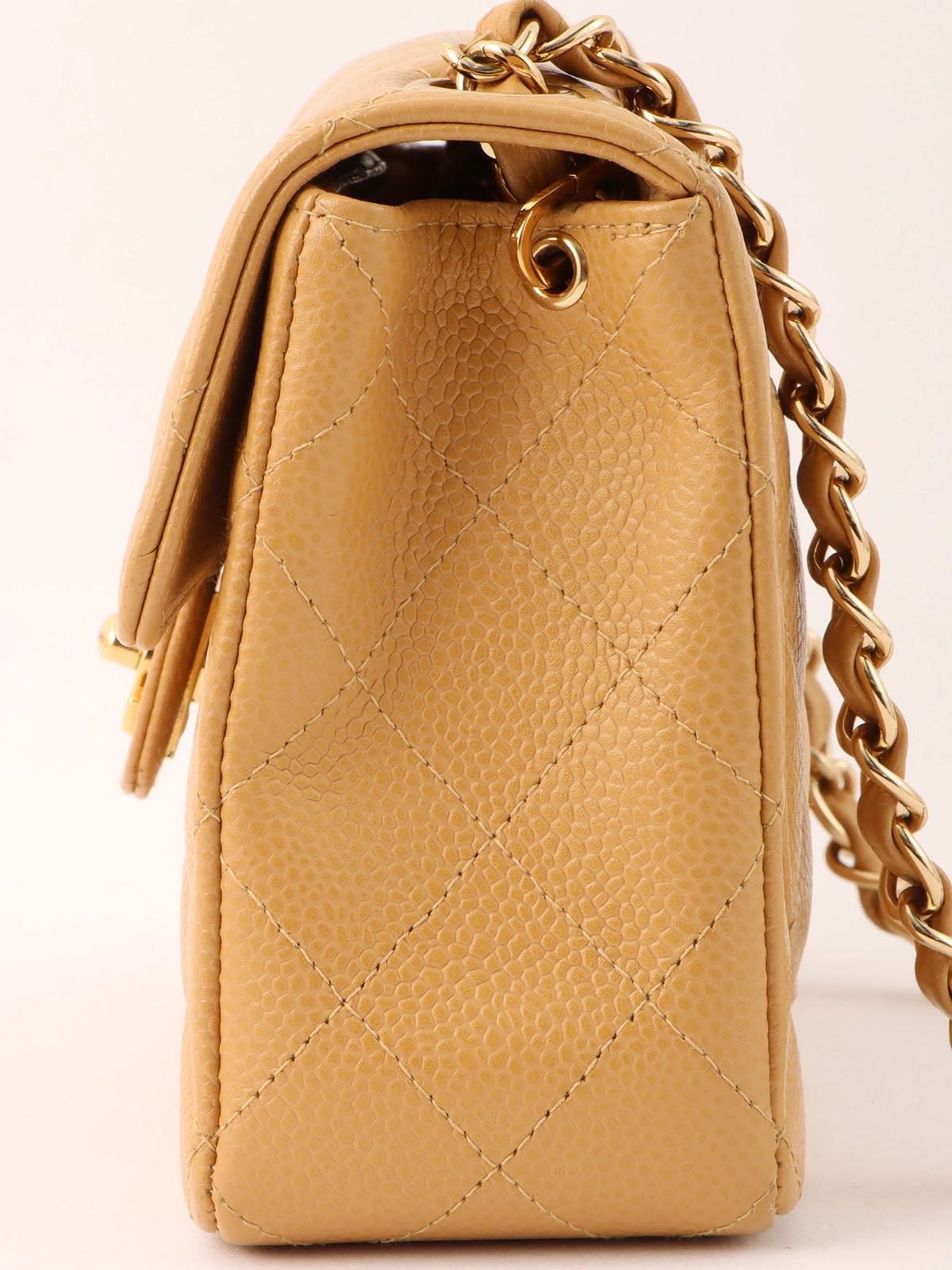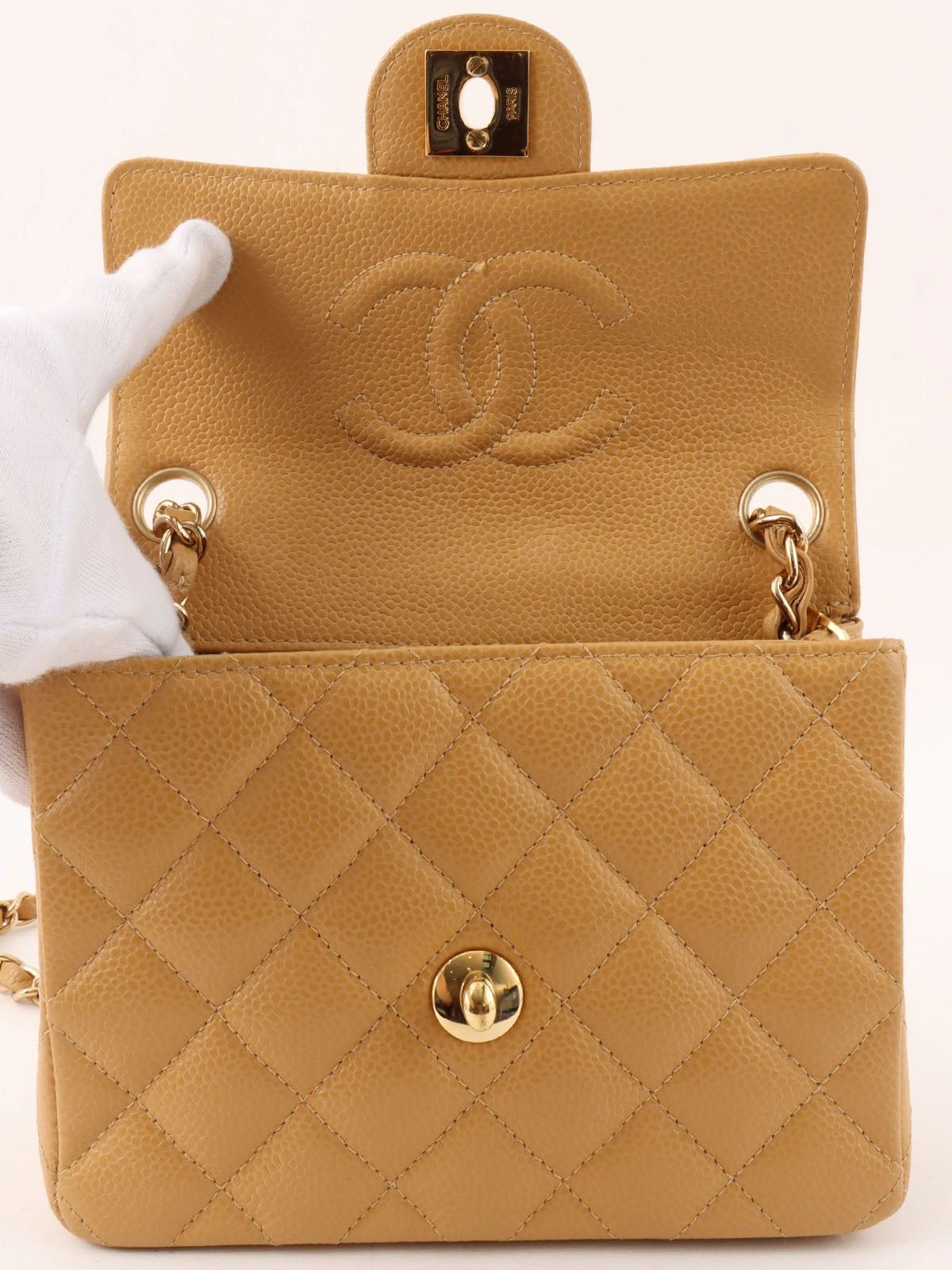 2004 Caviar Skin Classic Flap Chain Bag Mini Beige