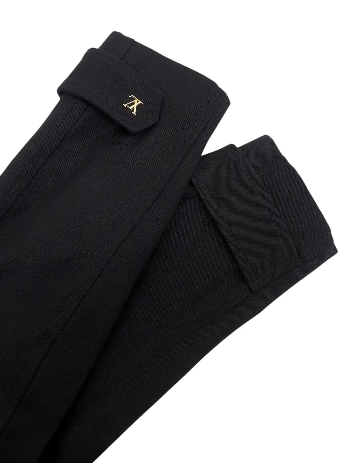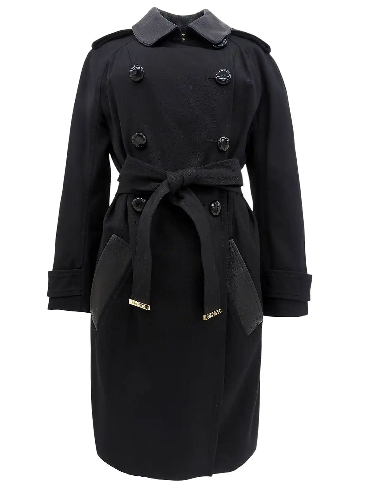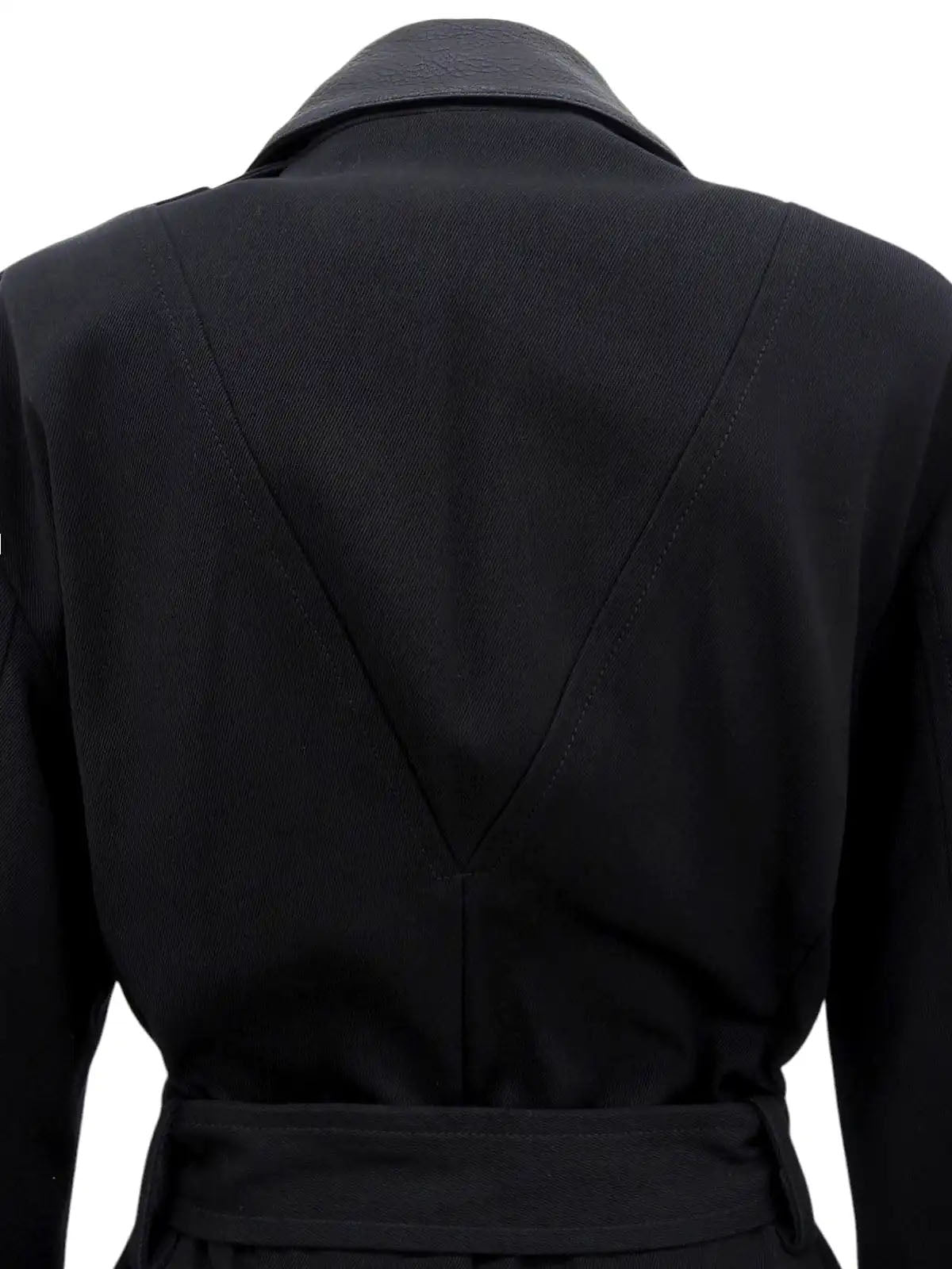 Cotton and leather combination long coat in black