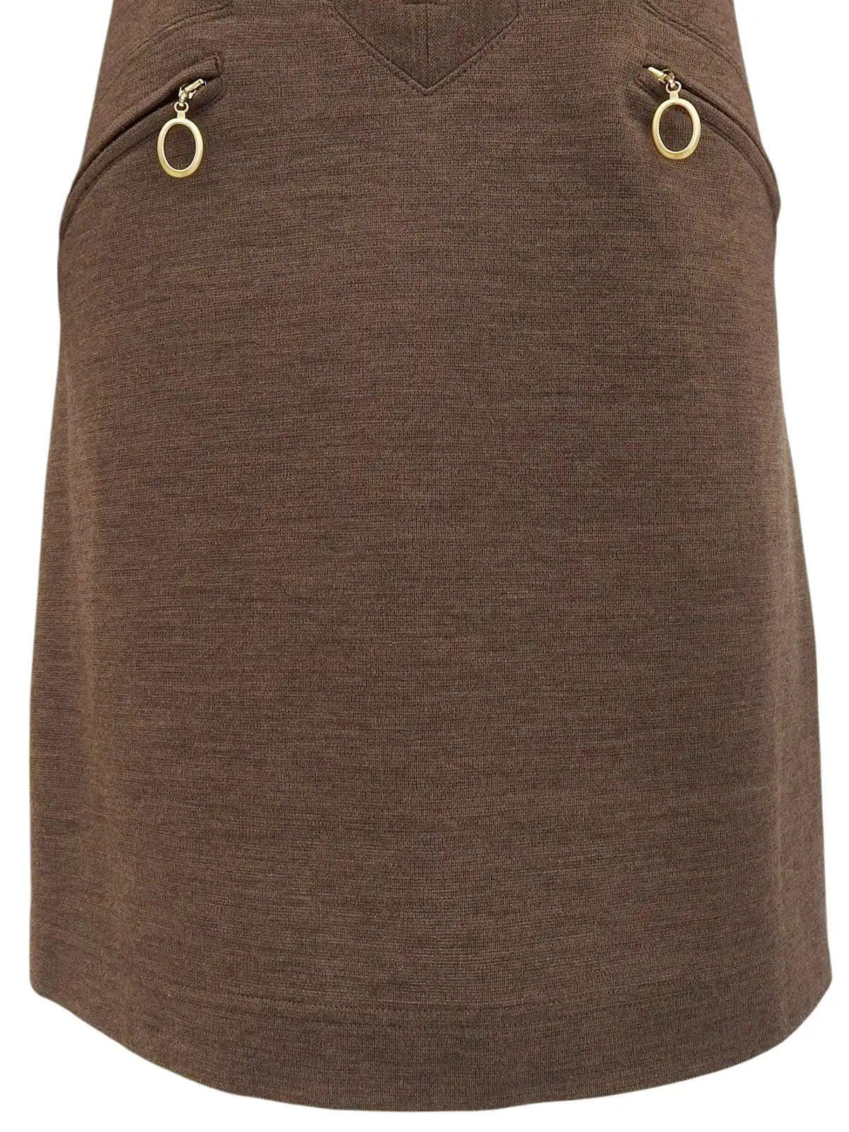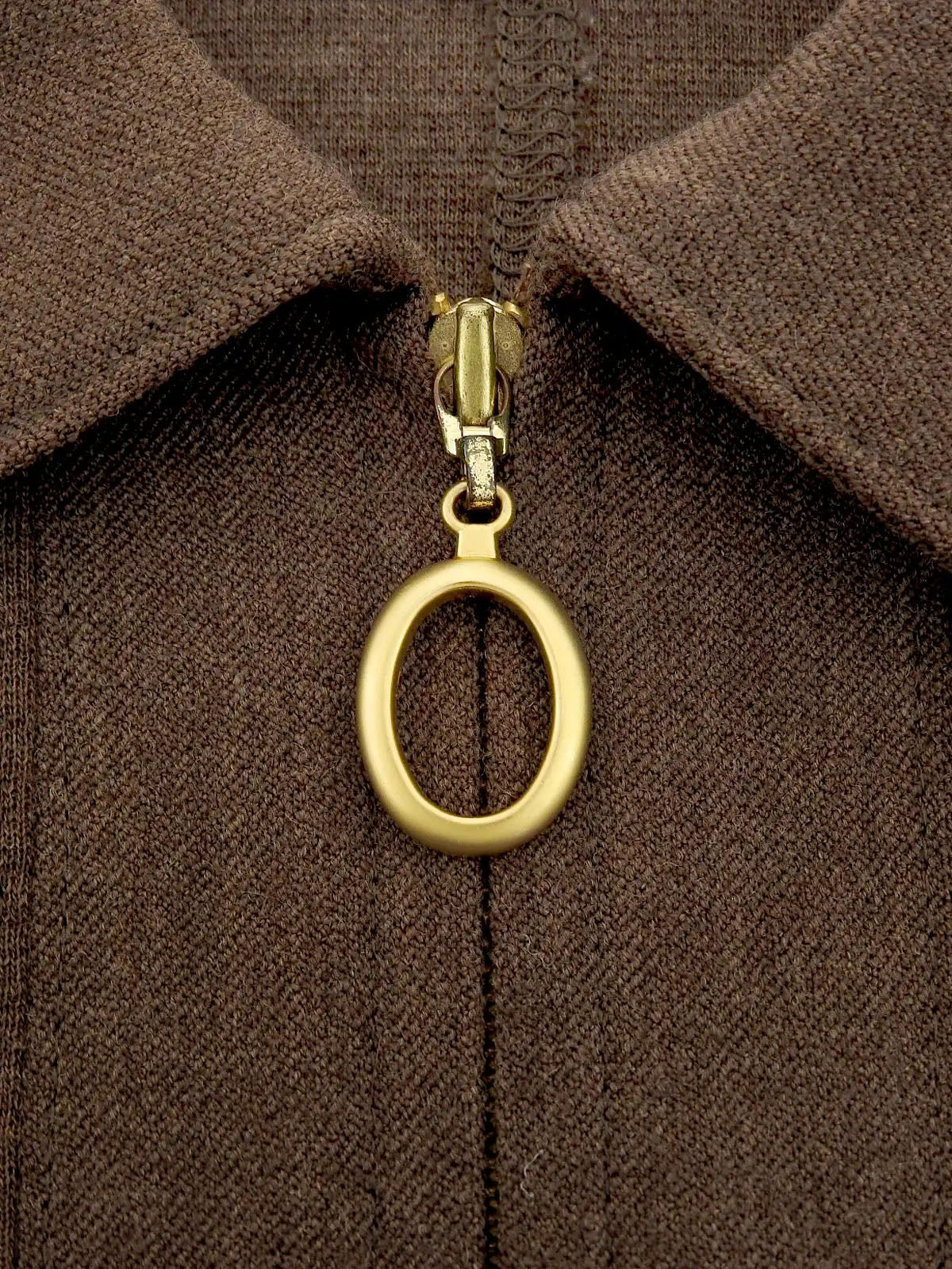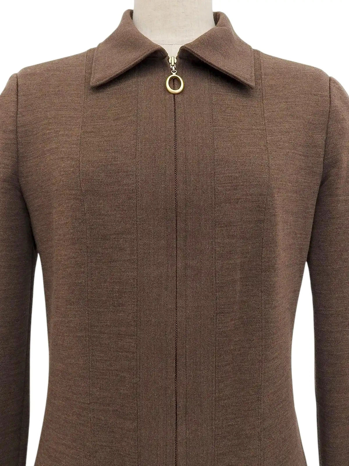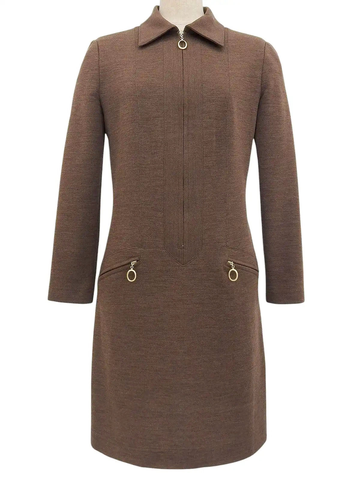 Brown wool oval zip-up long sleeve dress