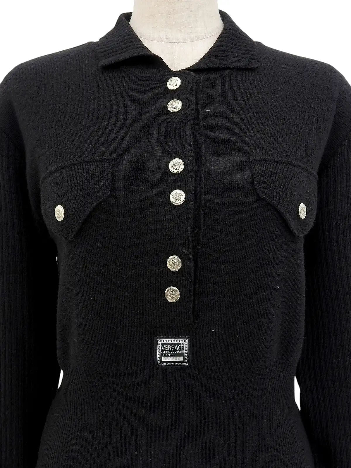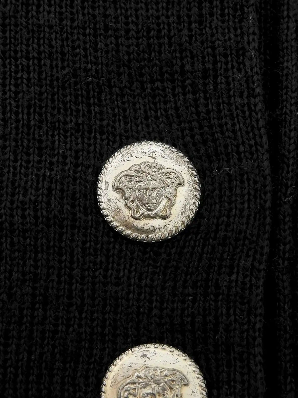 Medusa Button Long Sleeve Knit Top in Black