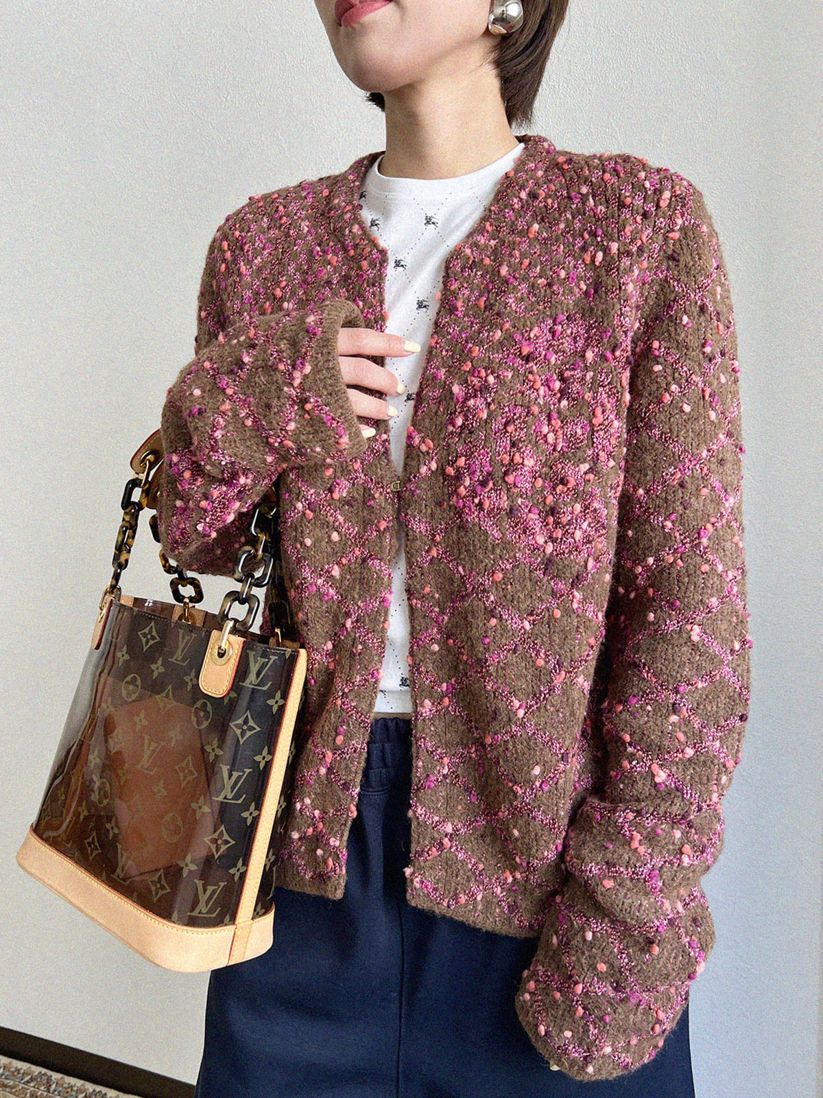2001 Camellia COCO logo cardigan in brown/pink
