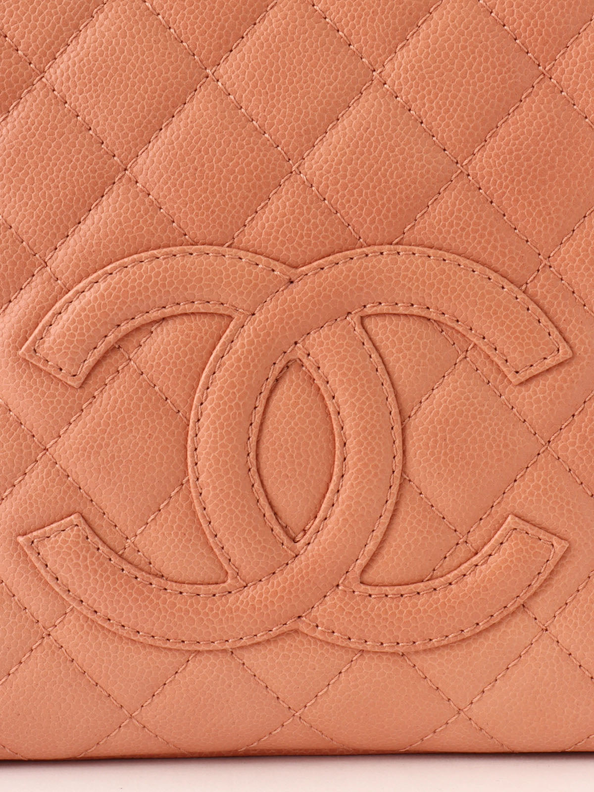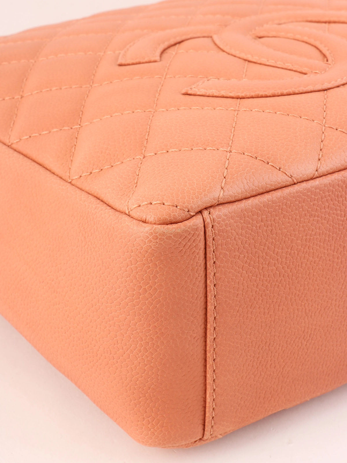 2008 Caviar Skin CC Mark Stitch Chain Tote Bag in Coral Pink
