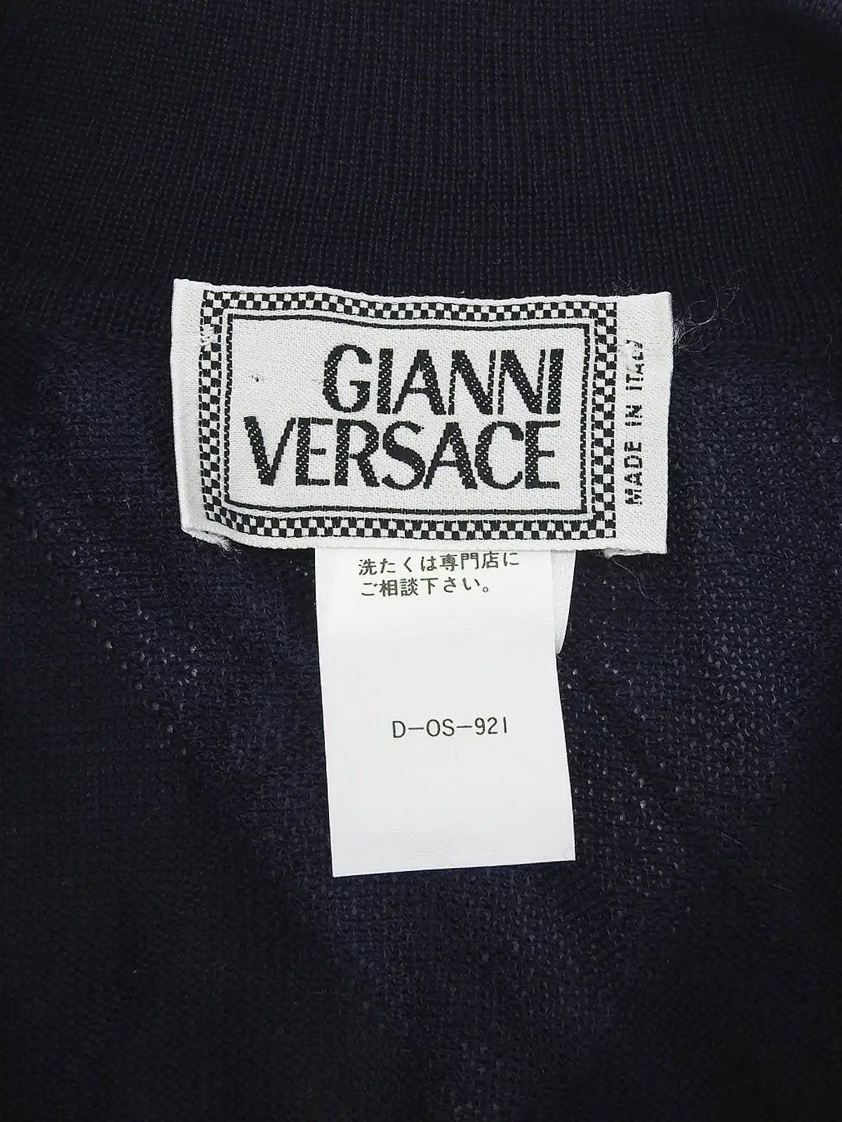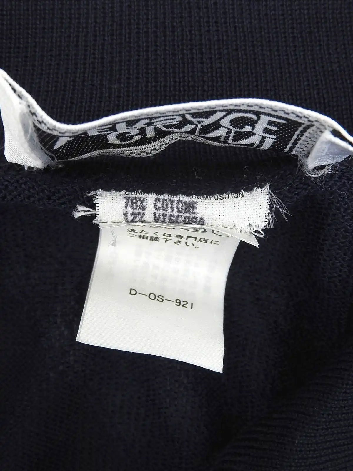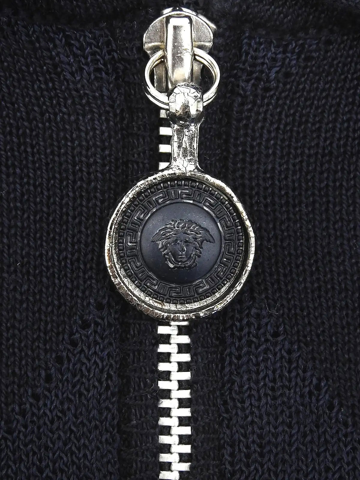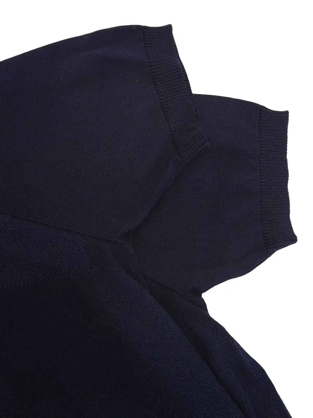 Argyle Pattern Medusa Zip Half Sleeve Knit Top in Navy