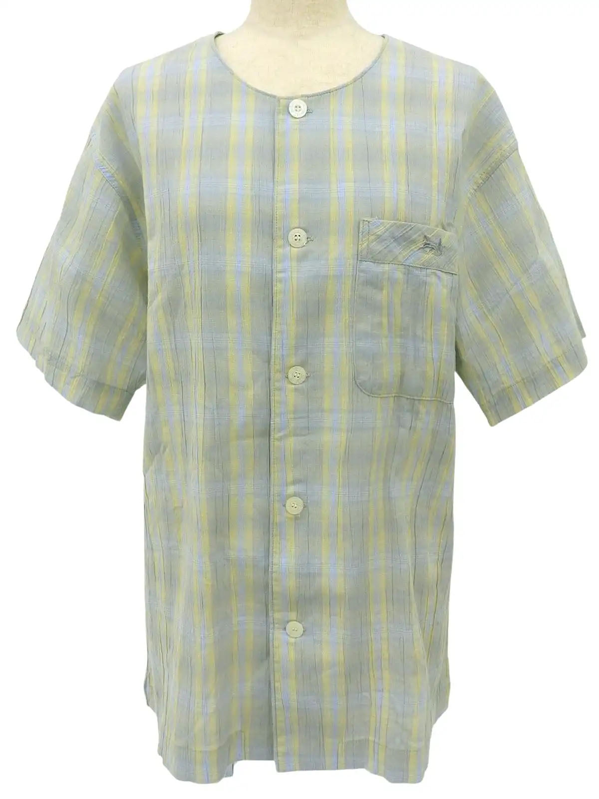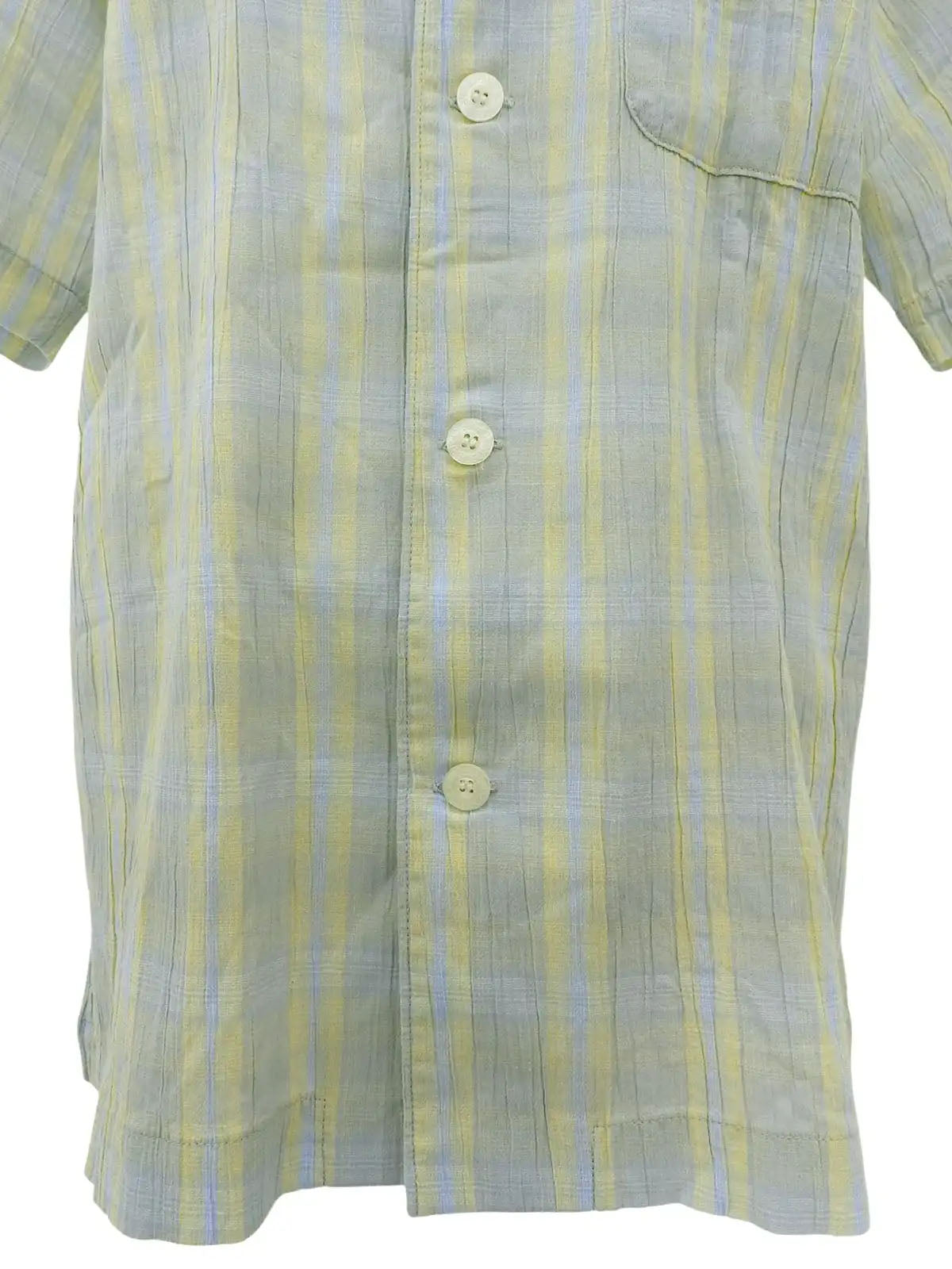 Check Pattern Horse Carriage Embroidered Half Sleeve Top in Light Blue/Light Yellow