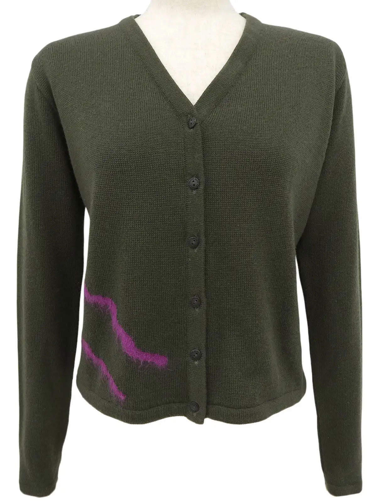 Logo Button Cardigan in Olive Green/Dahlia Purple