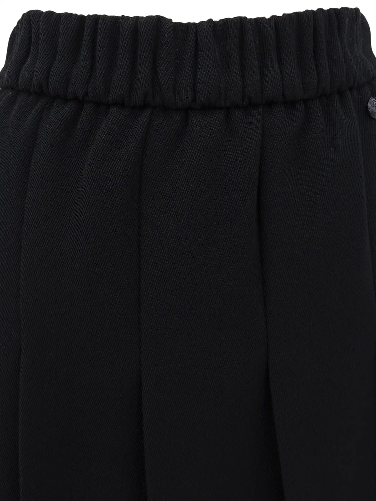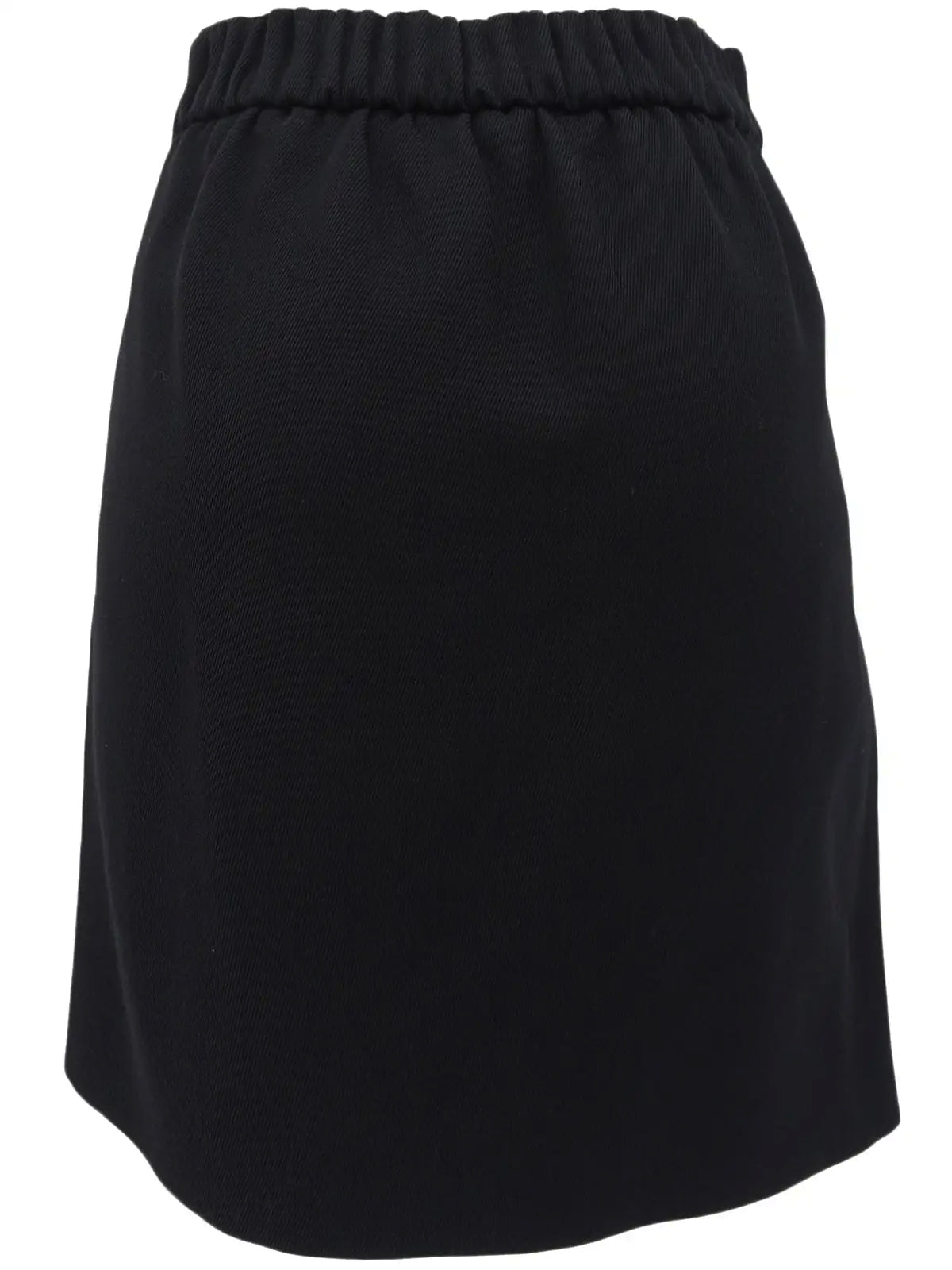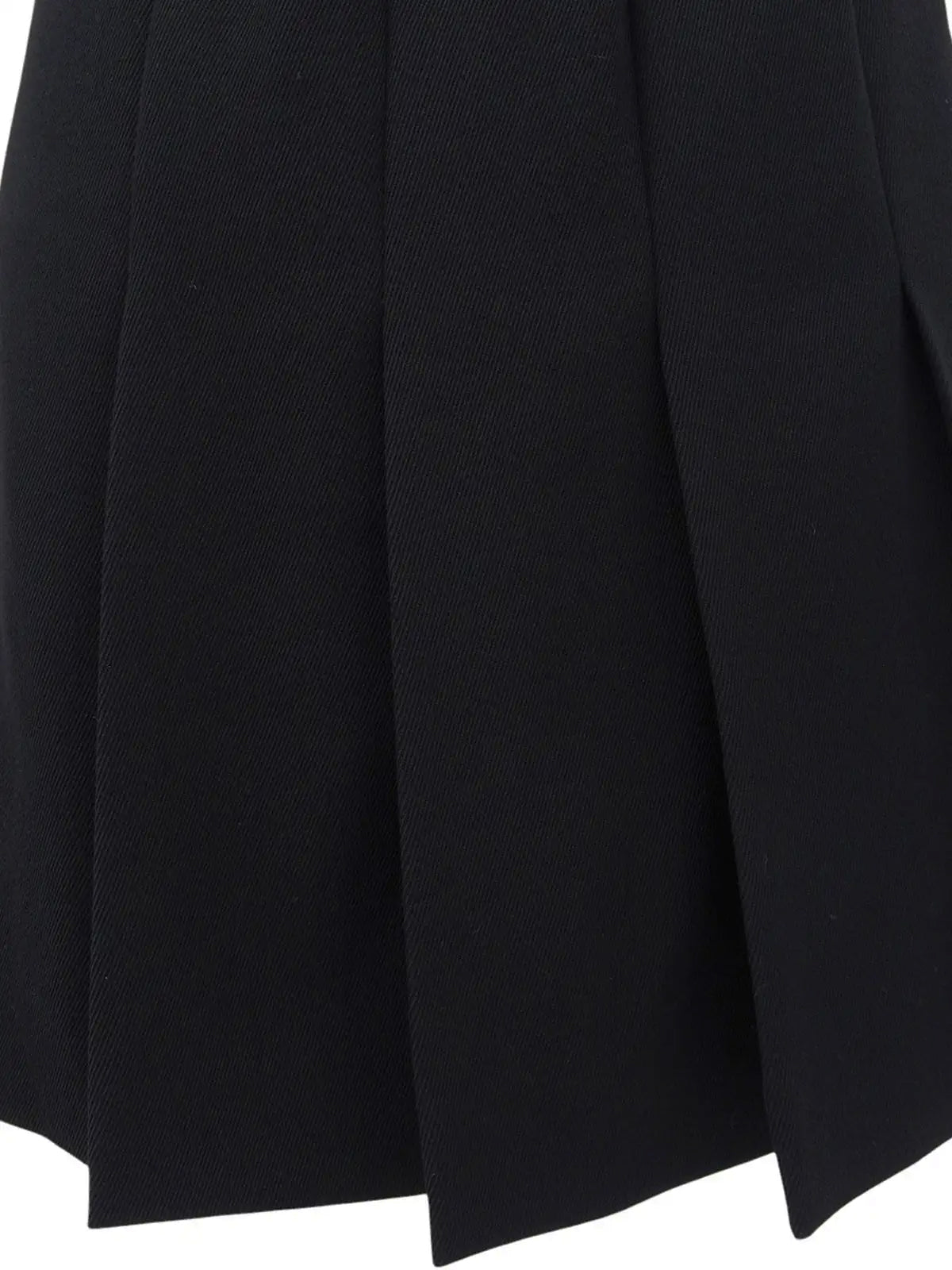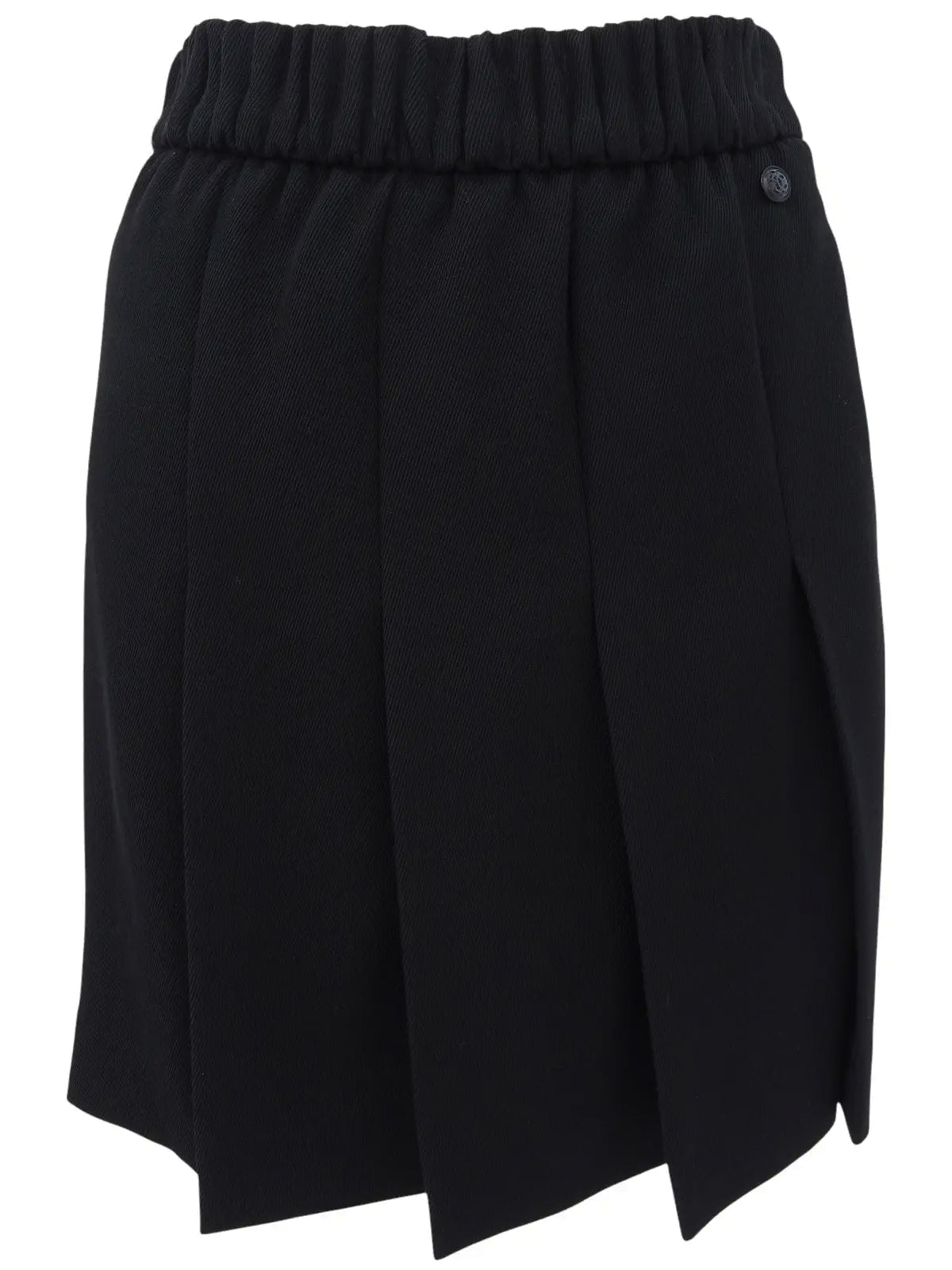 Wool Oval CC Mark Front Pleated Skirt in Black