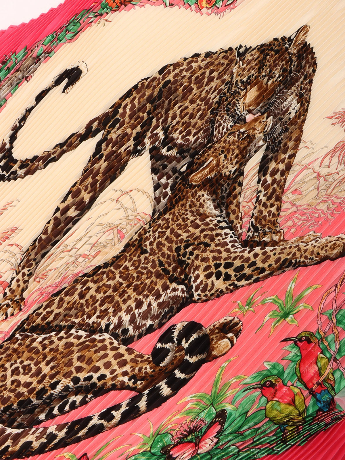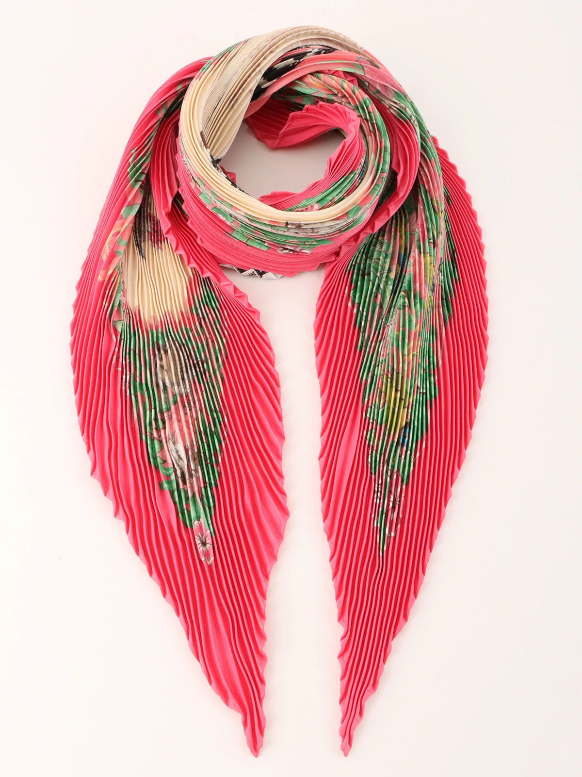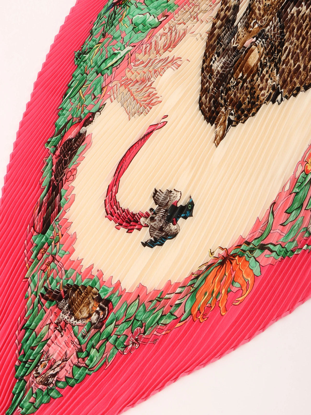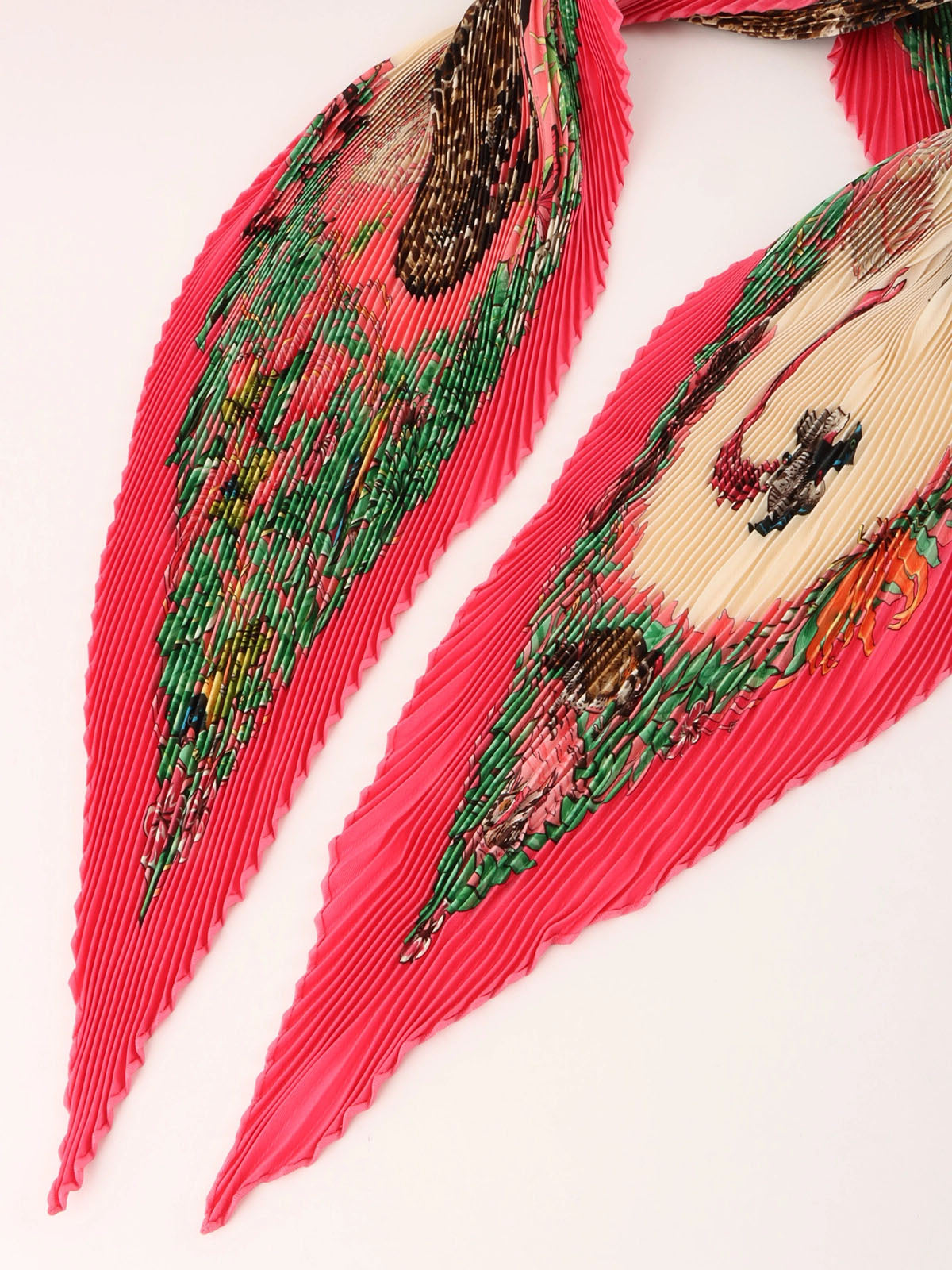 Jungle Love Pattern Pleated Scarf Pink/Multi