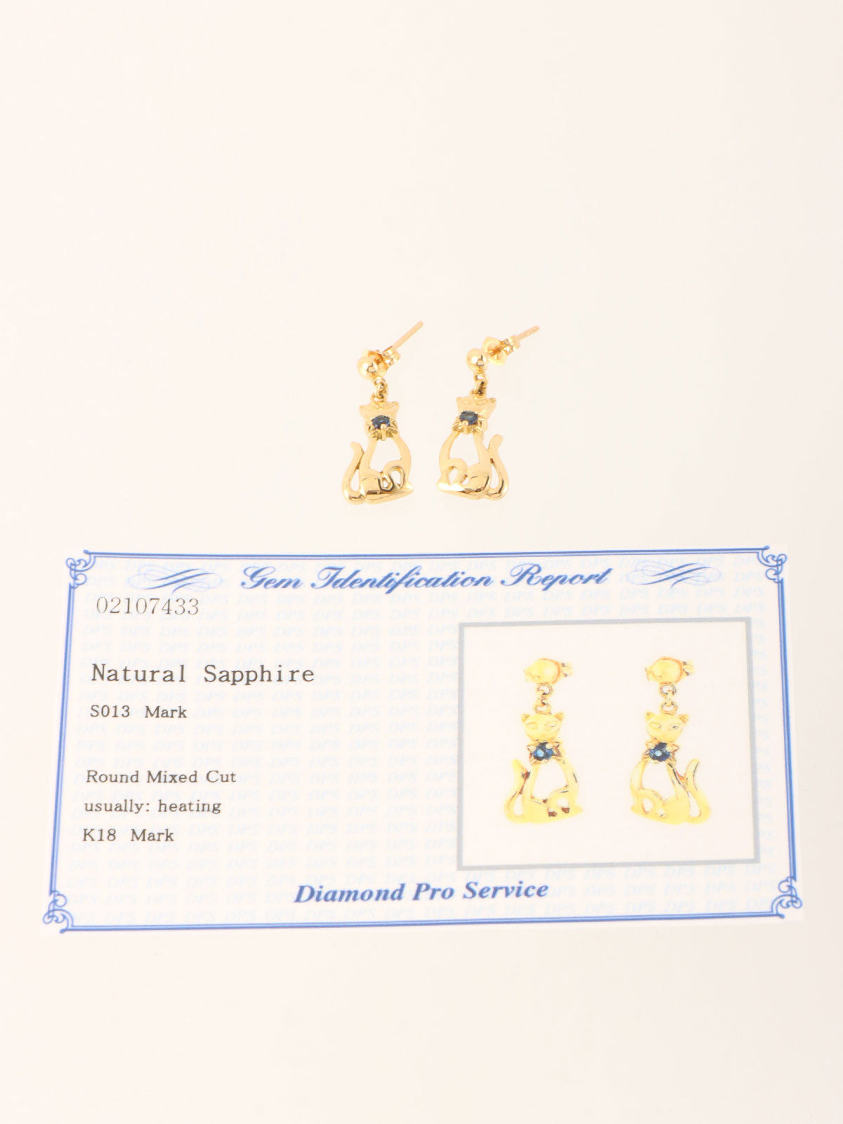 18K Sapphire Cat Motif Earrings in Gold/Blue