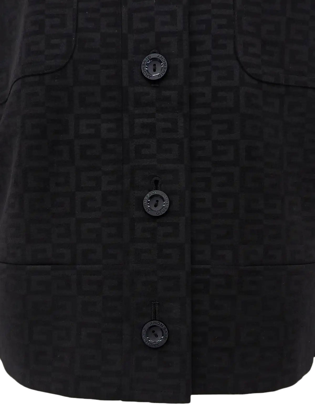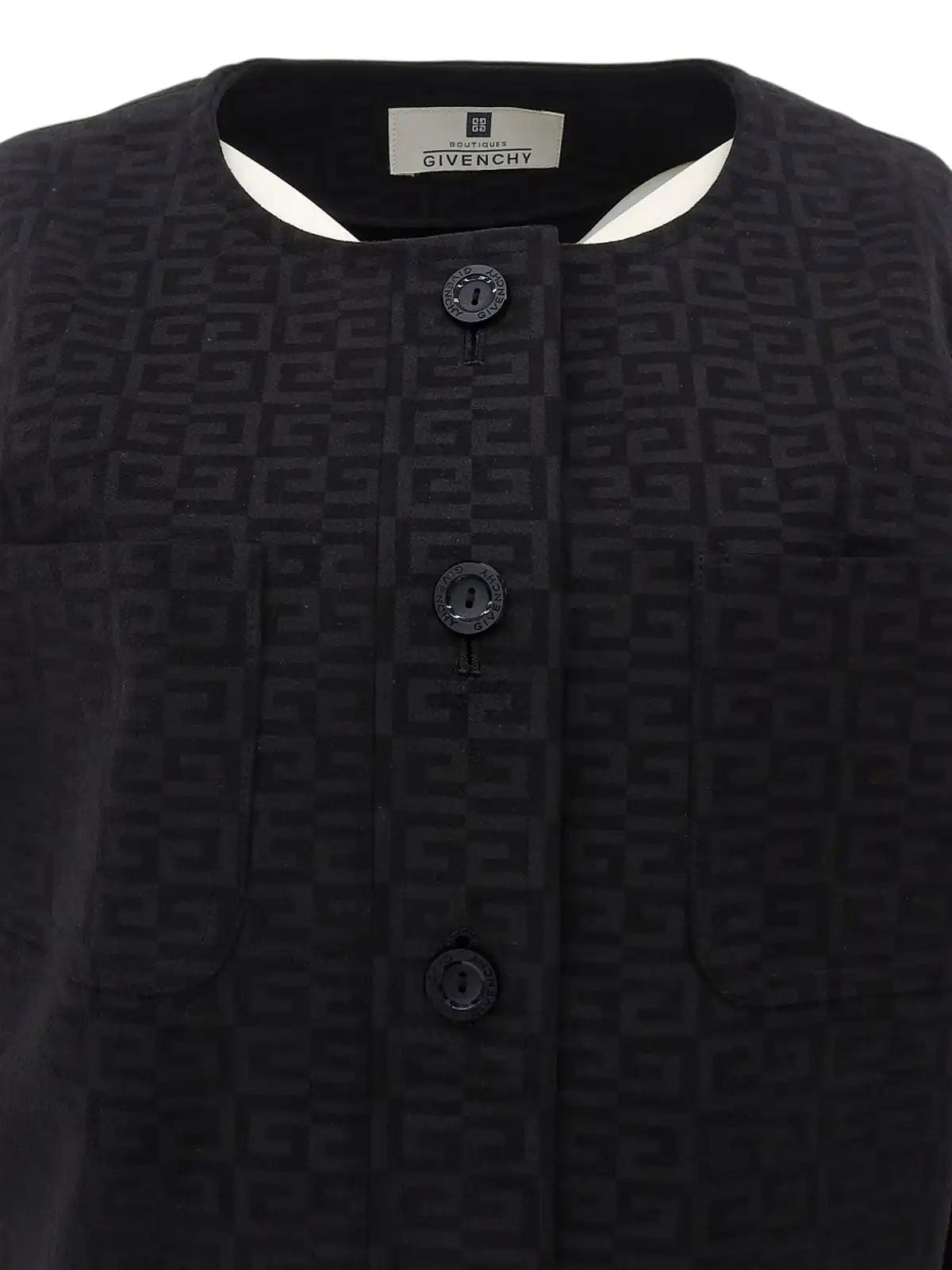 Suede G logo pattern collarless jacket in black/gray