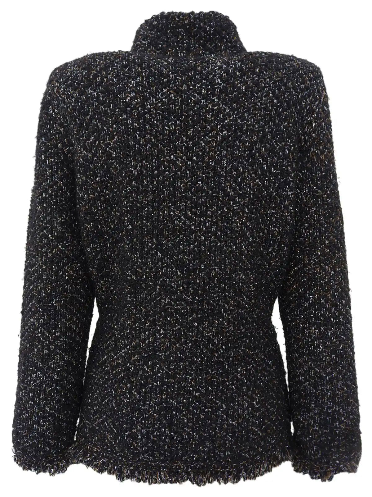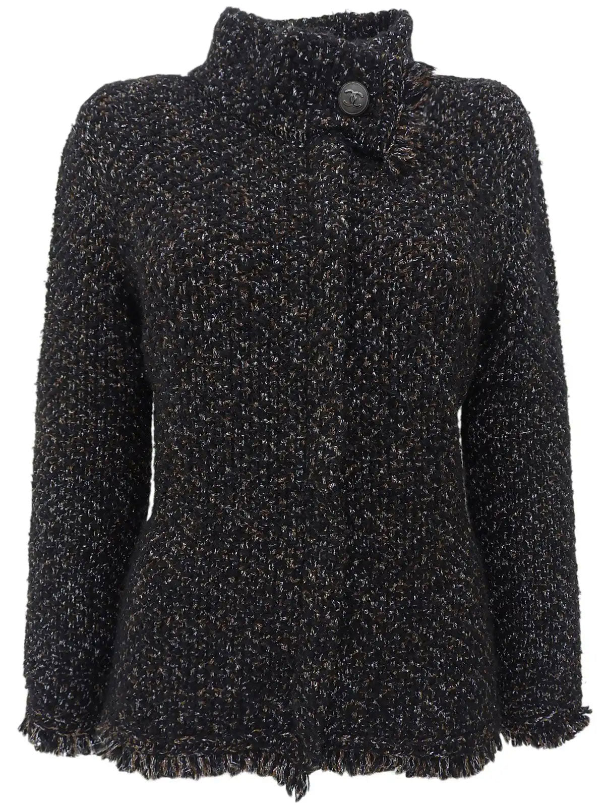 2003 CC mark button zip-up glitter knit jacket in black/silver/multi