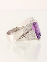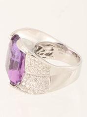 18K Amethyst Diamond Design Ring in Silver/Purple