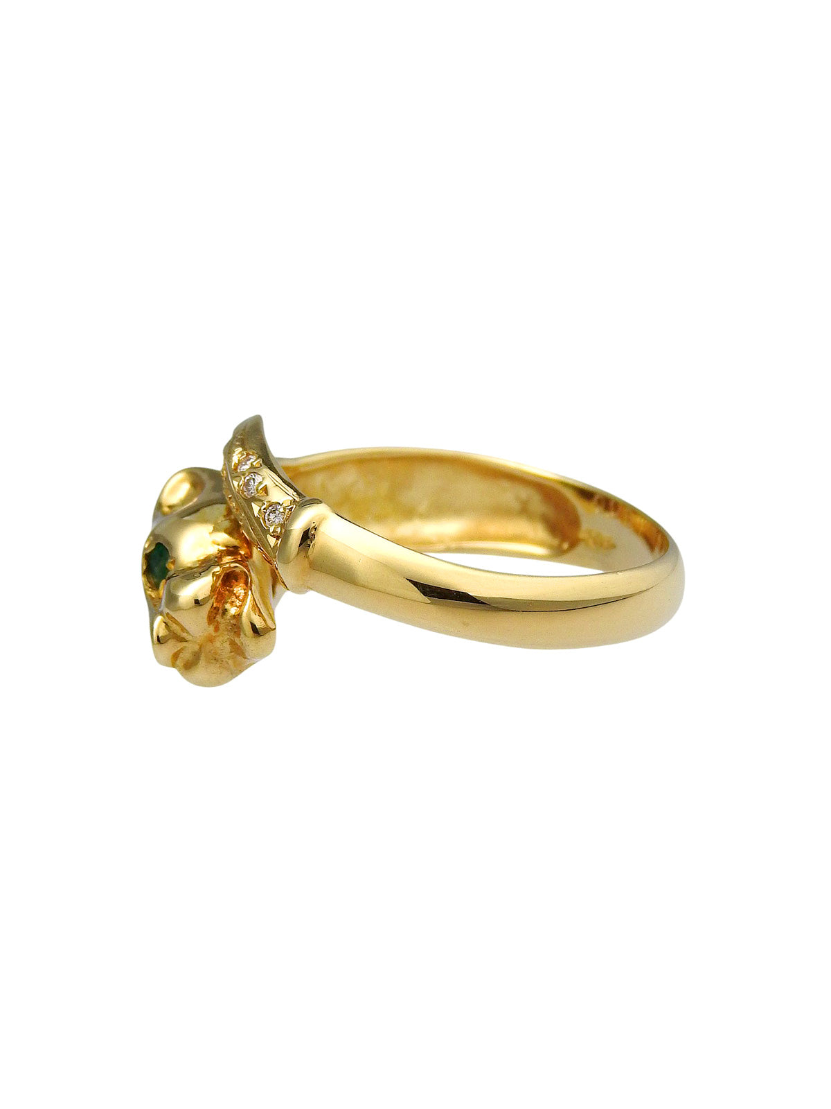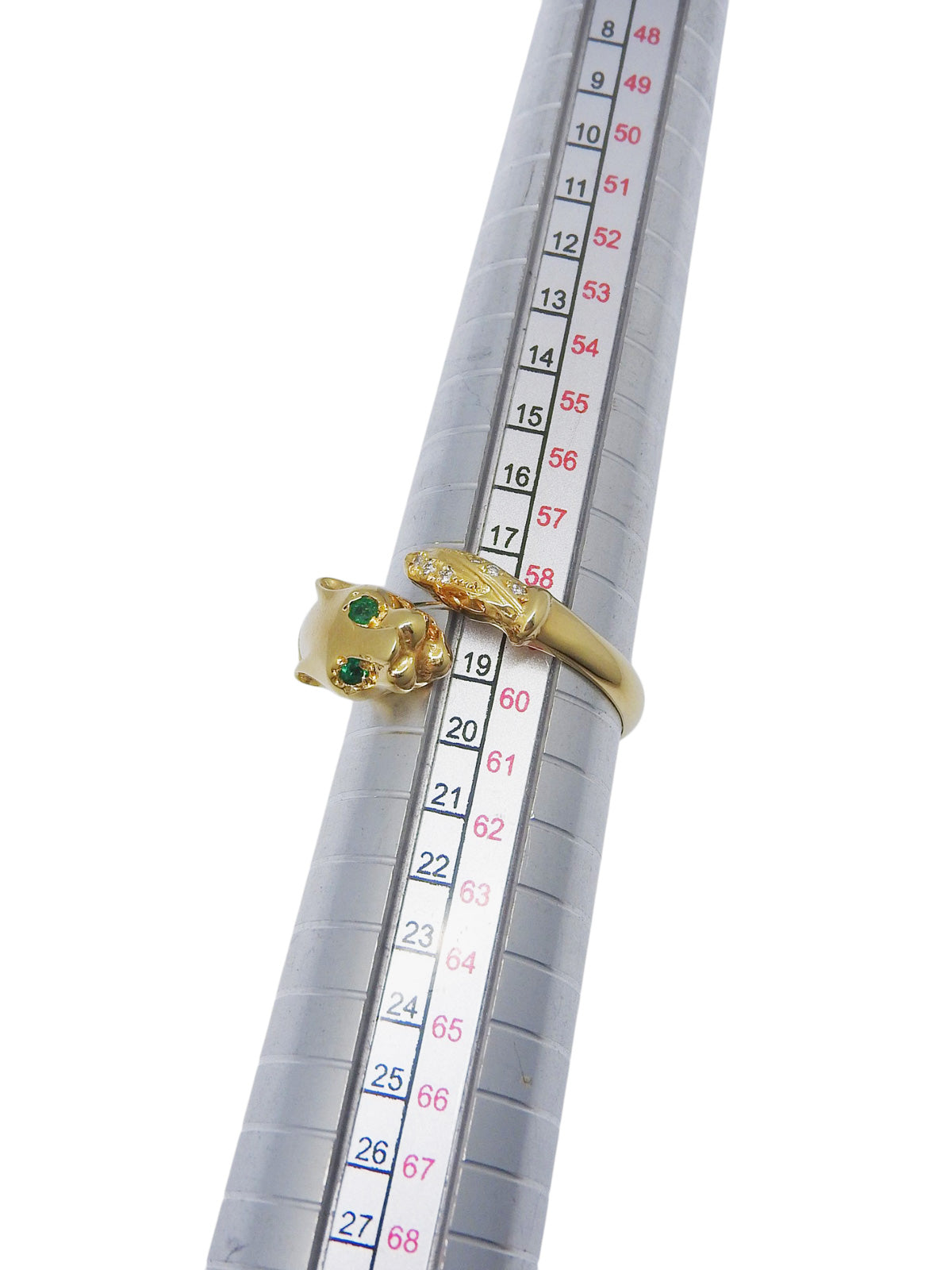 18K Gold/Green Emerald and Diamond Panther Motif Ring