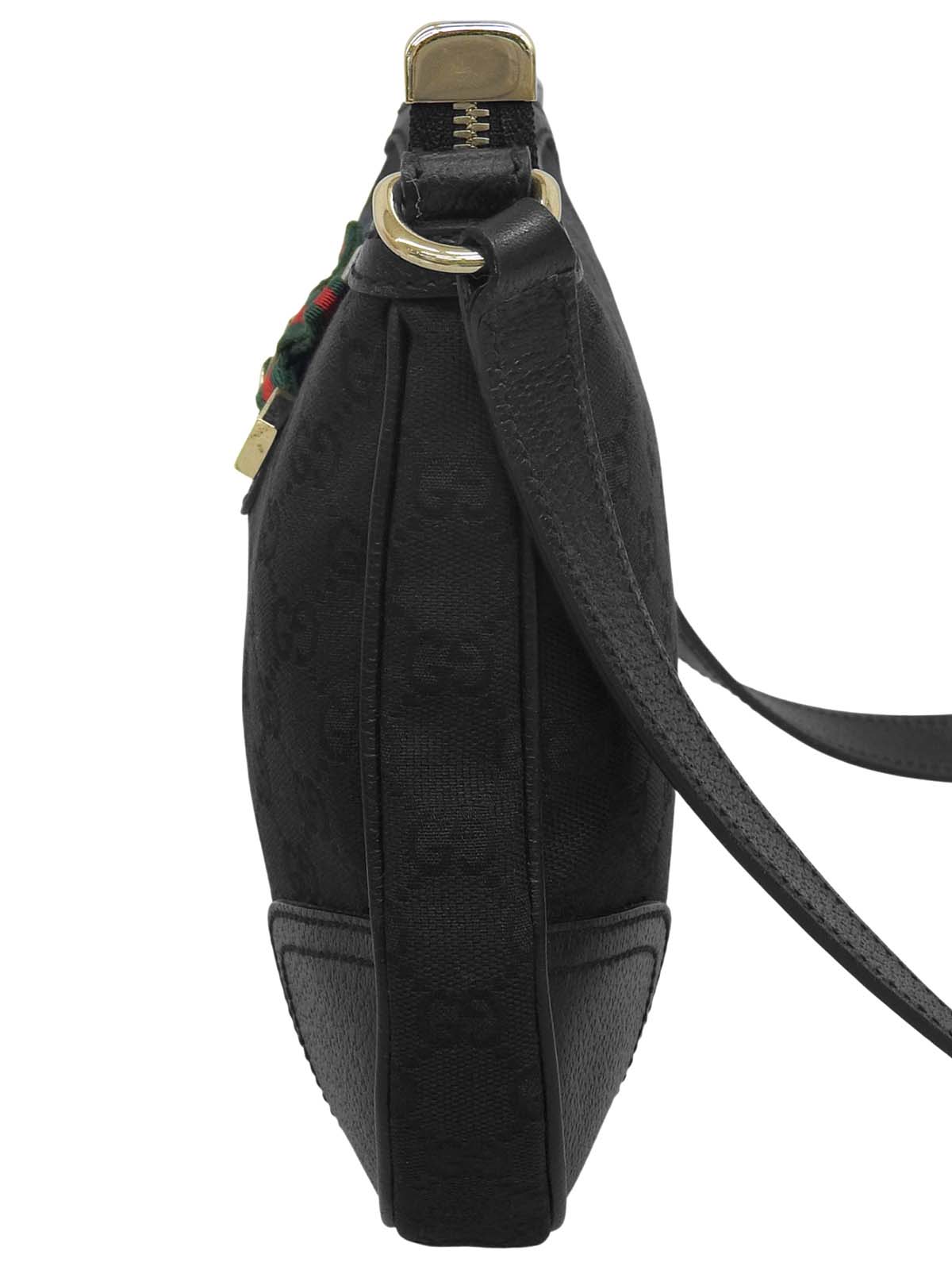 キャンバスGGパターンシェリーラインリボンショルダーバッグ ブラック
