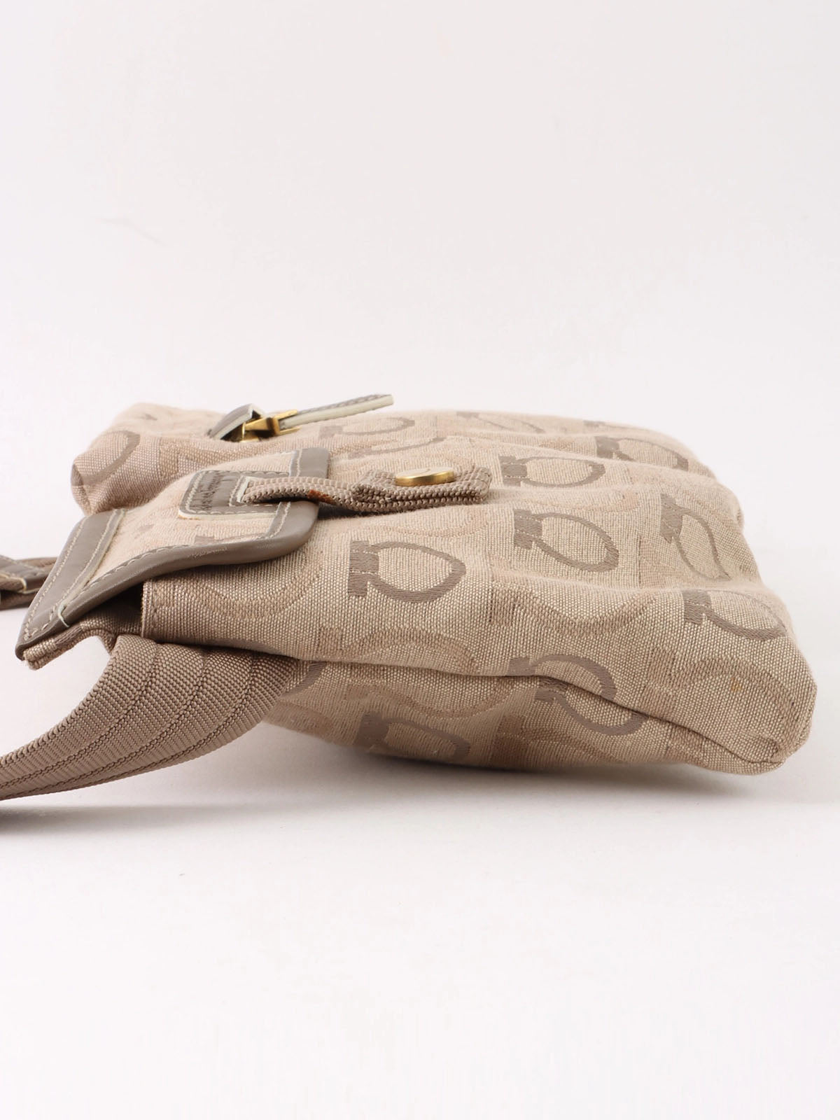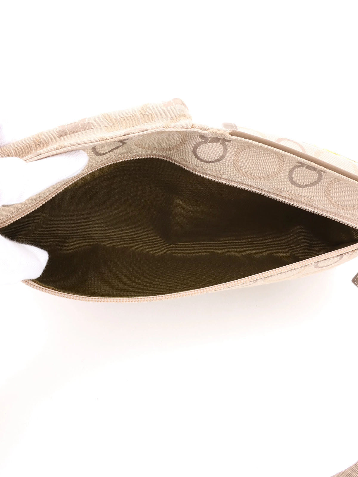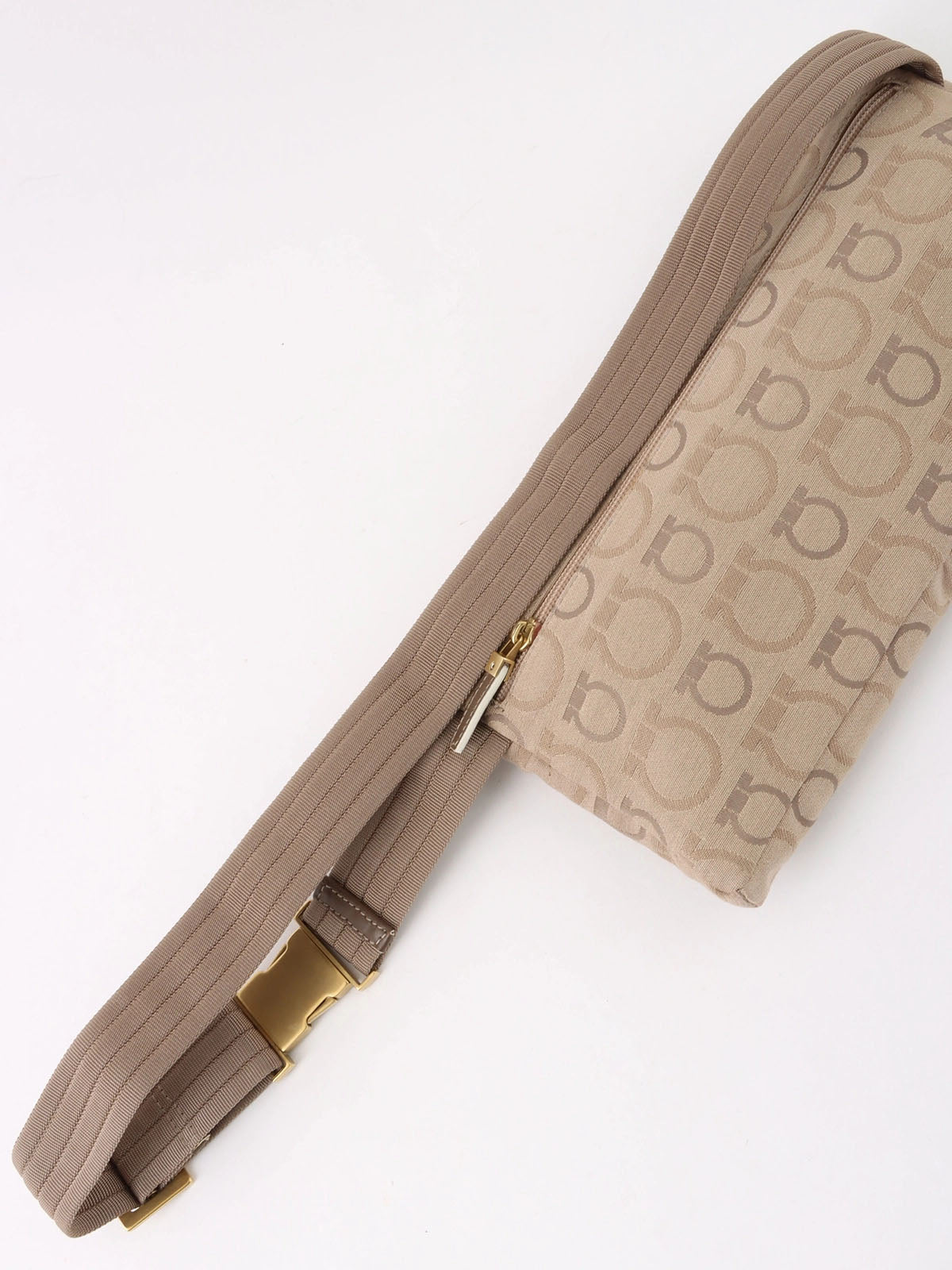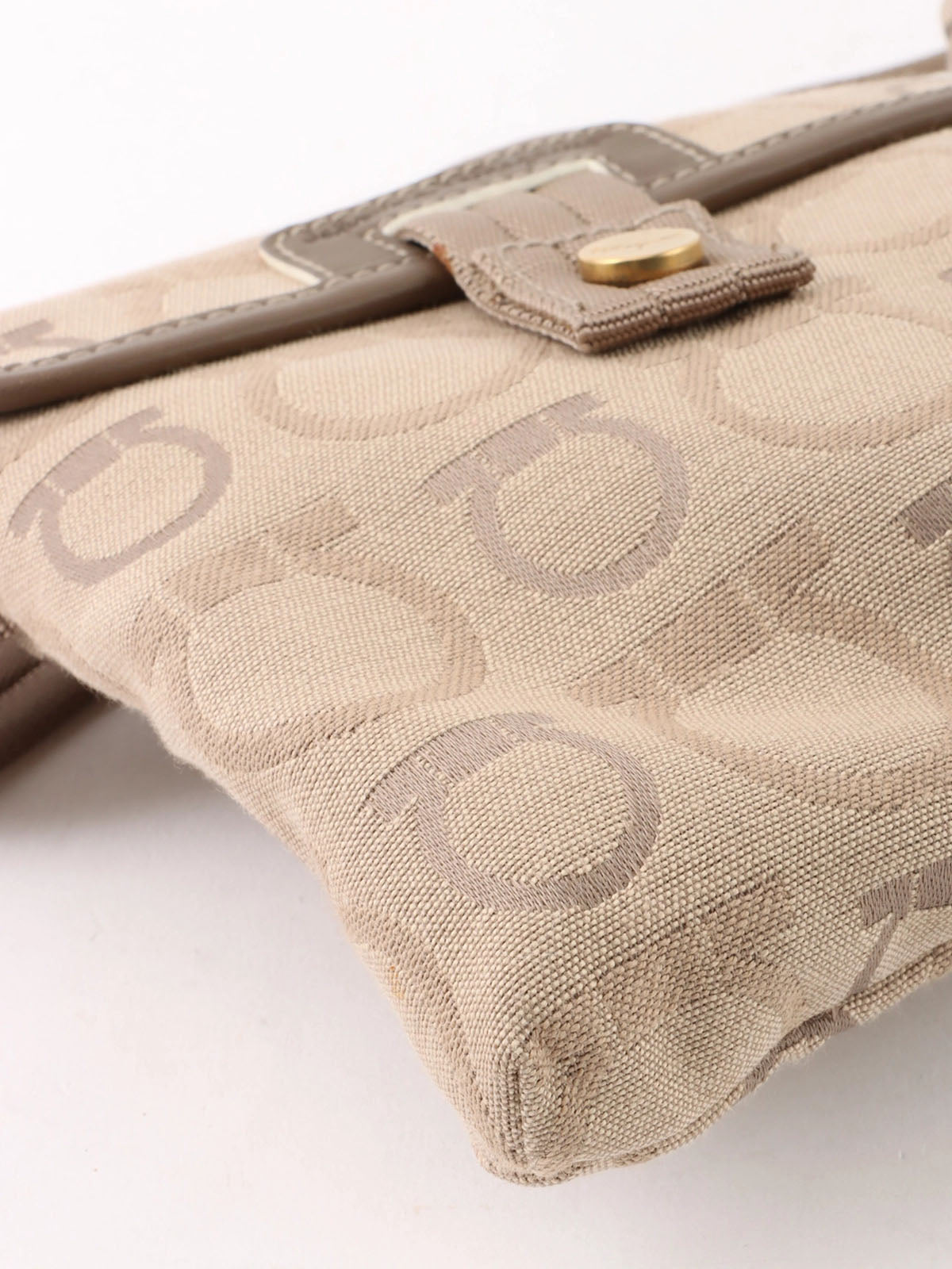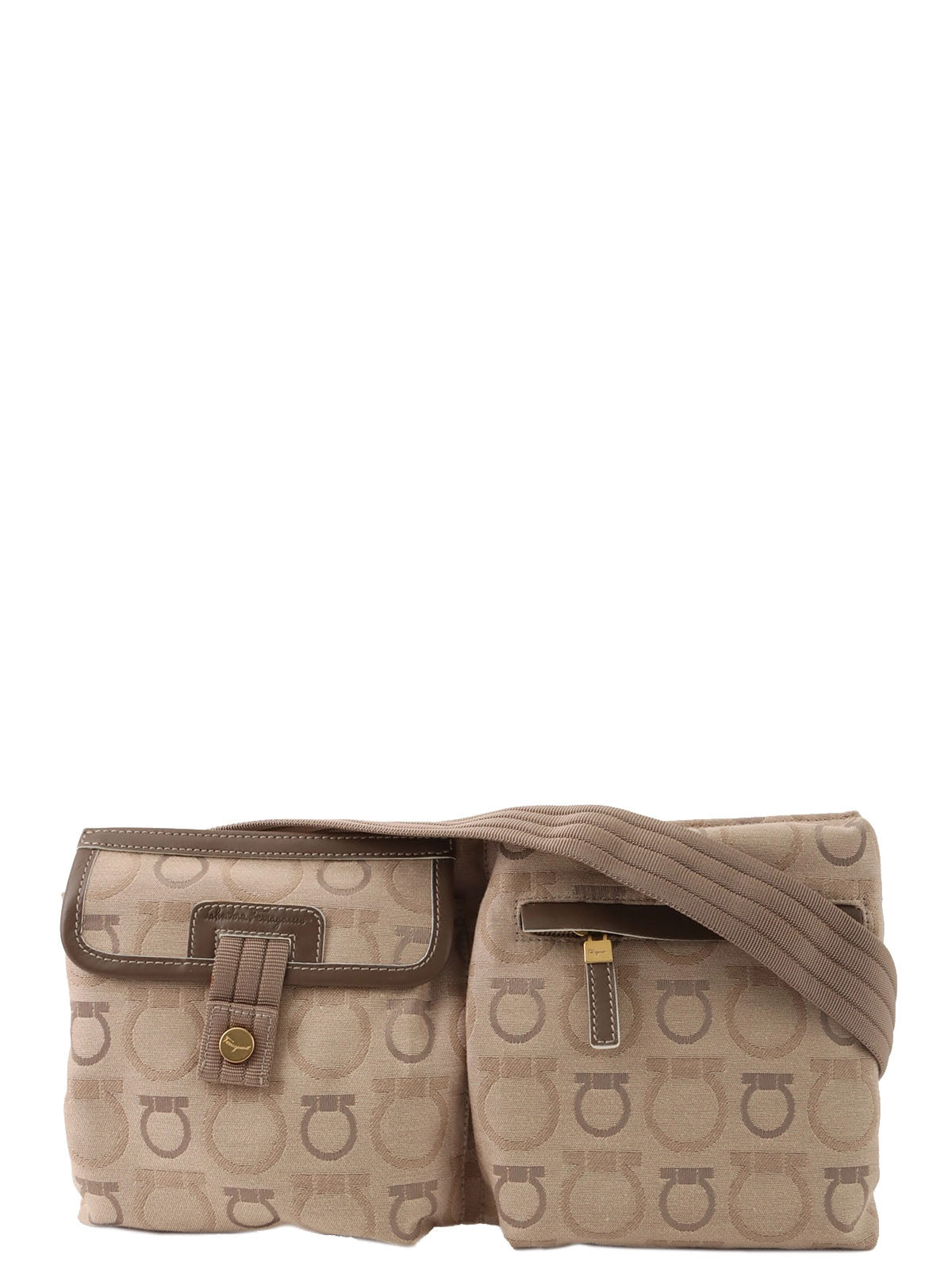 Beige canvas Gancini pattern waist bag