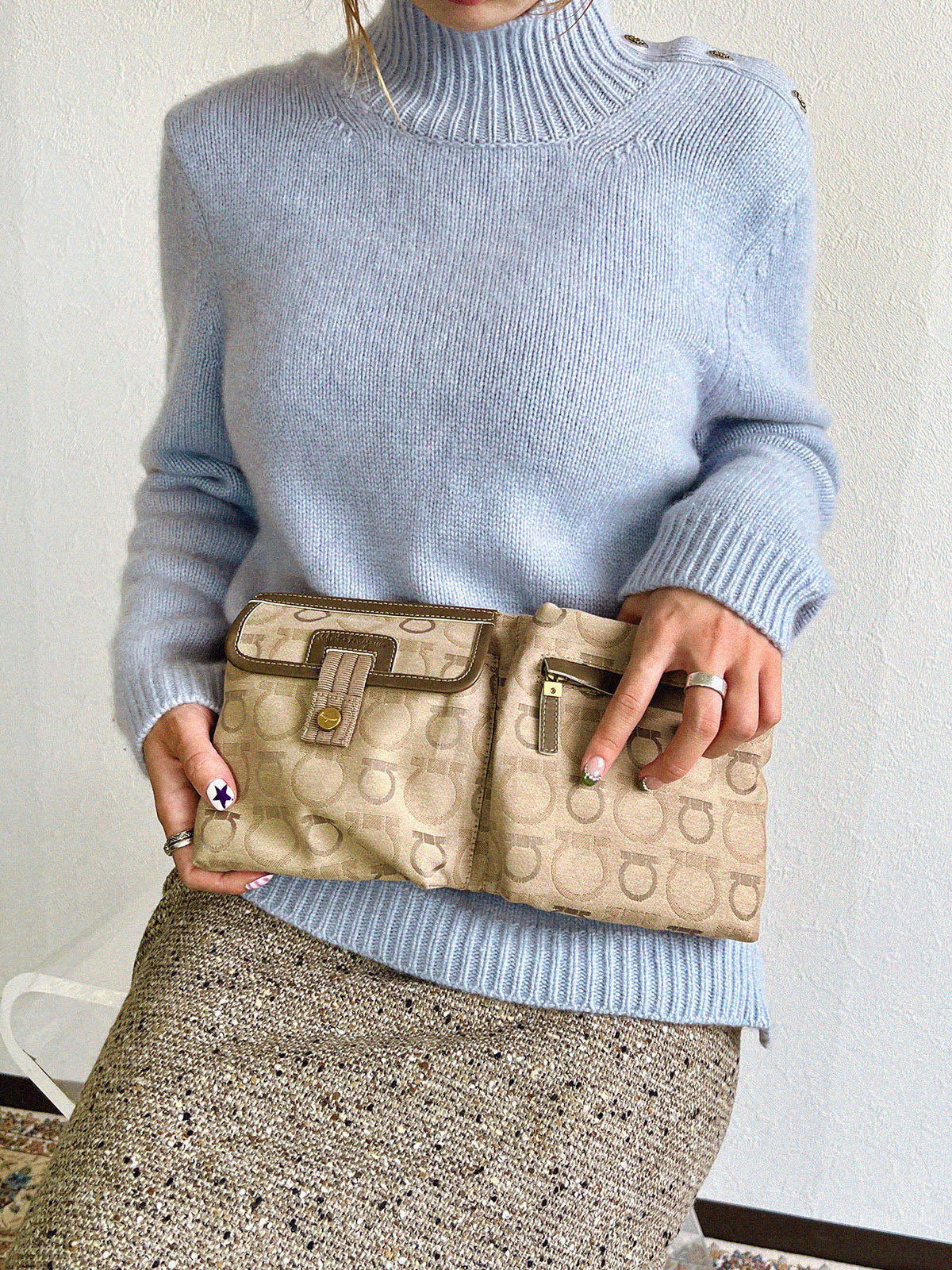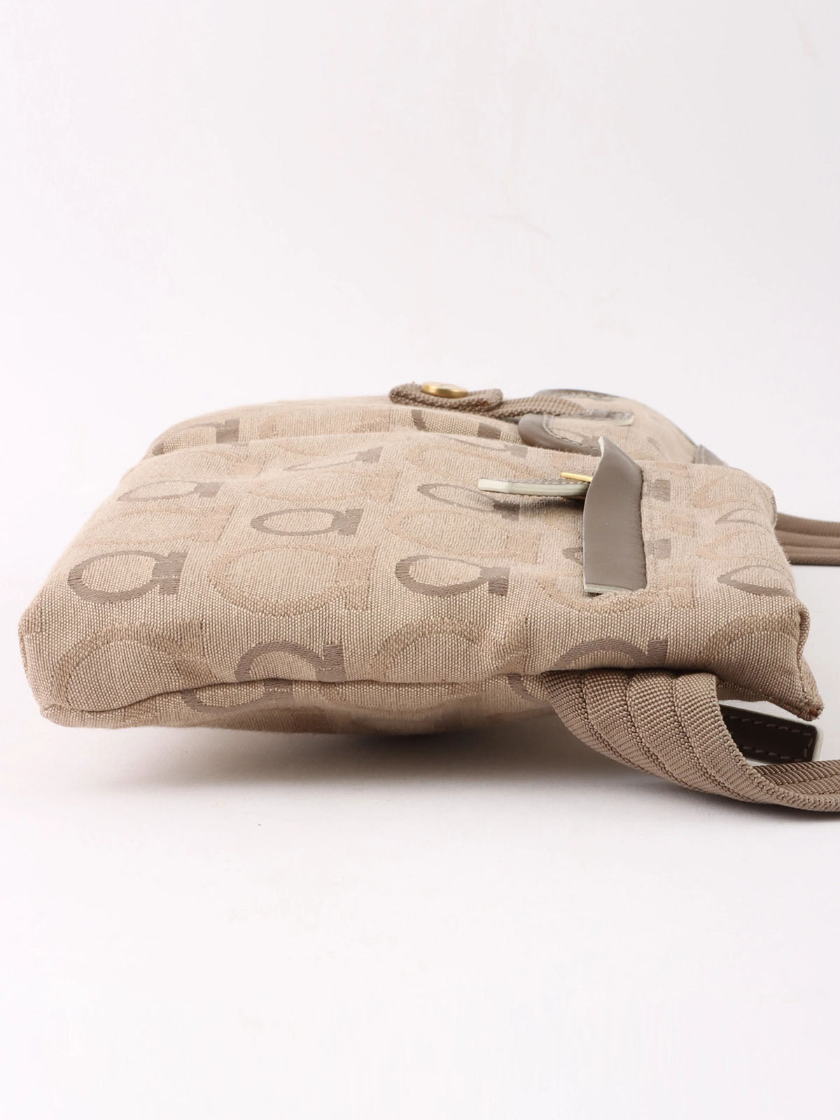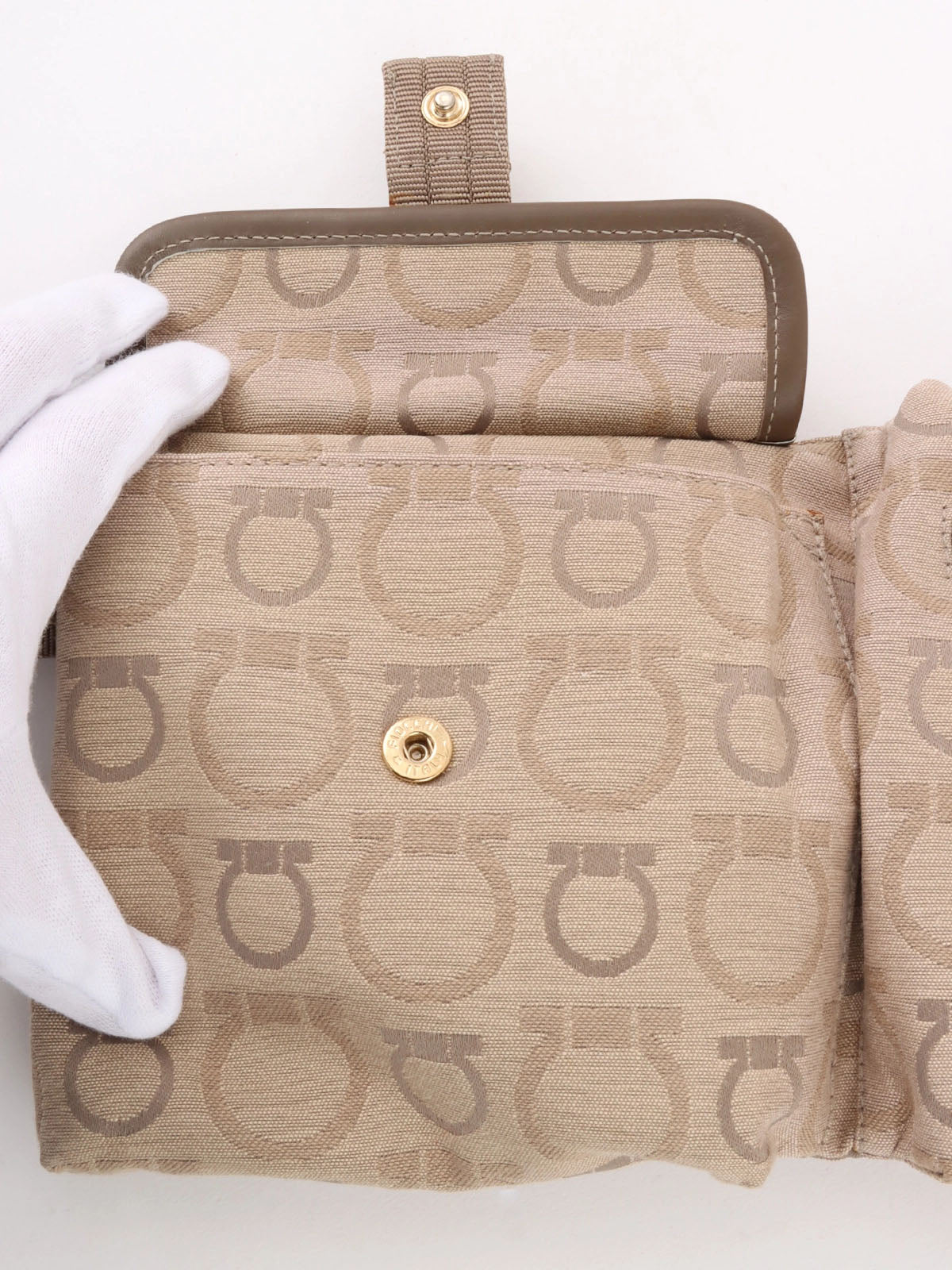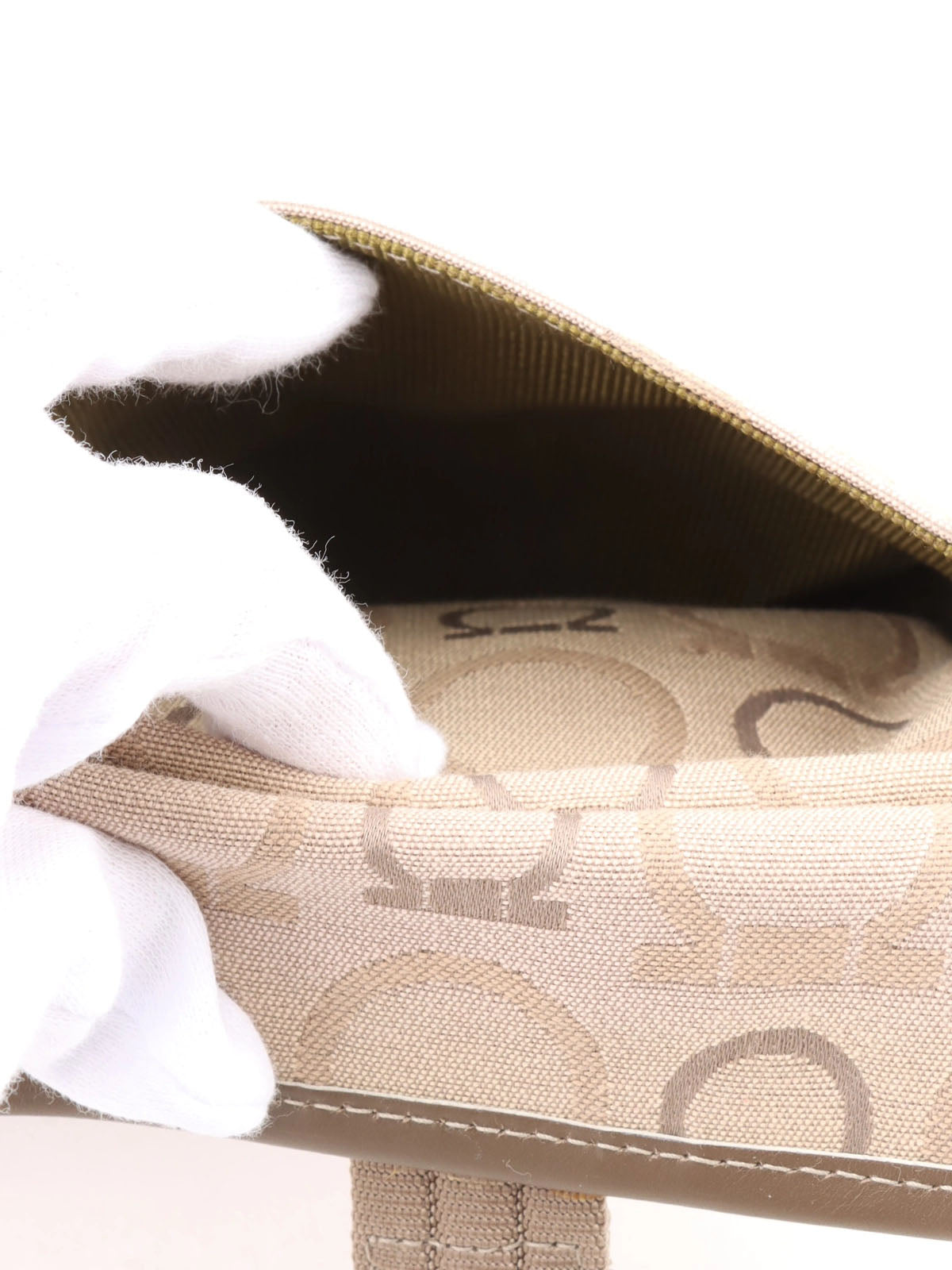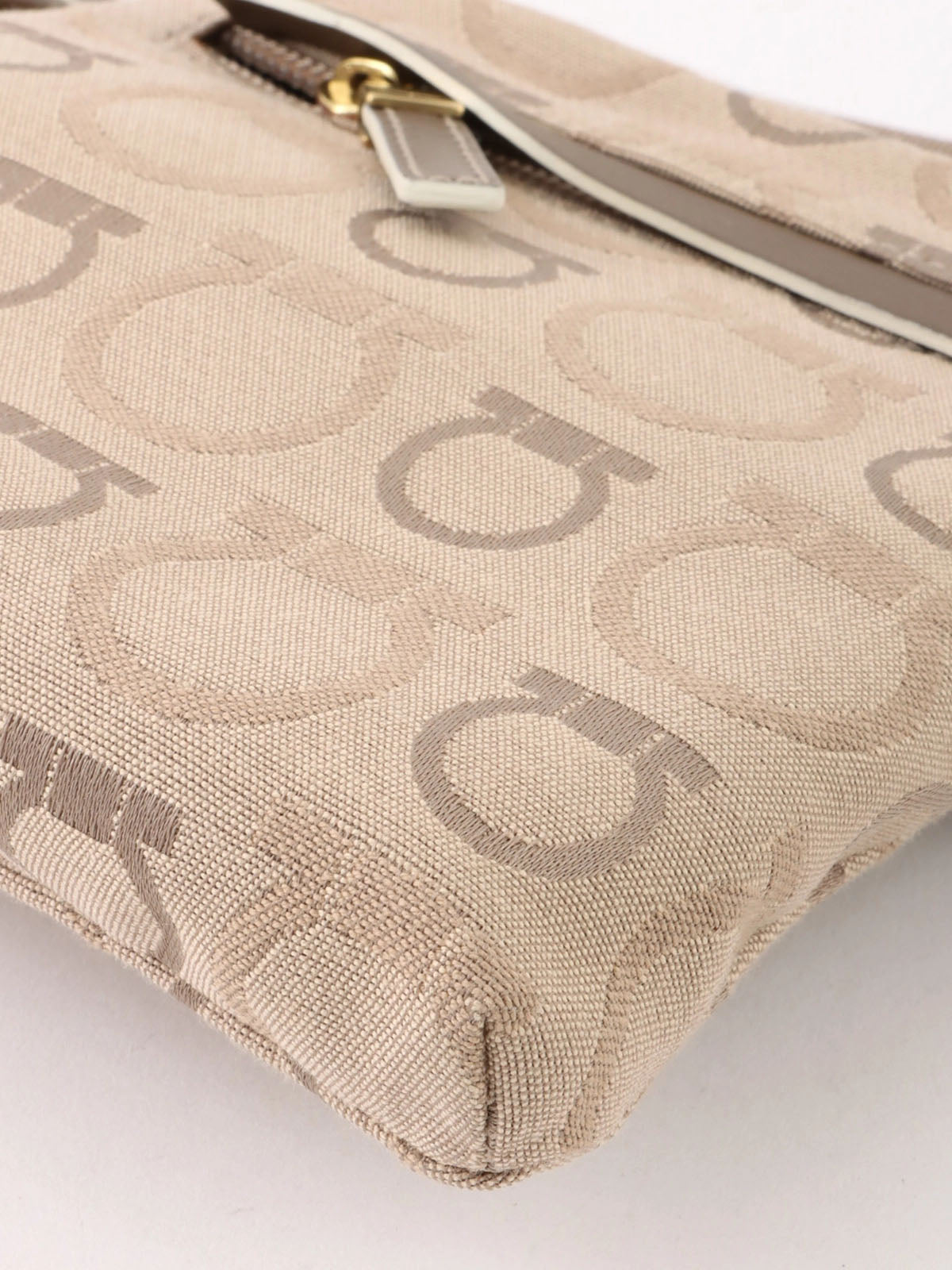 Beige canvas Gancini pattern waist bag