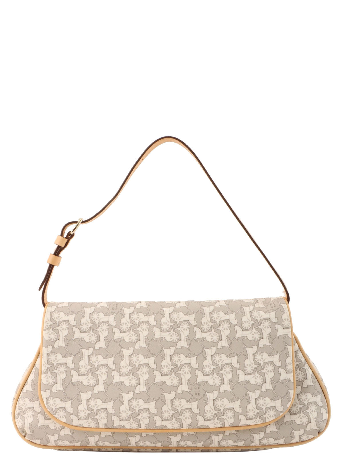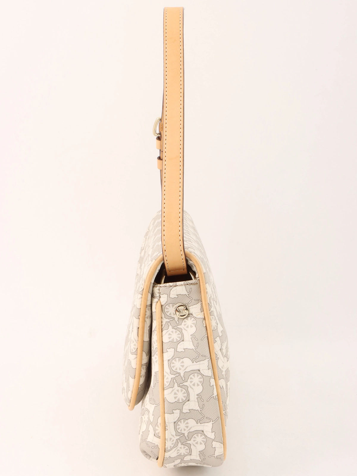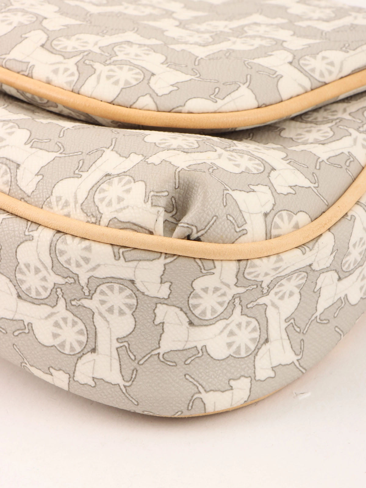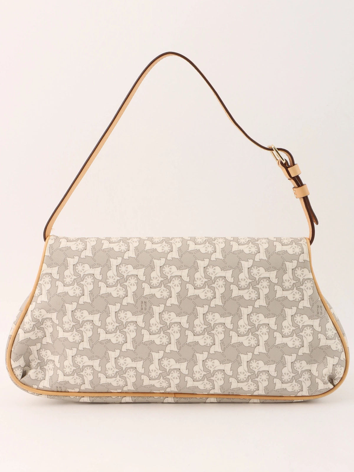 Horse Carriage Pattern Shoulder Bag in Gray/White