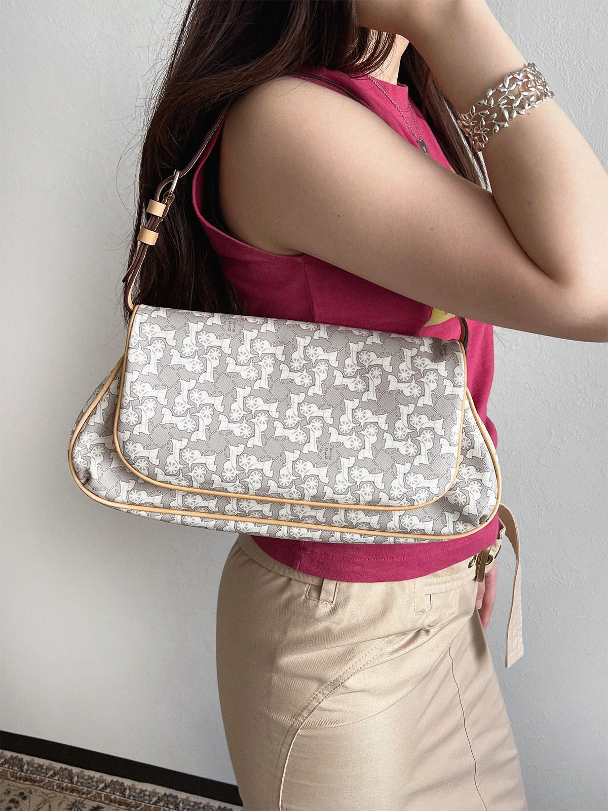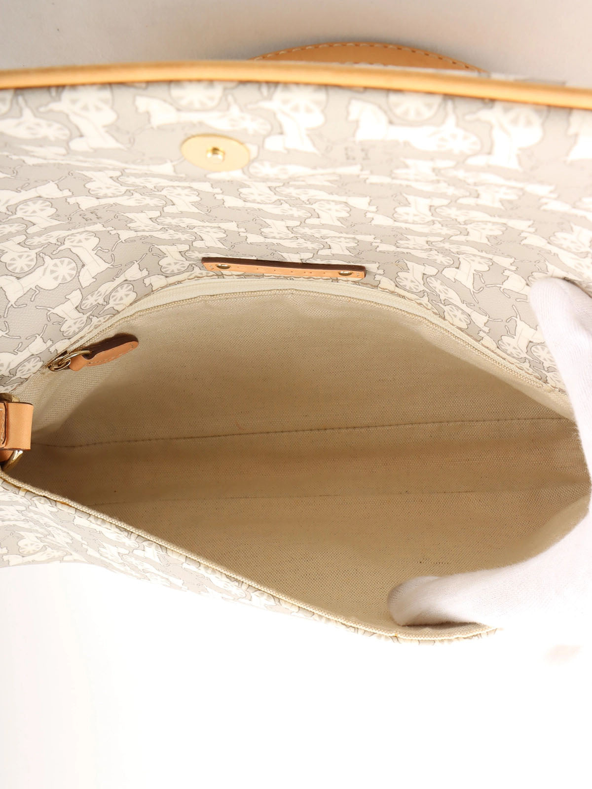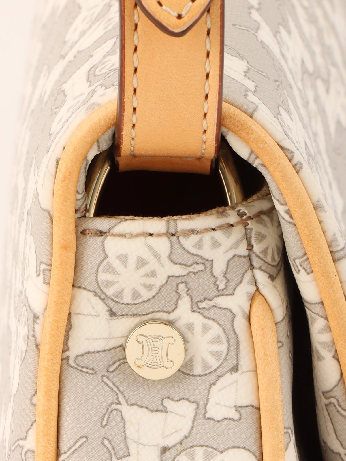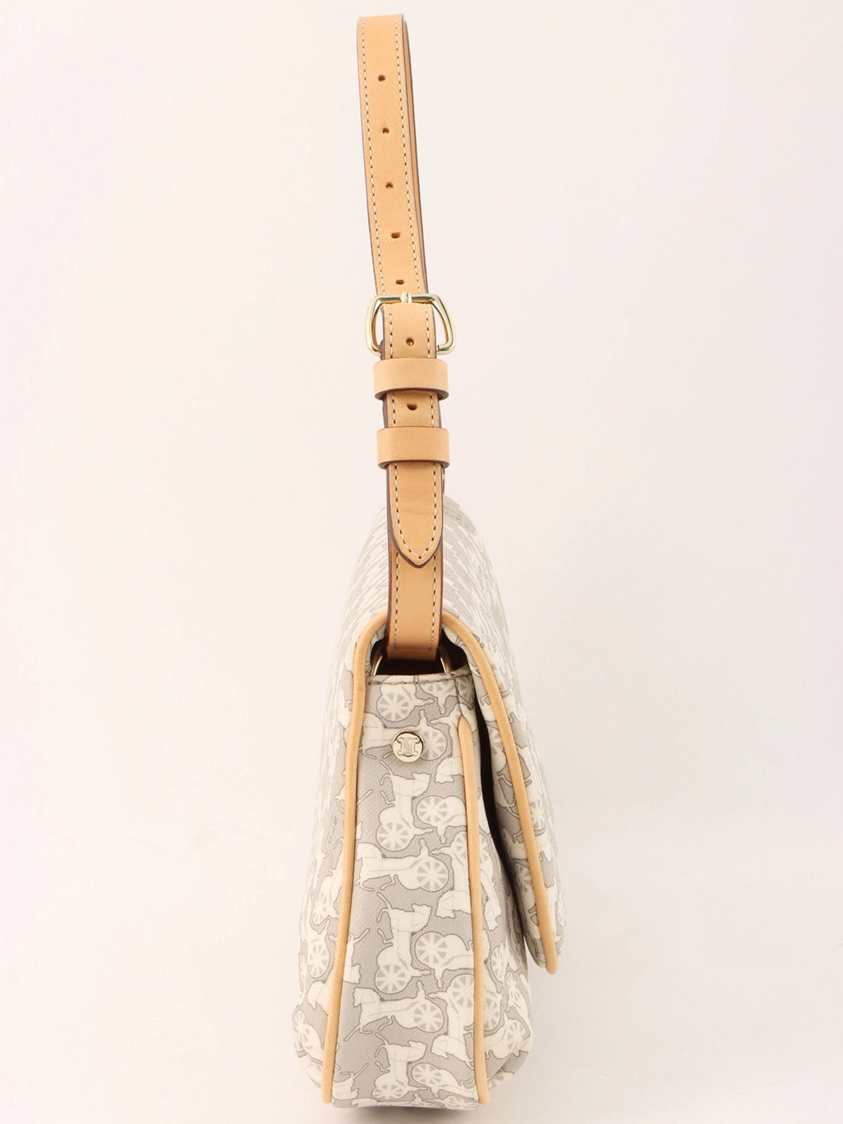 Horse Carriage Pattern Shoulder Bag in Gray/White