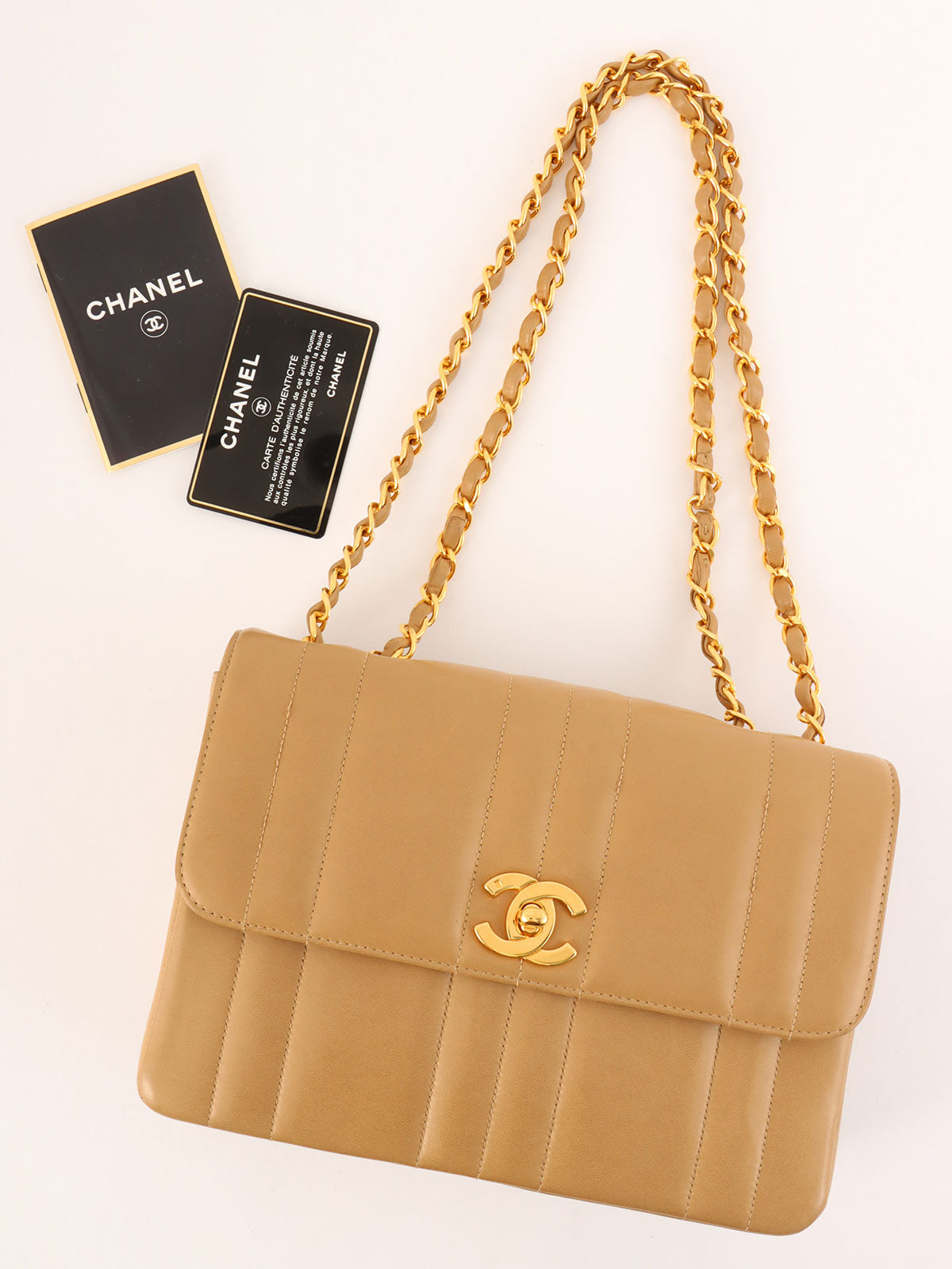 Mademoiselle Stitch CC Turnlock Chain Bag, Beige, circa 1995