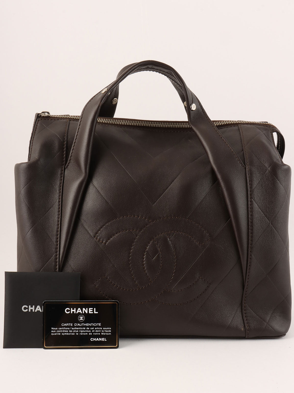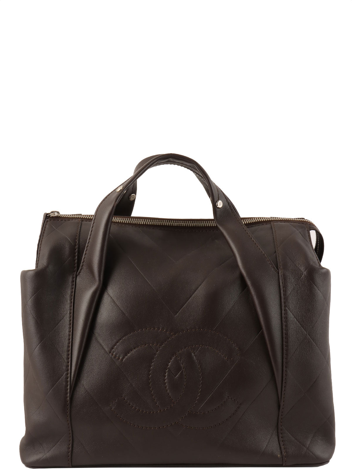 Around 2005 Made V Stitch CC Mark Top Handle Bag Brown