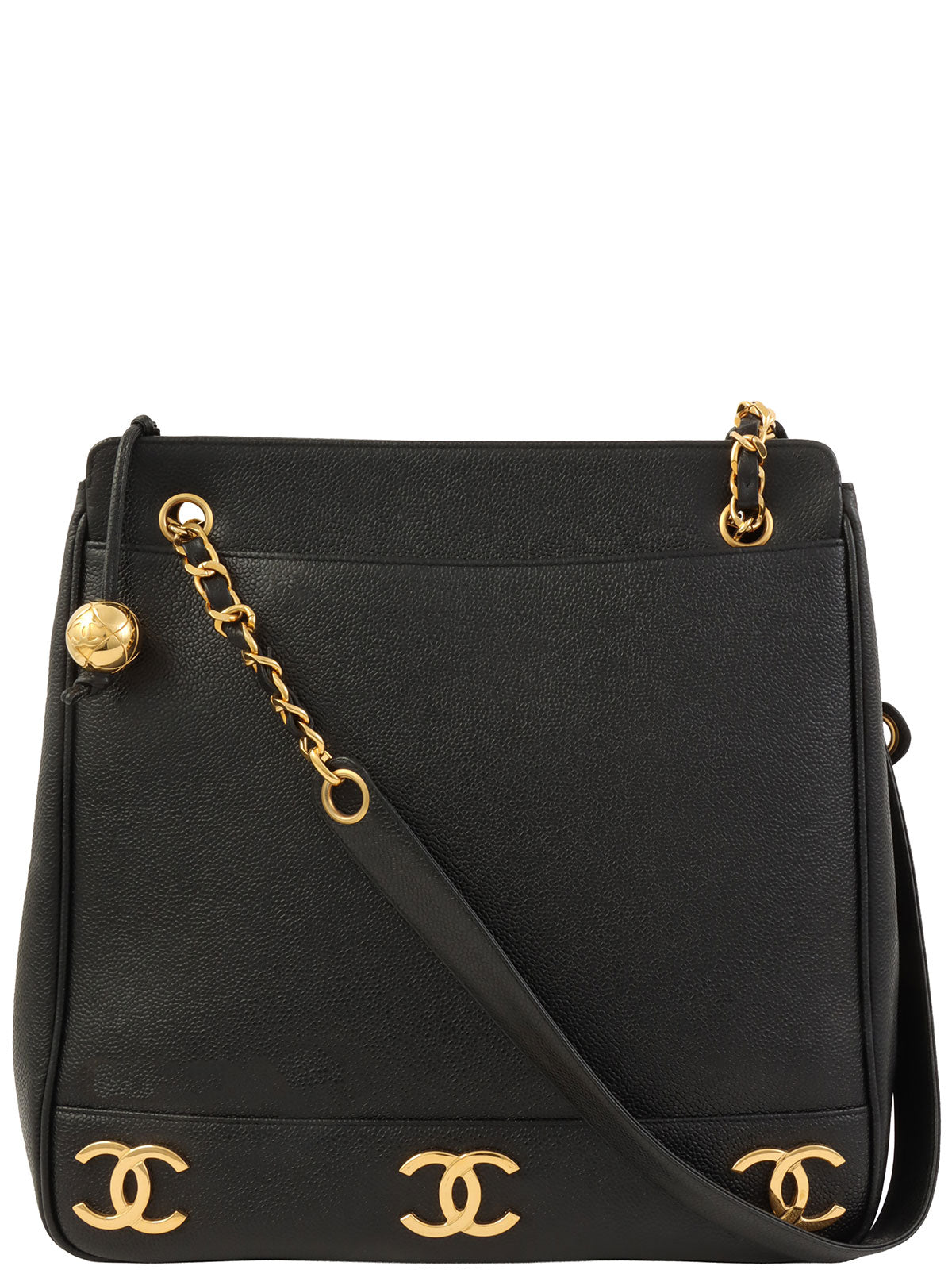 1995 Caviar Skin 6CC Mark Plate Tote Bag Black