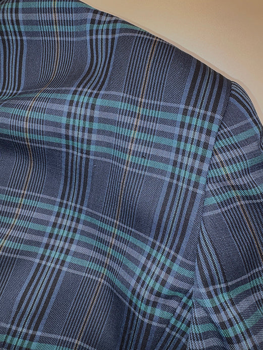 Logo Button Wool Check Pattern Set Up in Navy/Green