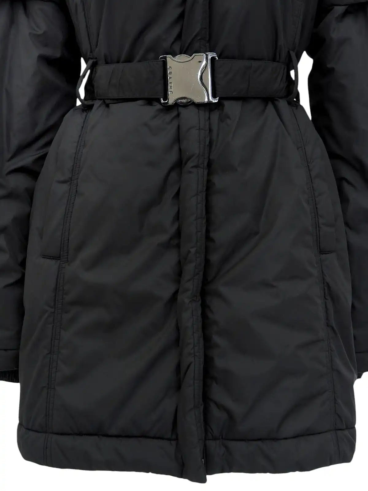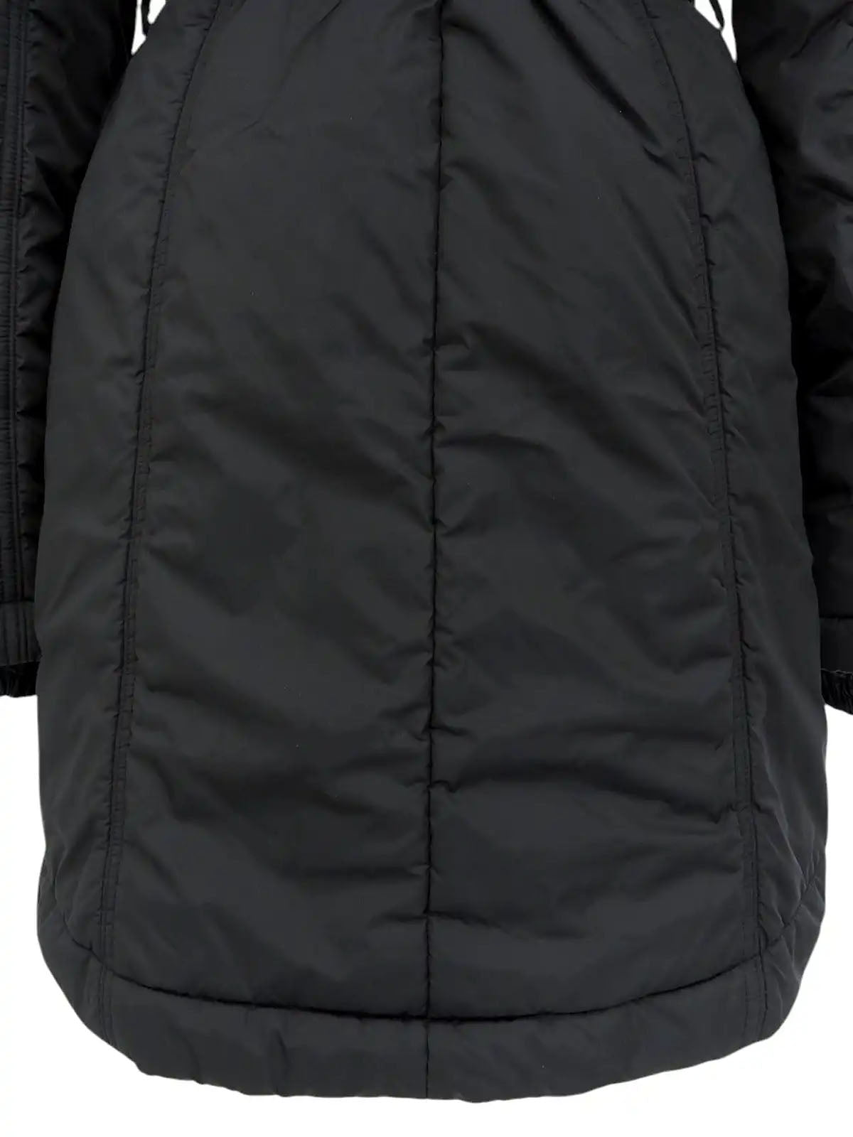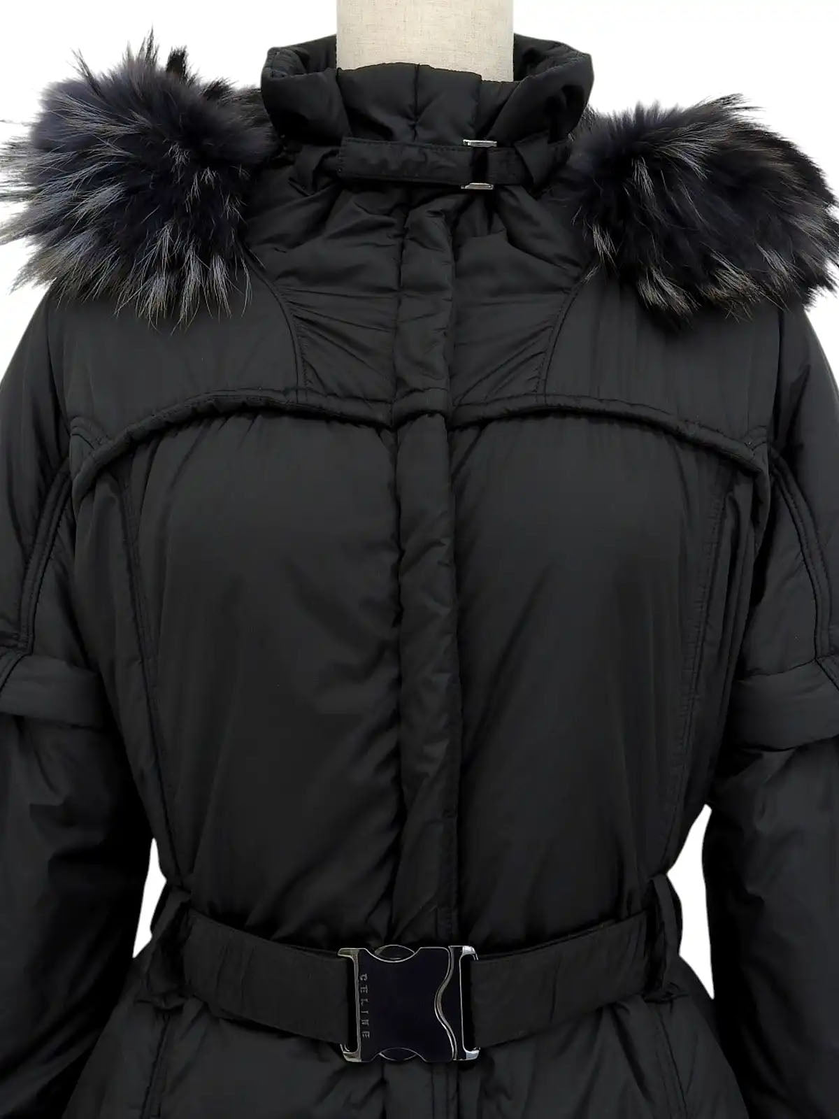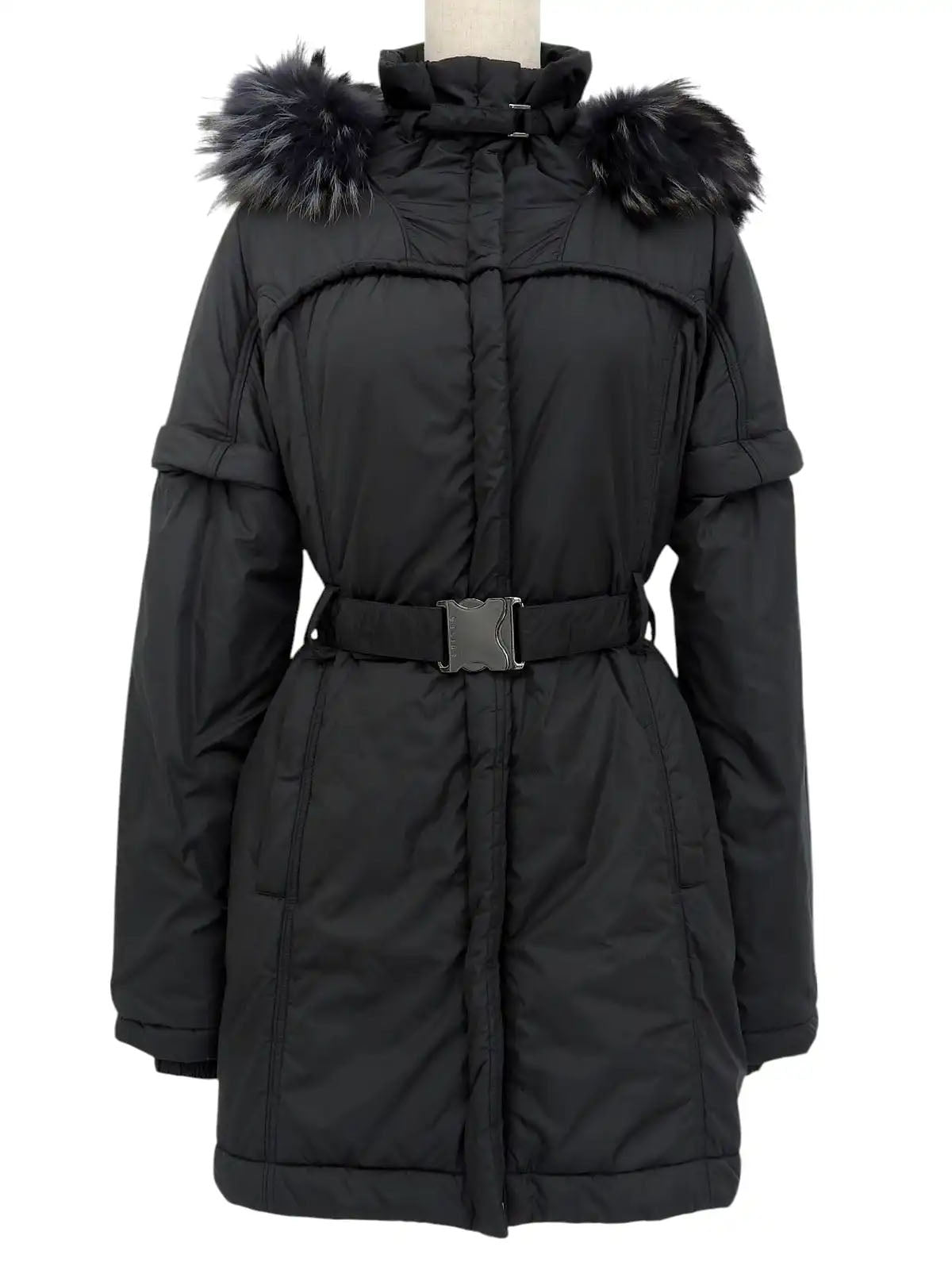 Nylon fur hooded 2-way coat in black