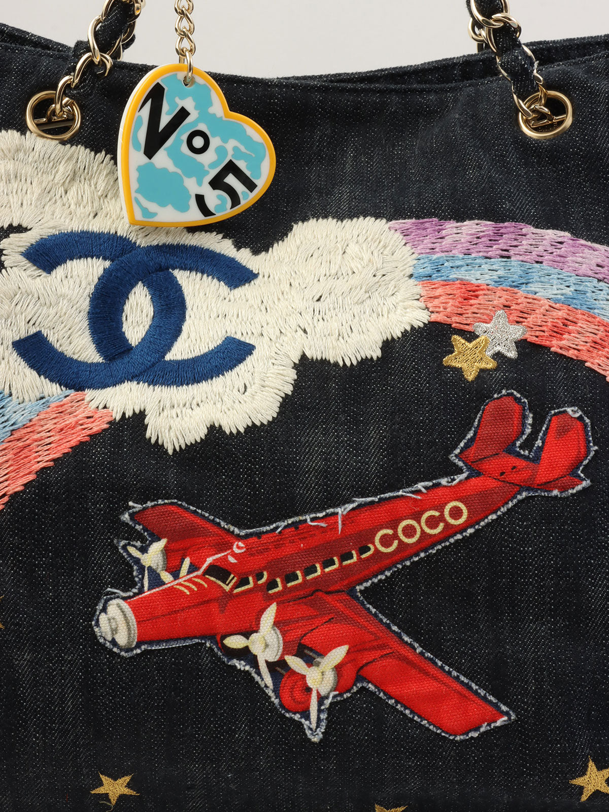 2005 Denim Night Flight Chain Tote Bag, Indigo