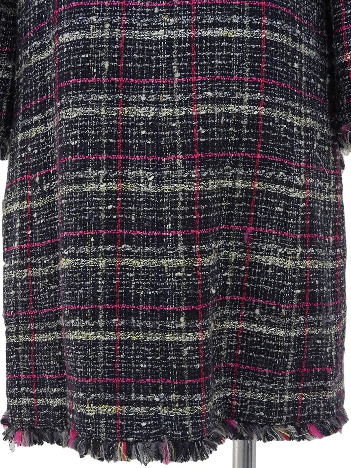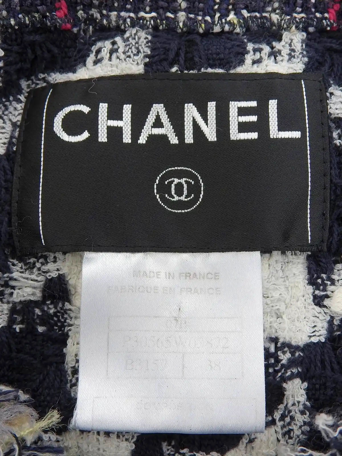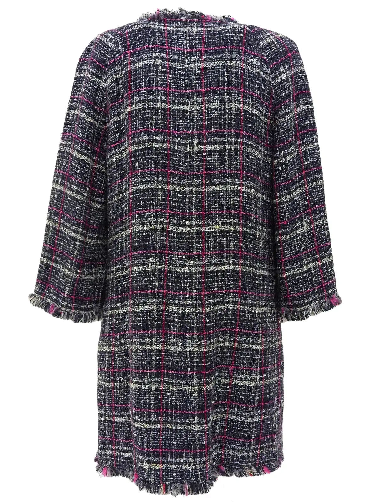 2007 Tweed CC Mark Collarless Long Jacket in Navy/Pink/Multi