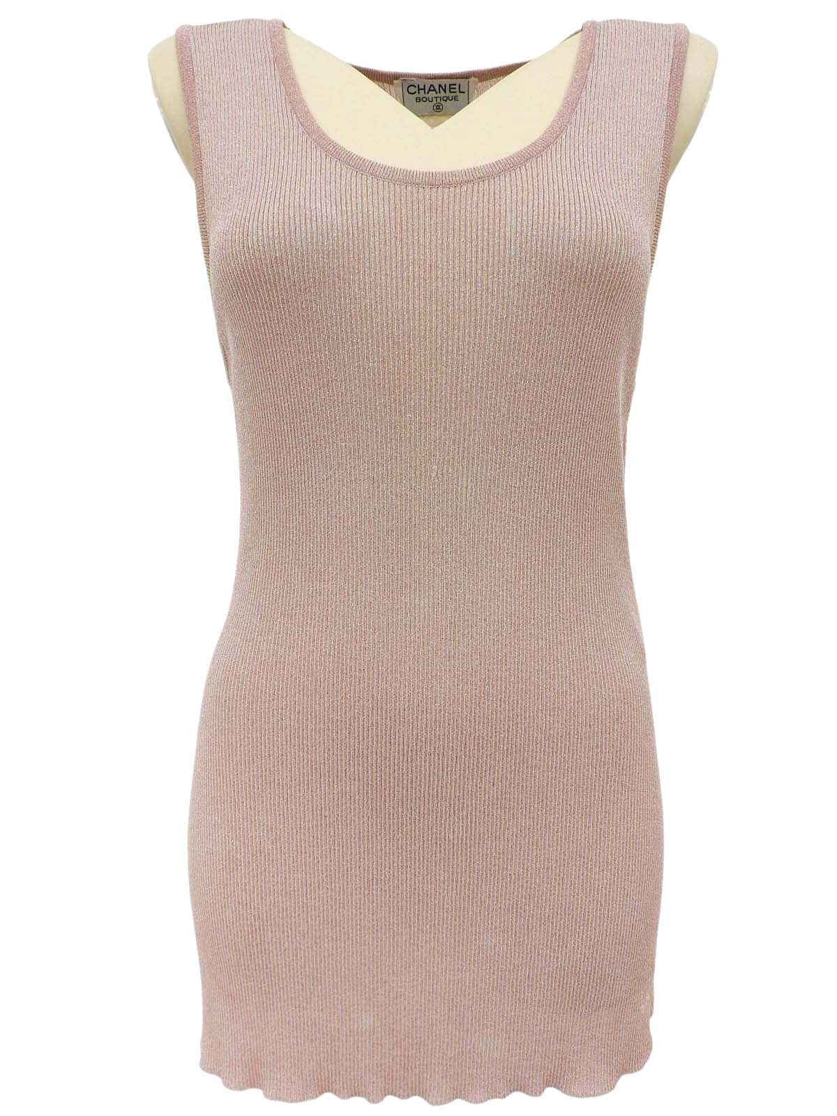 Pink sleeveless knit top with embroidered CC logo
