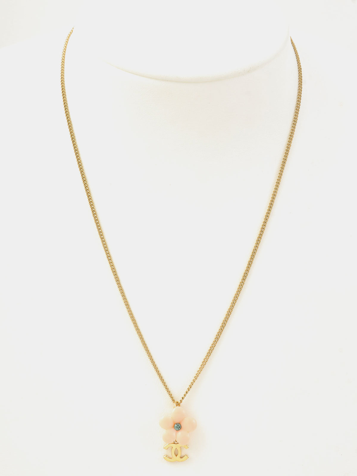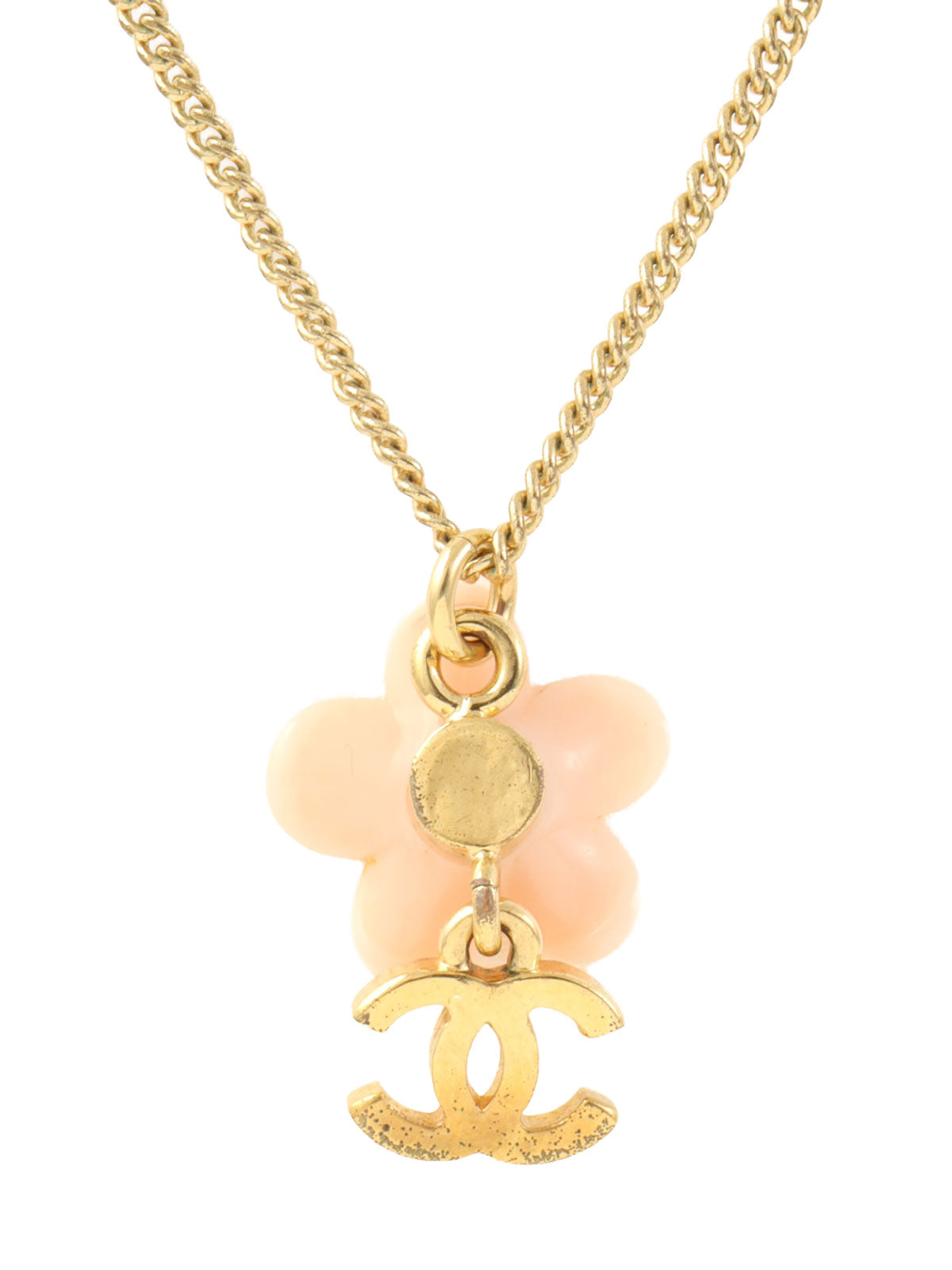 2003 Camellia Rhinestone Swing CC Mark Earrings in Gold/Baby Pink
