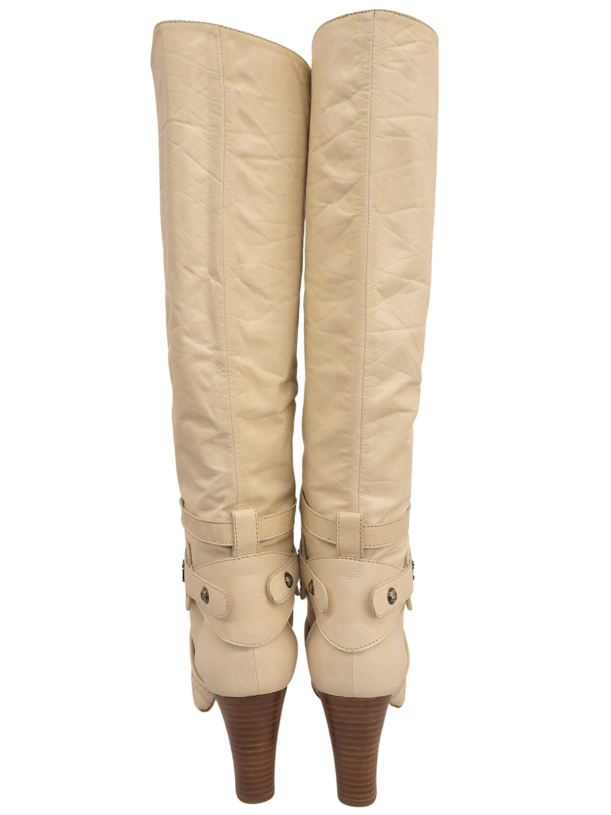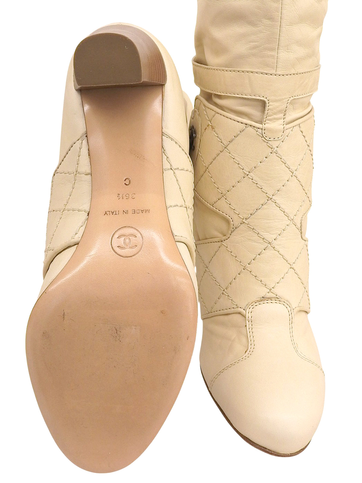 Matelasse Stitch CC Mark Plate Long Boots Ivory