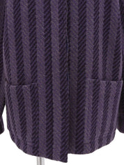 Stripe pattern logo button collarless coat in purple/black/gray