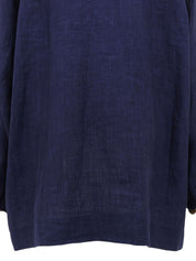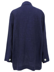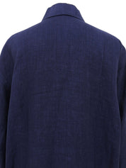 Navy Linen Logo Embroidered Shirt Jacket