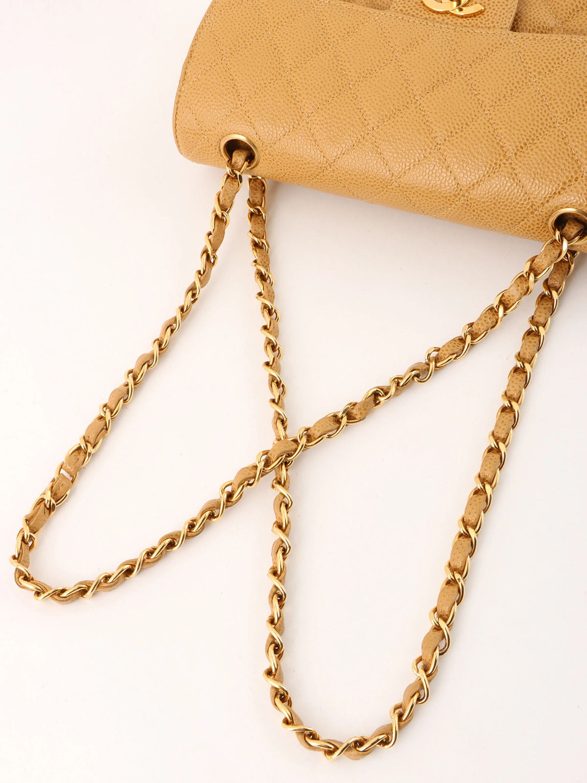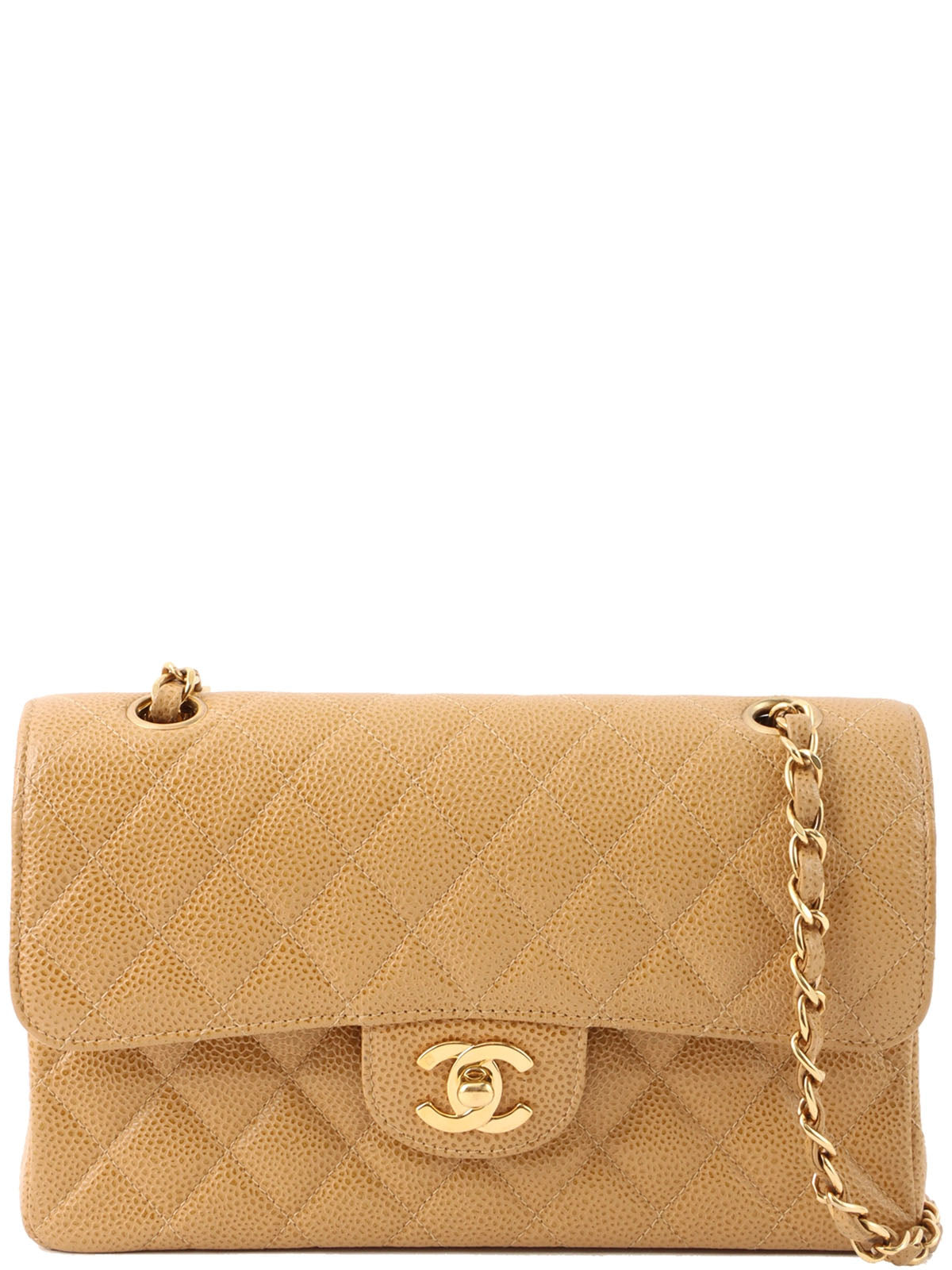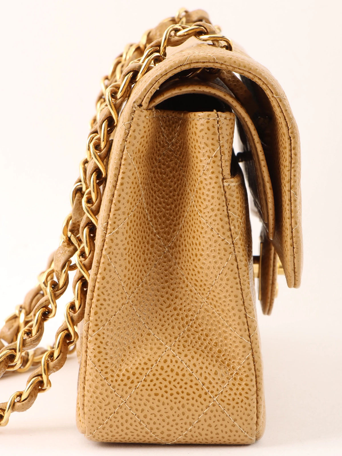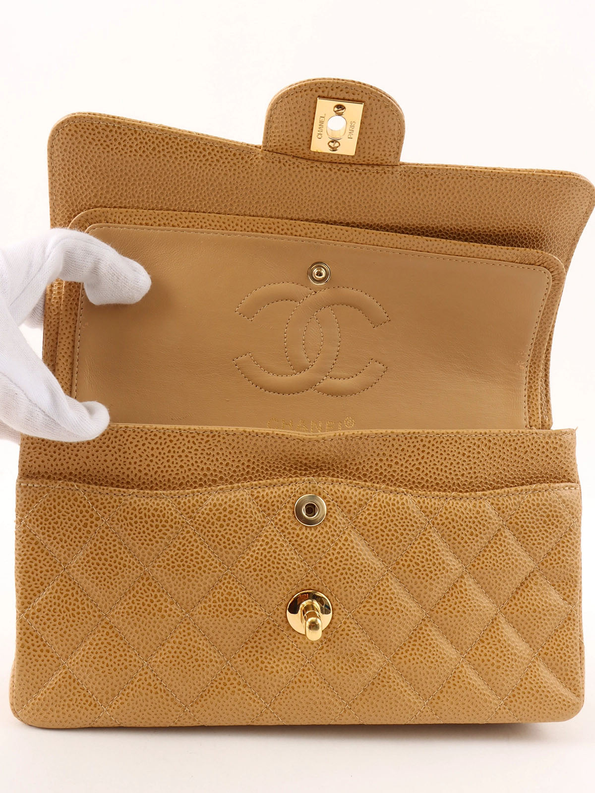 2000 Caviar Skin Classic Flap Chain Bag, 23cm, Beige