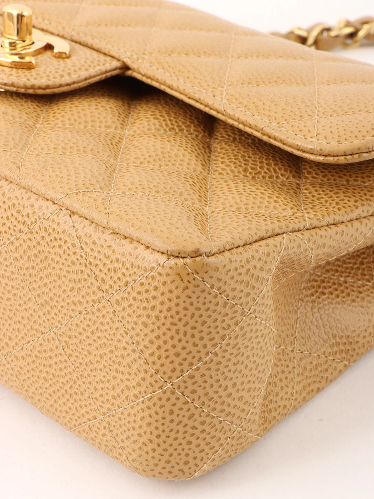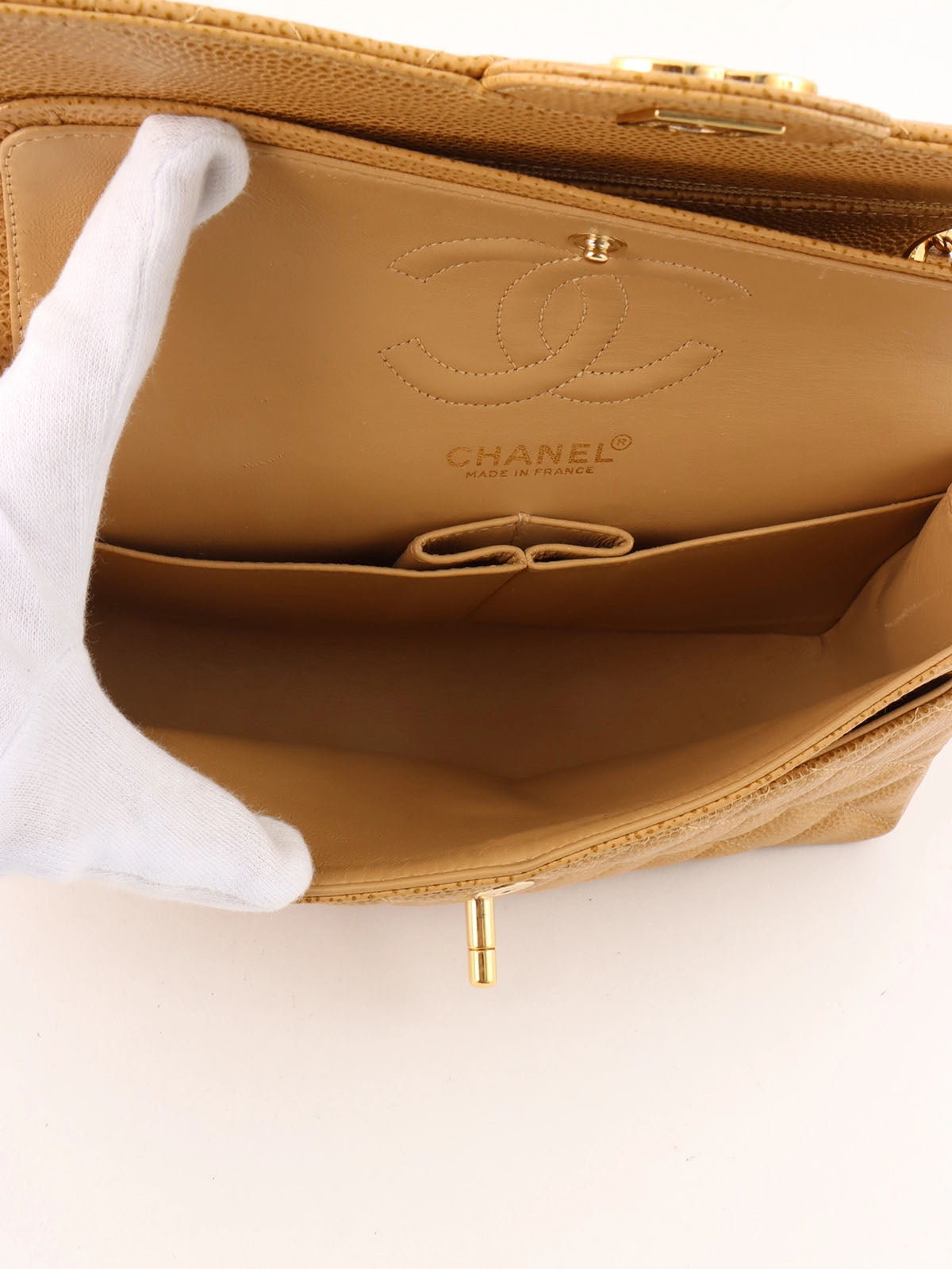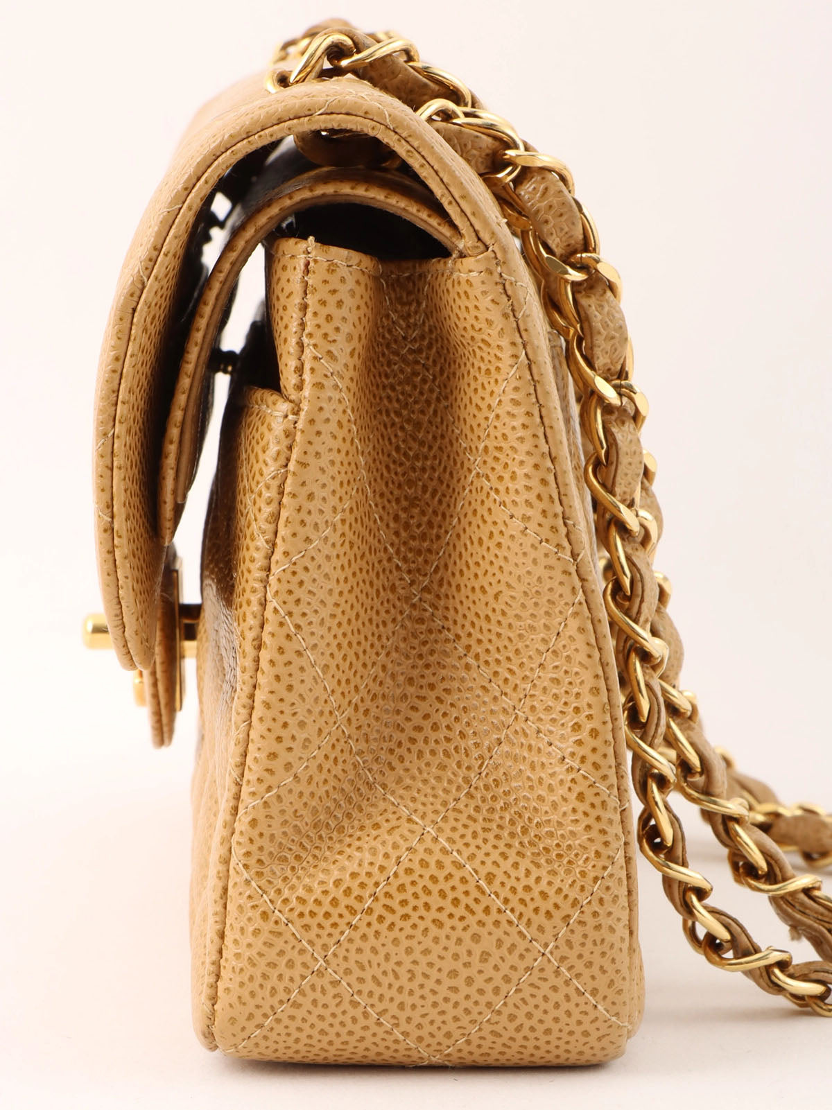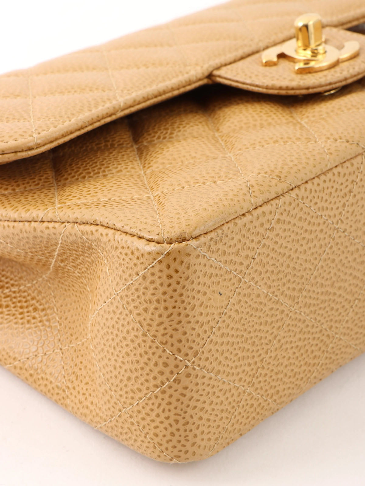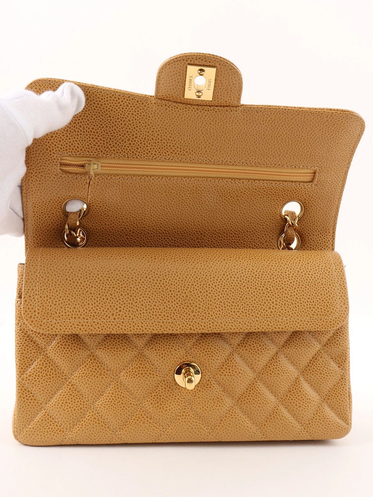 2000 Caviar Skin Classic Flap Chain Bag, 23cm, Beige