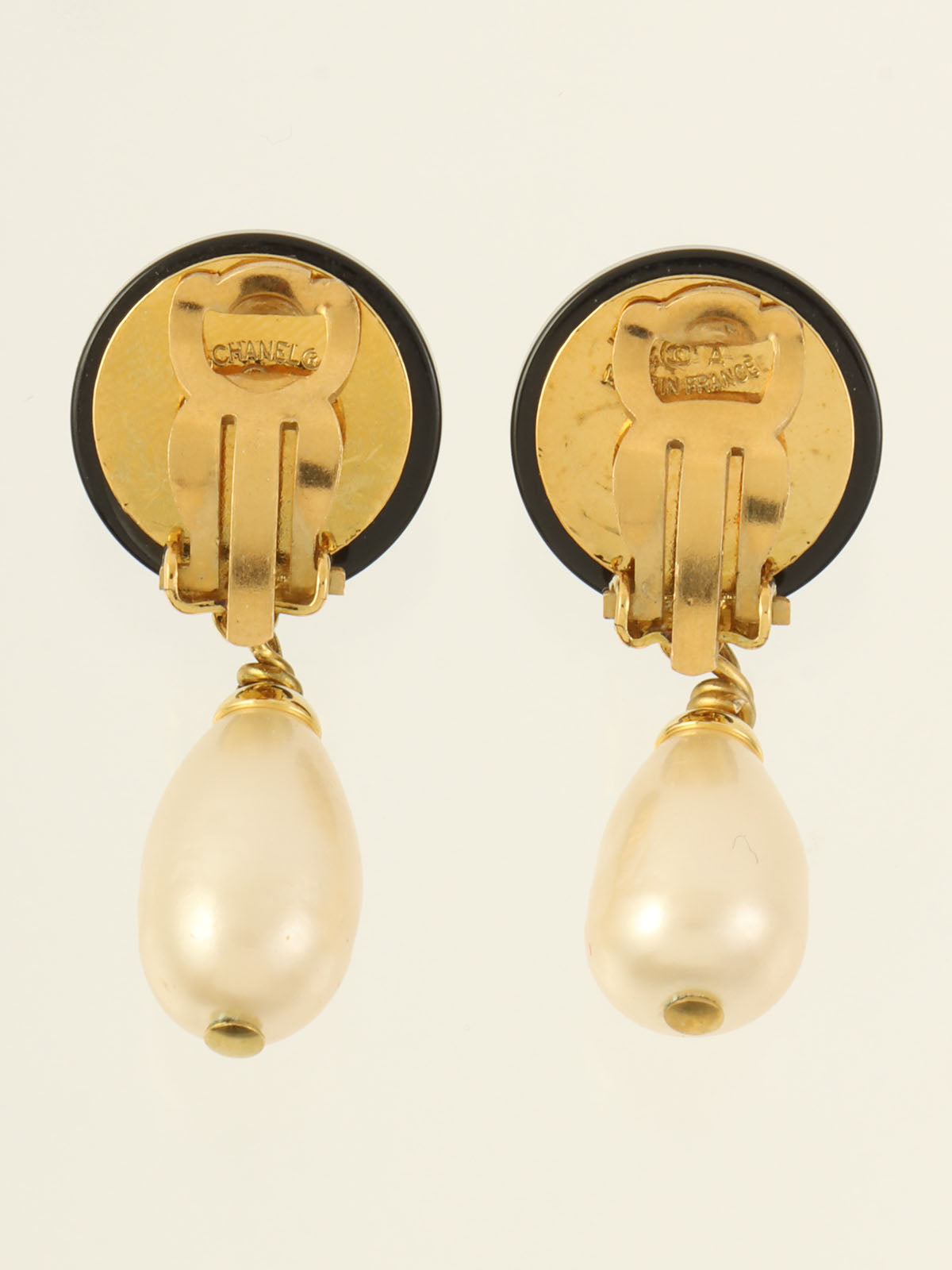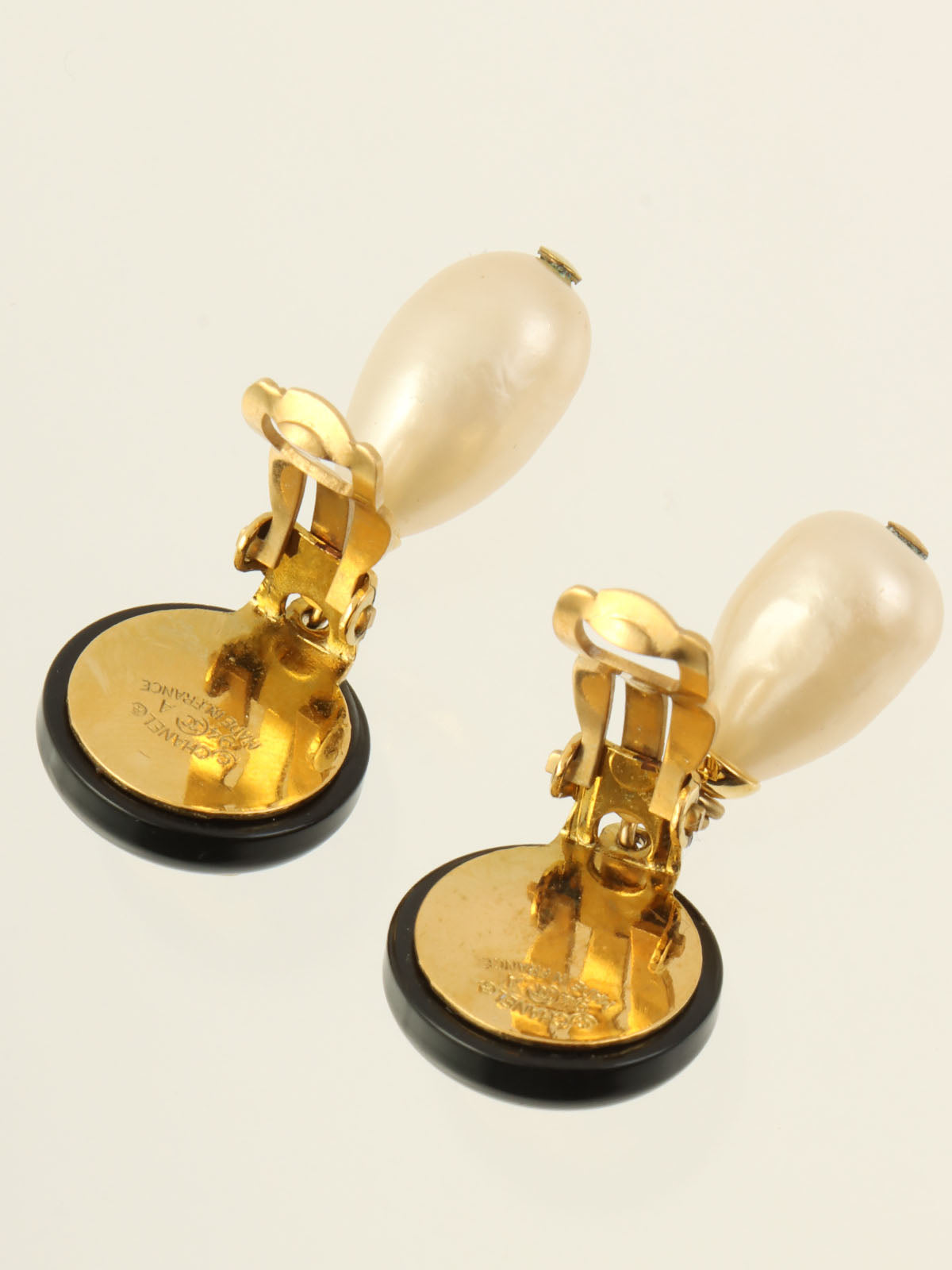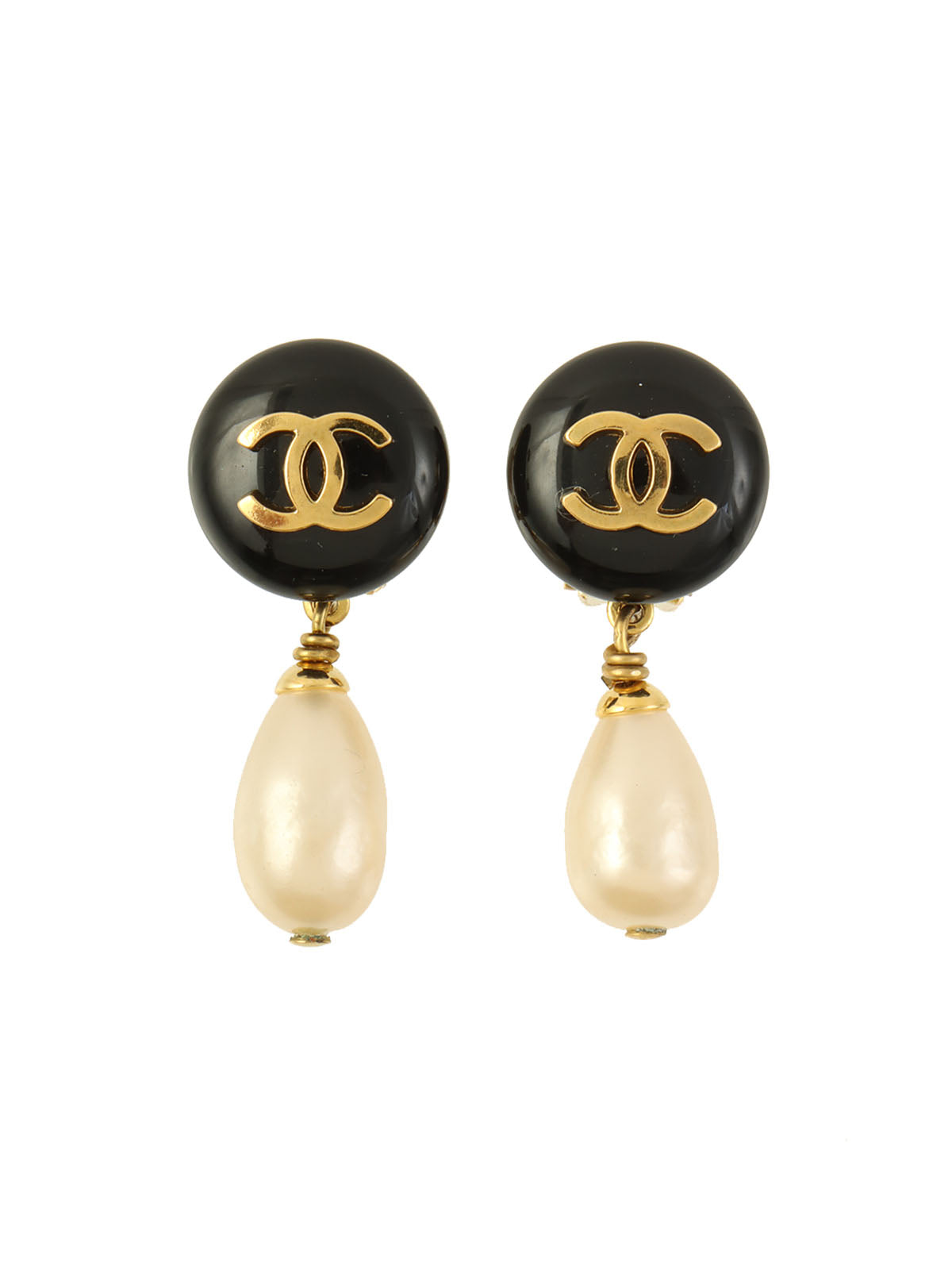 1994年製 ラウンドCCマークパールスウィングイヤリング ゴールド/ブラック
