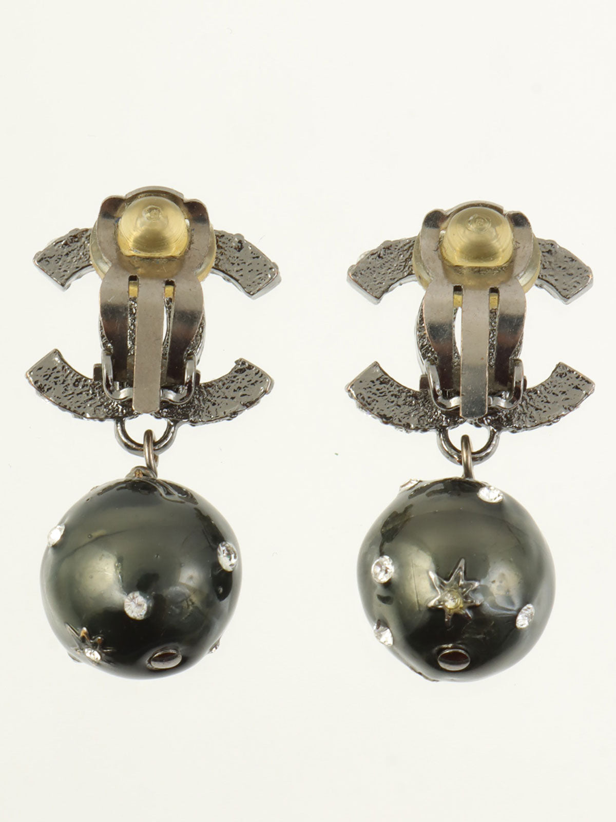 2003 Rhinestone CC Mark Ball Swing Earrings in Gunmetal