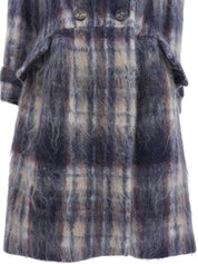 Check pattern mohair coat in navy and white
