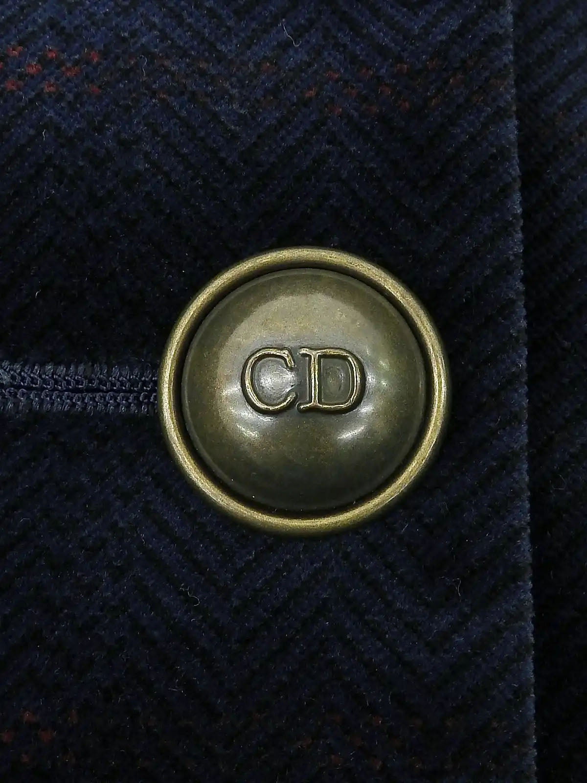 Navy Velour Check Pattern Logo Button Double-Breasted Jacket