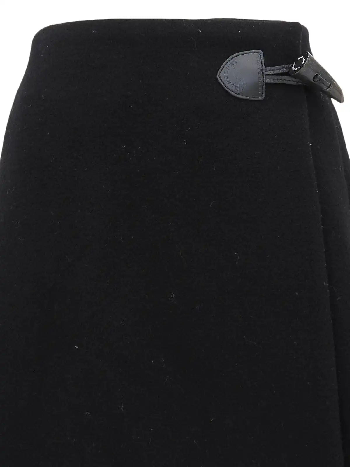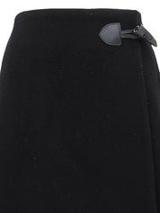 Wool Logo Embroidered Toggle Button Mini Skirt in Black