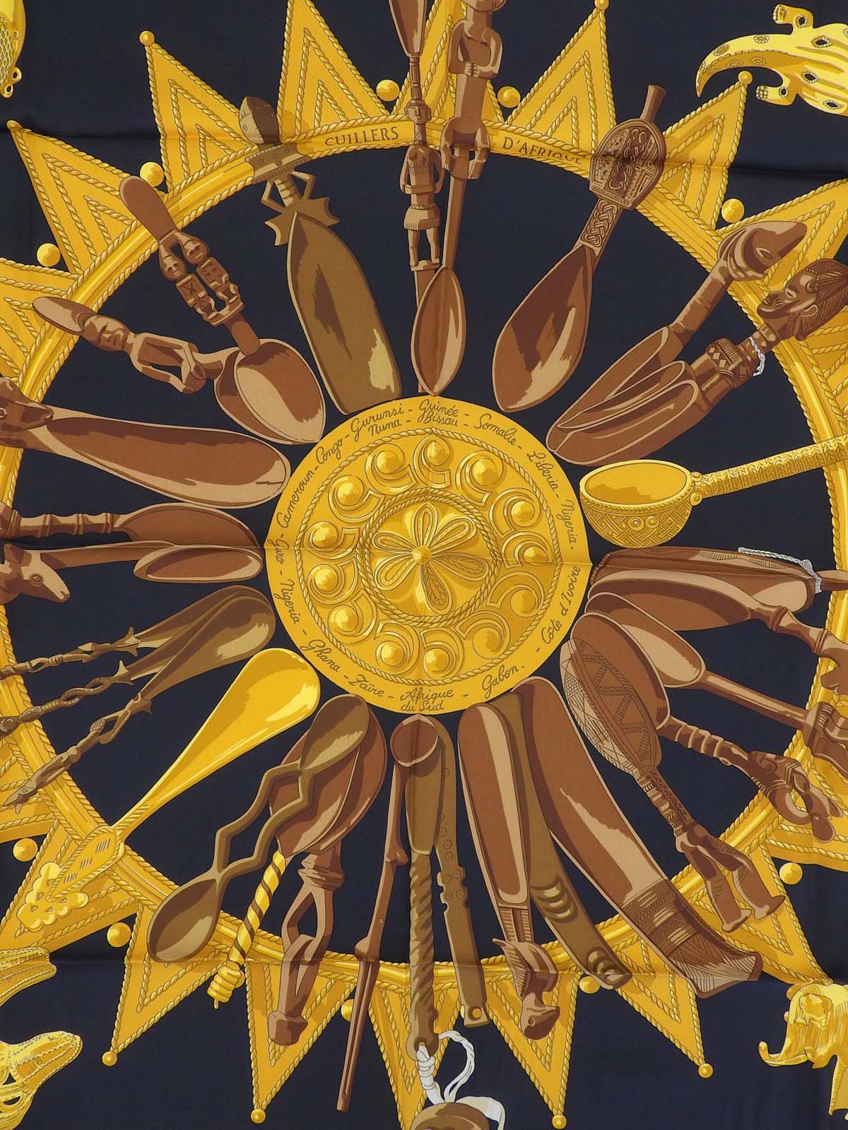 Carré 90 Cuillers Dafrique Pattern Scarf Black/Gold