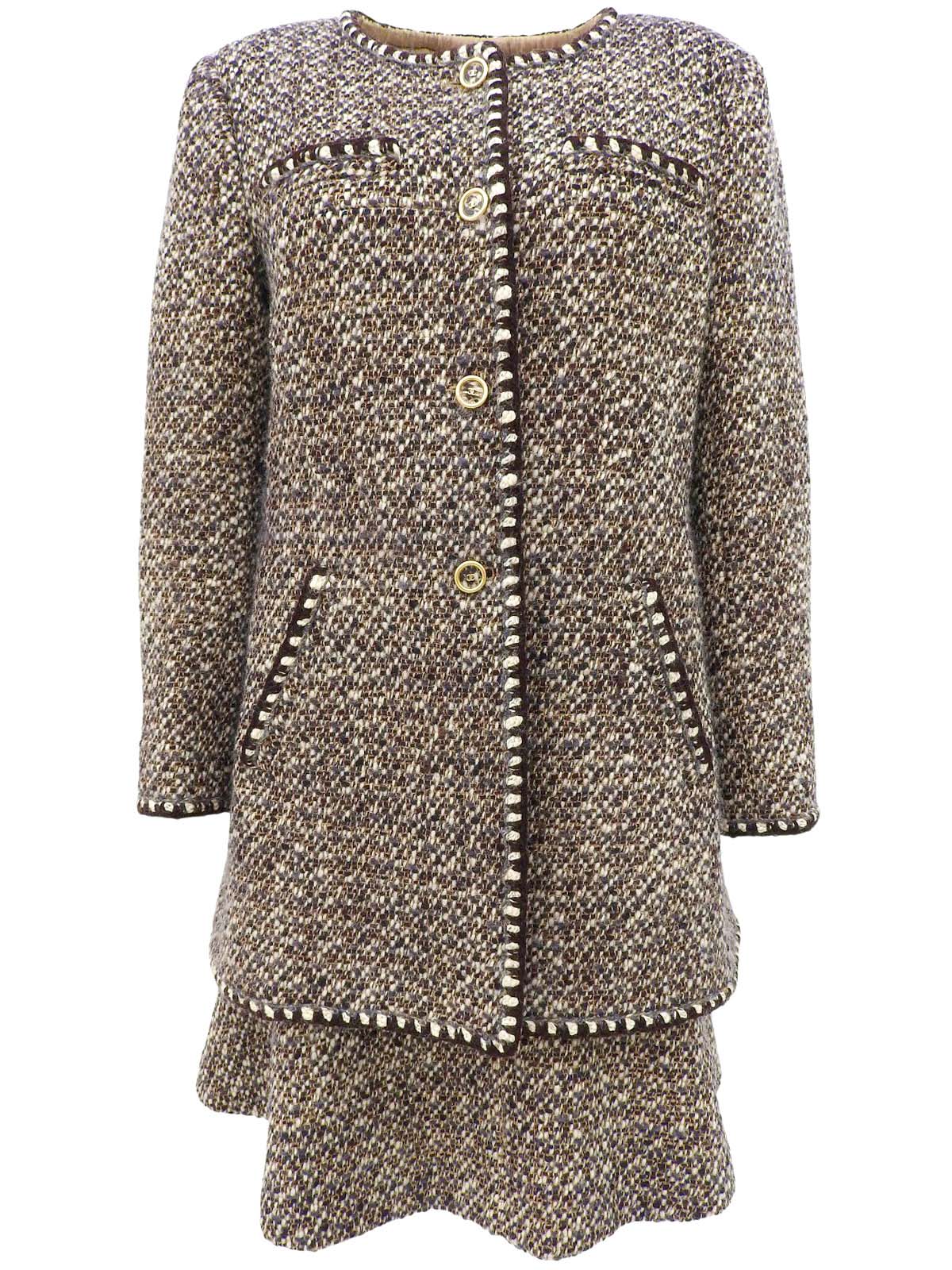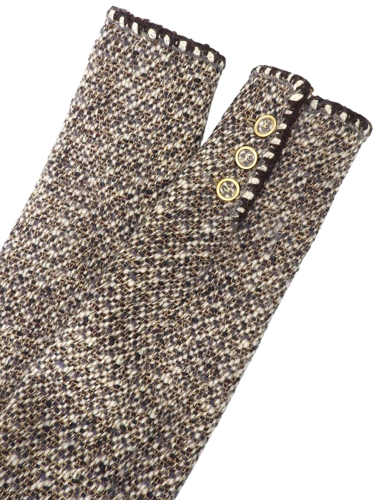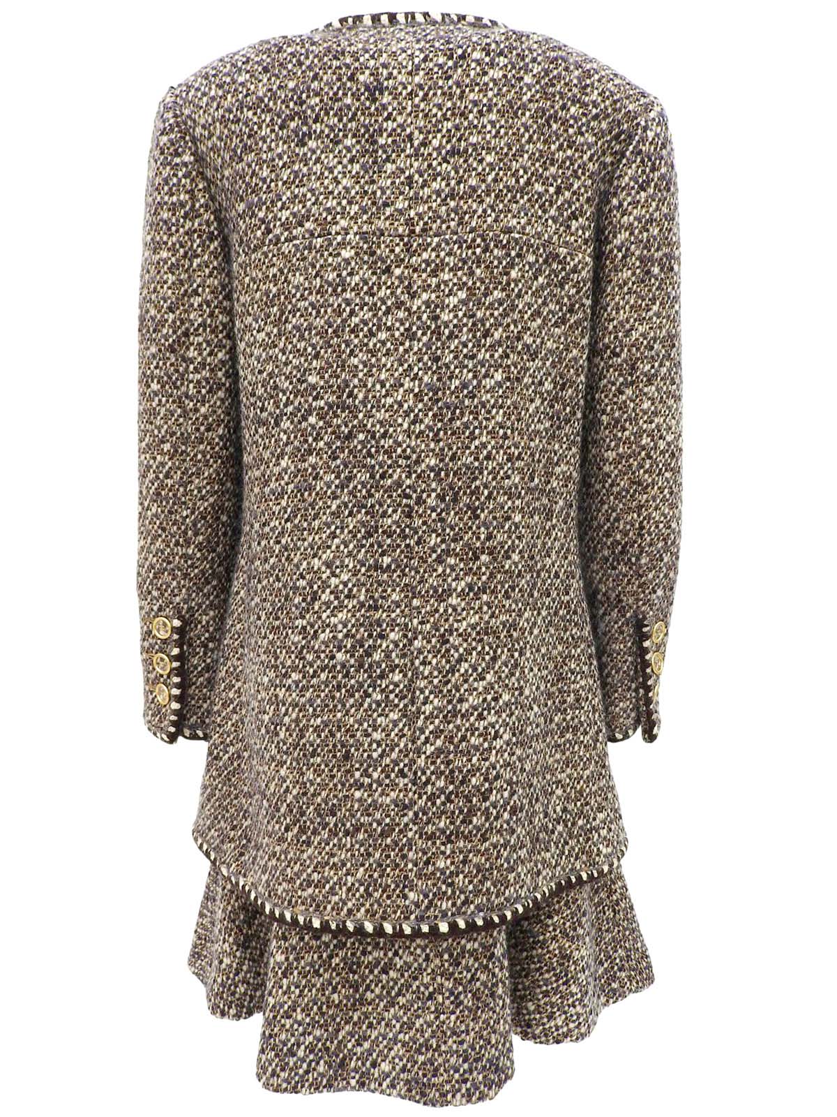 2001 Tweed CC Mark Button Collarless Set in Brown/Beige