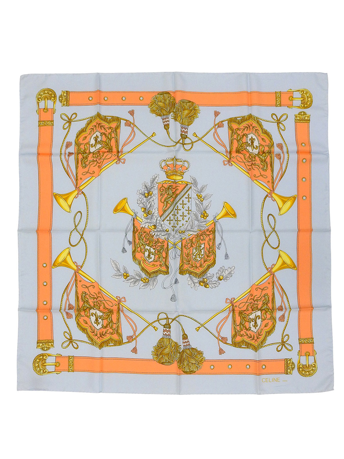 Silk Flag Design Pattern Scarf in Baby Blue/Orange/Multi