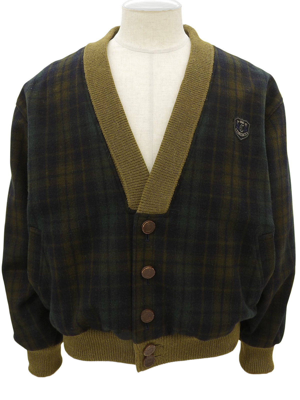 Check Pattern Horse Carriage Button Blouson in Khaki/Multi